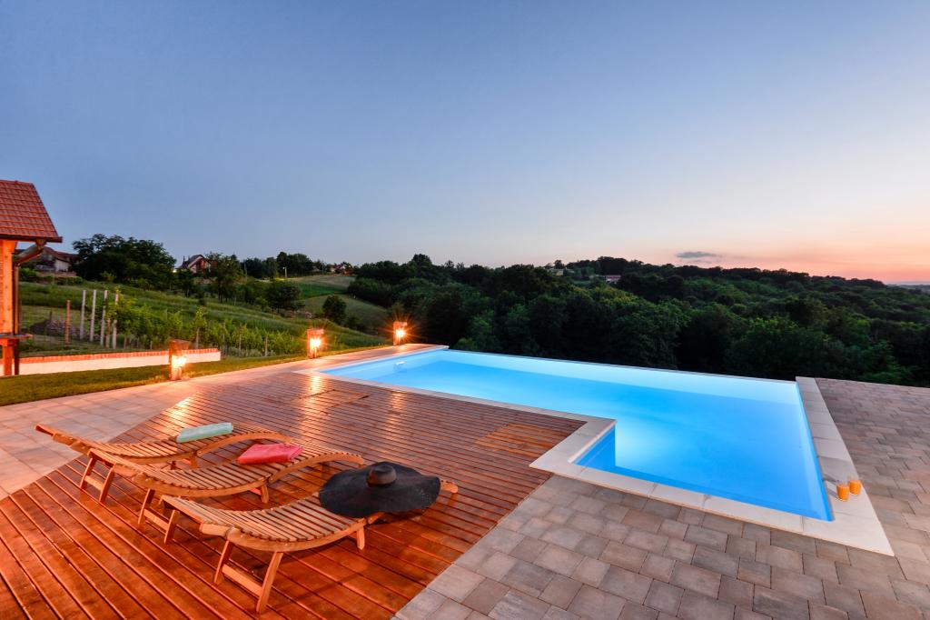 En ideel ferie fra en travl hverdag Sommerhuset Holiday Home Dika i Kapelščak består af to huse ved siden af hinanden. Vi kan rumme op til otte personer i fire soveværelser, med tre store dobbeltsenge og to separate senge. To køkkener inde og et udenfor gør det muligt at tilberede god mad. Vi tilbyder en stor udendørs grill på en rummelig terrasse klar til familiesammenkomster. Saunaen fuldender opholdet i huset, og i den charmerende indrettede gård findes en jacuzzi-pool med opvarmet vand. Der er også en infinity-pool med en vidunderlig udsigt over naturen. Om sommeren kan du hygge dig ved den udendørs pejs, og om vinteren kan du varme dig ved at brænde i potaskeovnen eller bare dreje termostaten og tænde for varmen. I husets kælder finder du flasker med nøje udvalgte vine fra Međimurje vinproducenter, med mulighed for at smage en guddommelig dråbe af vores klima. Ved siden af huset er der en gårdhave, en frugthave og en skov. En behagelig gåtur gennem den smukke natur i øvre Međimurje vil tage dig til LifeClass Terme Sveti Martin på 25 minutter.