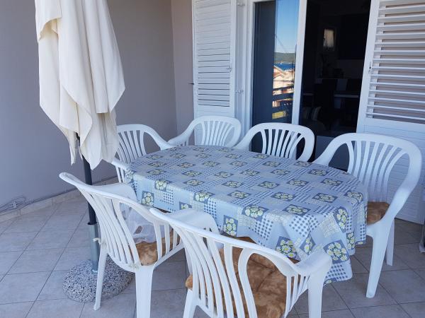 Lejligheden er enkelt møbleret. Men det har en masse af lagerplads (2 soveværelser med stor glidende boks). Apartment var rengøres meget godt. De husejere er meget rart og imødekommende. Strand: bare fantastisk, ideel for børn at gå indenfor. Shopping: omkring 10 minutter i bil til Biograd. Der er en Lidl, Spar, .... Hvis du vil have det simpelt, lejligheden er kun anbefales.