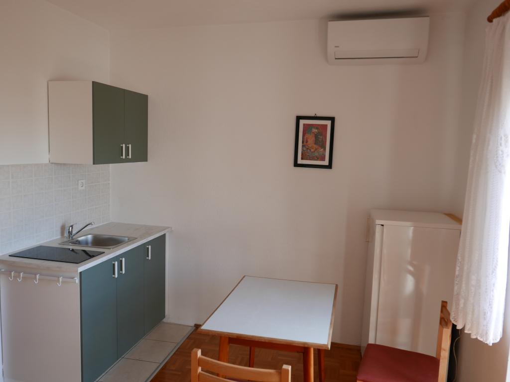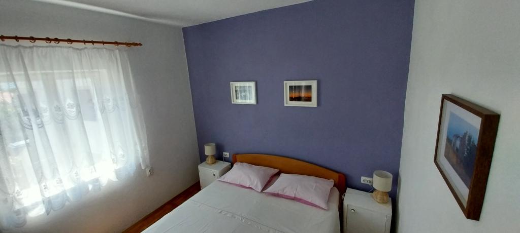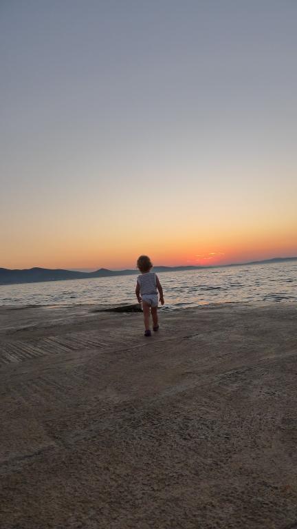 Familiehus, to minutters gang til havet. Et meget smukt og fredeligt turistmål. Loftslejligheden (S2+1) består af et stort værelse med dobbeltseng, sovesofa og tv. Der er køkken med spiseplads. Det har et stort badeværelse med bruser og bidet. Arealet er 26m2. Den store terrasse (25m2) byder på udsigt over øen Pašman og Ugljan. Studielejligheden (S2) består af et stort værelse med et lille køkken og et badeværelse. Det har en dobbeltseng og et tv. Det har en stor terrasse med udsigt over havet og øen Pašman. Studiet er 20m2 og terrassen er 14m2. 1-værelses lejligheden (A2) består af et soveværelse med en dobbeltseng og et tv, et køkken med spiseplads og et stort badeværelse. Lejligheden har en mindre terrasse og er placeret på siden af huset. Lejligheden er 25m2, og terrassen er 3m2. Madlavningen foregår på el. Sengelinned er til rådighed. Der er en parkeringsplads til hver gæst. Grillen er fælles. Adskillige nationalparker og naturparker er i nærheden, ideelle til en dagstur.