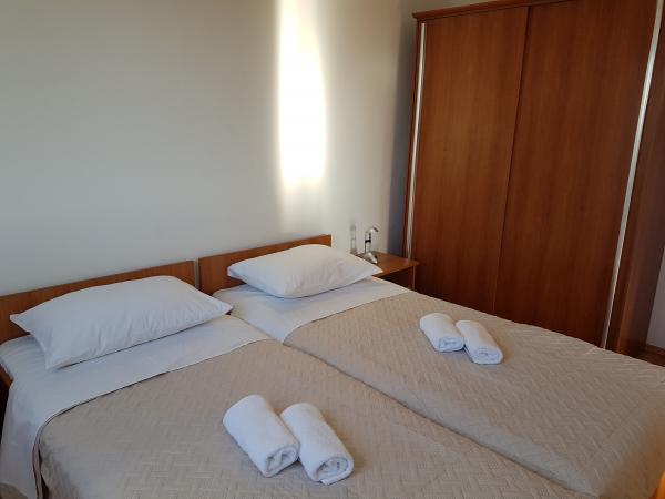 Vi holdt her i slutningen af den sjette måned! Vi blev mødt af en meget ren og ryddig lejlighed, indkvarteringen matcher billederne! I betragtning af at den første række mod havet er prisen meget rimelig! Stranden ligger kun få meter fra lejligheden, hvilket er fantastisk, hvis du er med børn! Stedet er meget stille, og det er netop derfor, vi kunne lide det! Værterne er venlige og imødekommende, og vi håber at kunne komme et par gange til! Vi har en god hukommelse!