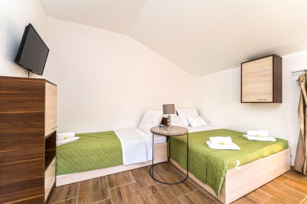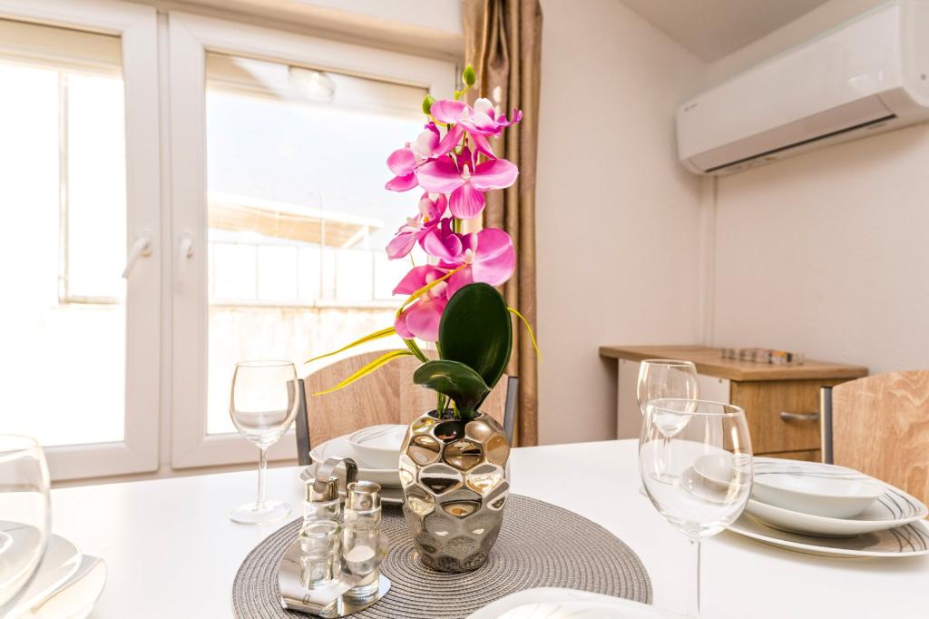 Min kæreste og jeg var her i juni 2023, og det var fantastisk. Rolig beliggenhed, smuk lejlighed, pæne omgivelser, strand meget tæt på, for det var før sæsonen vi var alene på stranden, vi var også de eneste gæster i huset. Fru Jelena, som bød os velkommen, er en fantastisk kvinde, meget venlig. jeg anbefaler