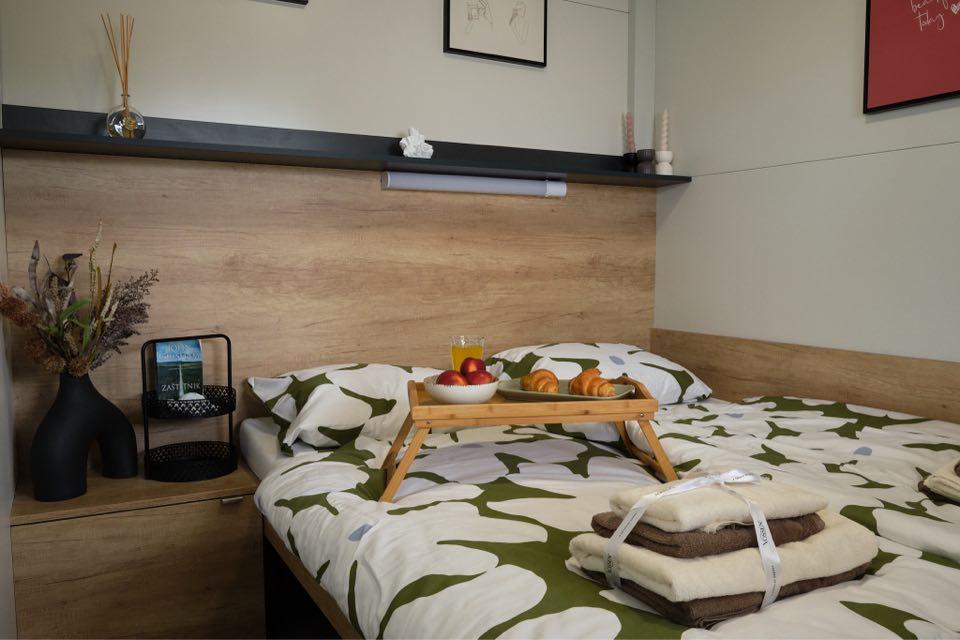 Ella er et smukt mobilhome beliggende i Sveti Petar na Moru, lige ved stranden, kun 10 meter fra havet. Denne unikke beliggenhed tilbyder en utrolig udsigt over det blå Adriaterhav, hvilket giver dig en følelse af fuldstændig afslapning og fred. Det, der gør Ella speciel, er dens gratis cocktailbar, som er tilgængelig for alle gæster. Du kan nyde forfriskende cocktails, mens du slapper af på terrassen, eller nyde en smuk solnedgang med udsigt over havet. Derudover tilbyder Ella dig en Nespresso-kaffemaskine med kapsler inkluderet. Du kan vågne op til duften af frisk kaffe og starte dagen på den bedst mulige måde. Ella byder også kæledyr varmt velkommen. Vi har sørget for en seng, som dit kæledyr kan sove i, samt vand- og madskåle. På denne måde kan dine firbenede venner føle sig hjemme. I Ella-mobilhomet kan du slappe af, nyde havudsigten og føle fred og komfort.