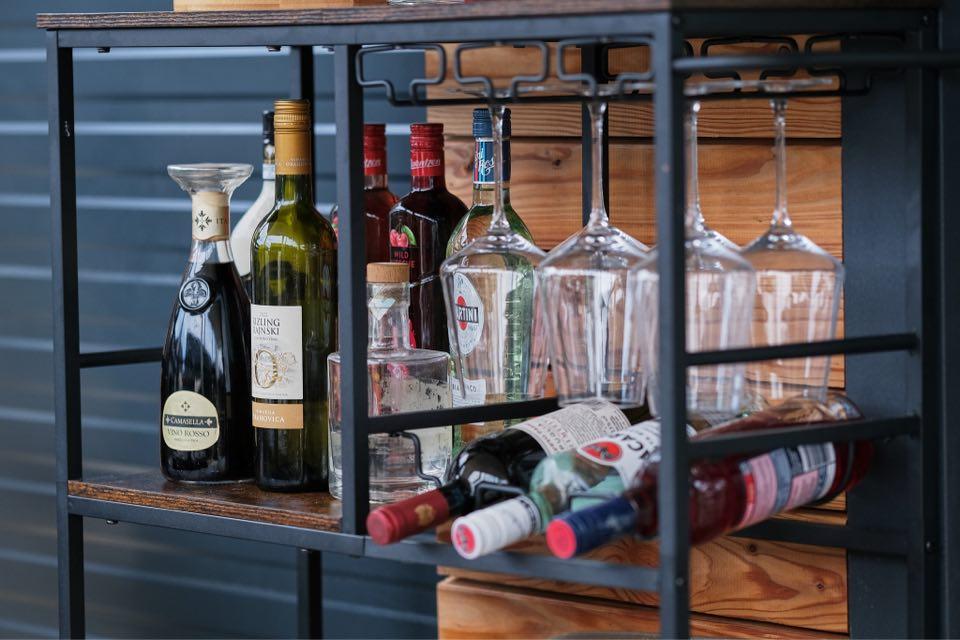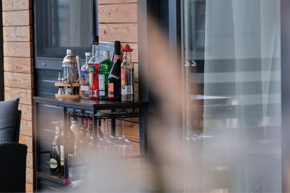 Udendørs bruser, 2 liggestole med et lille bord, parasol og stativ. Mini cocktailbar. SUP, IPTV/Netflix. 1 x Parkeringsplads gratis.