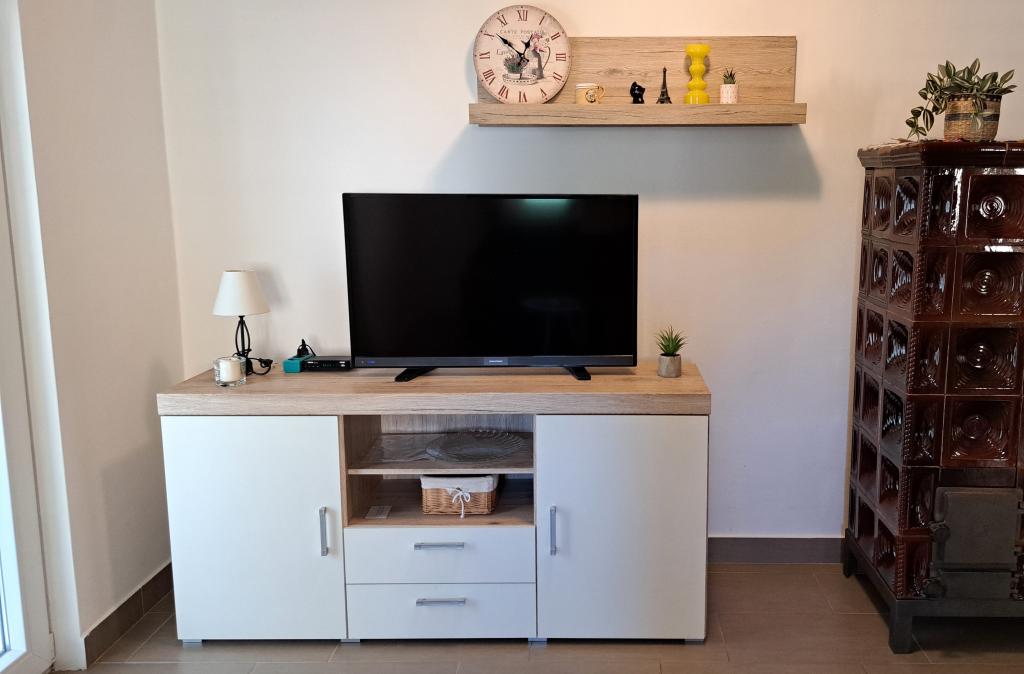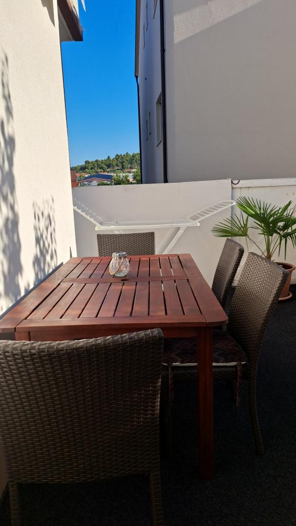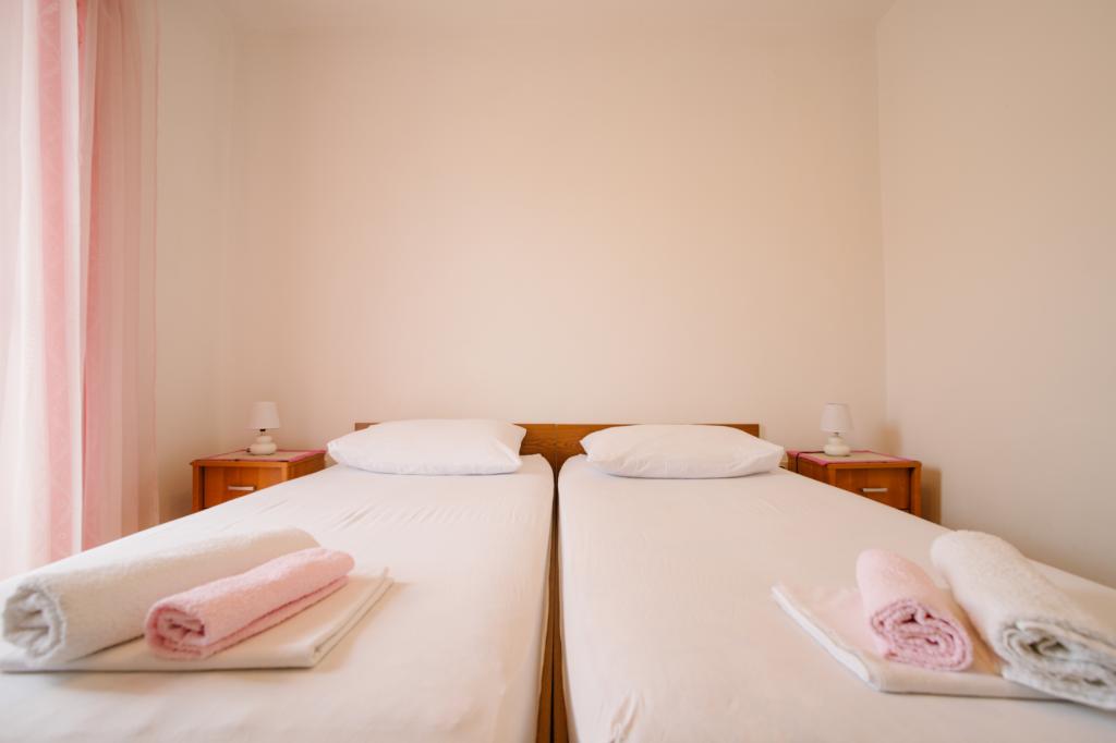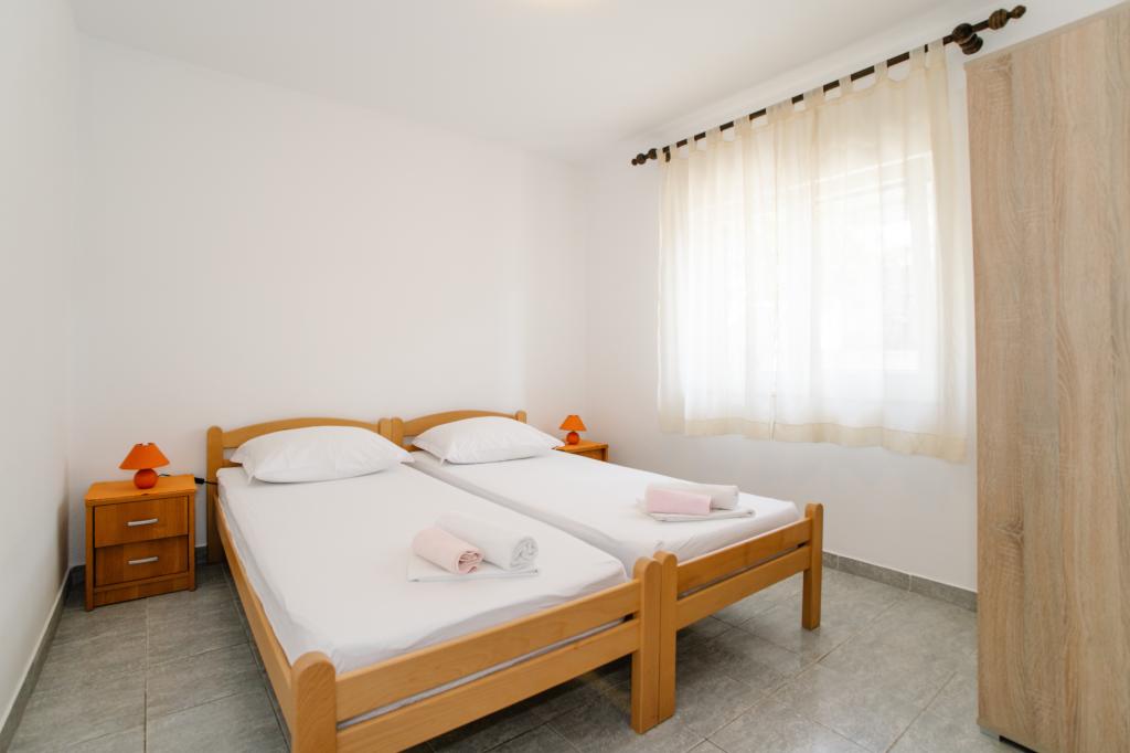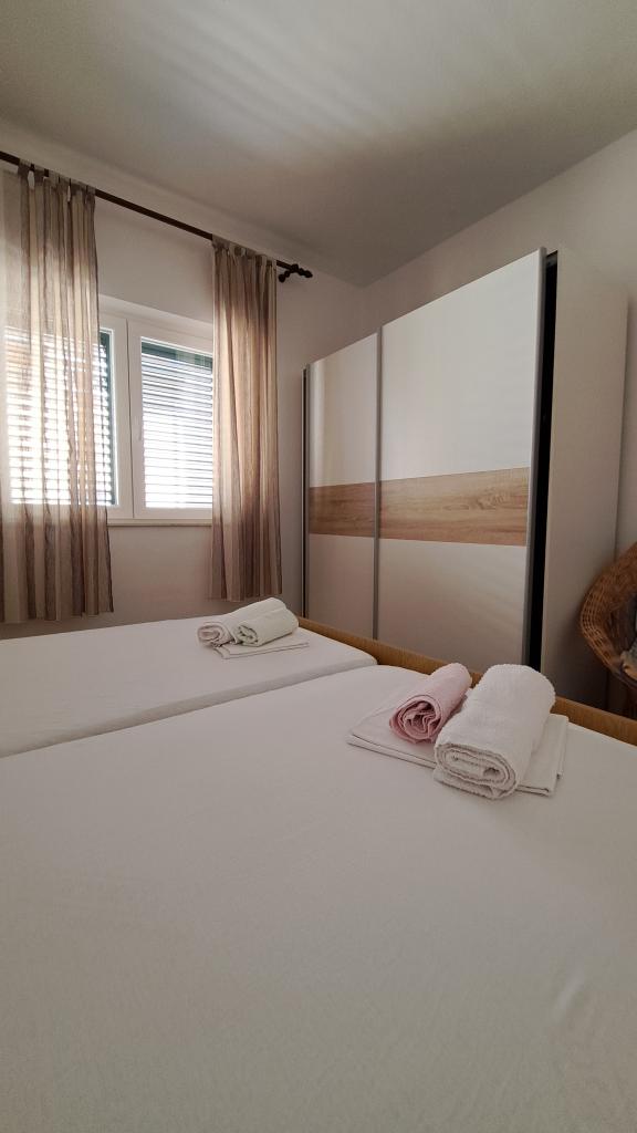 Lejlighederne \Aneta\ ligger lige ved indkørslen til Tisno. To lejligheder ligger på 1. sal, mens den tredje lejlighed ligger i stueetagen. Lejlighederne har balkoner, og lejligheden i stueetagen har en rummelig terrasse. Lejlighederne er udstyret med et køkken med ovn, komfur, køleskab og elkedel. Lejlighederne har satellit-tv, WIFI, og hver lejlighed har separat aircondition. Der er parkeringspladser foran huset, og der er mulighed for bådeplads efter anmodning.