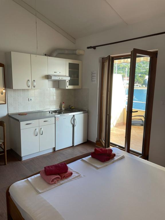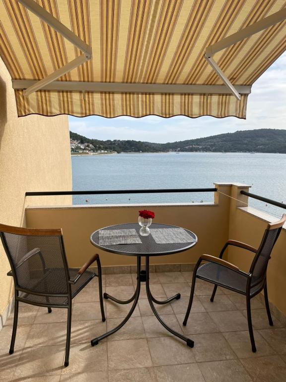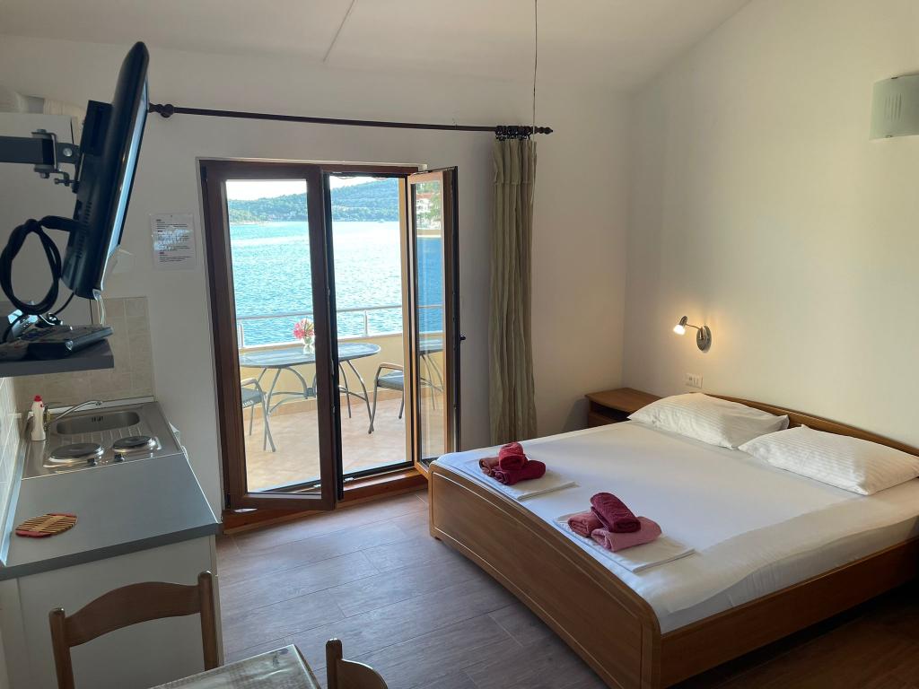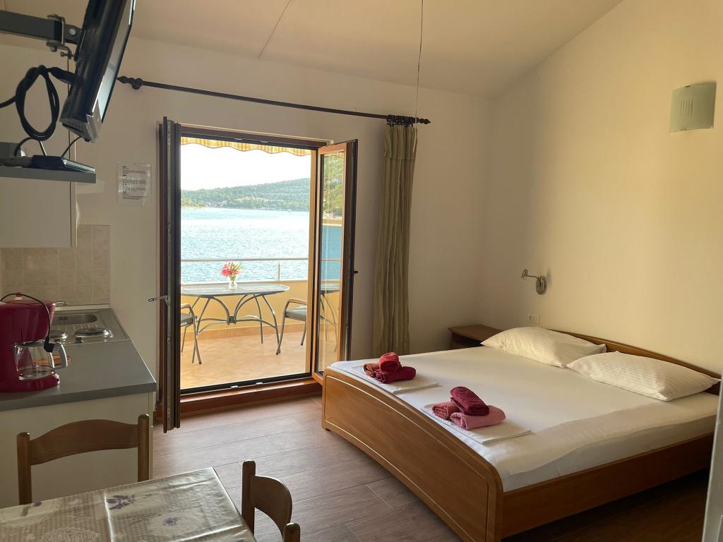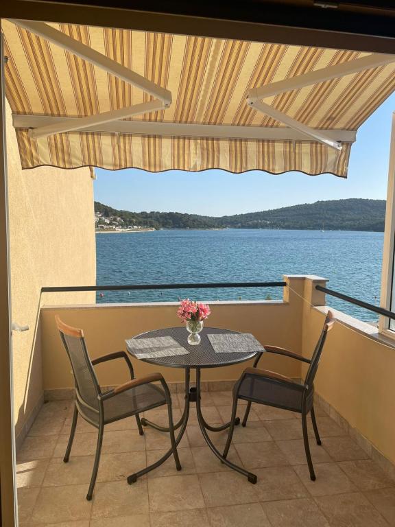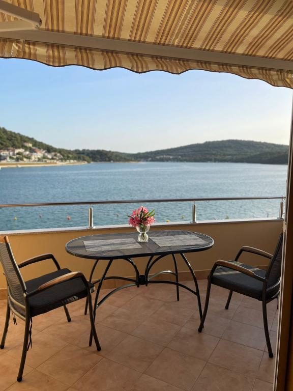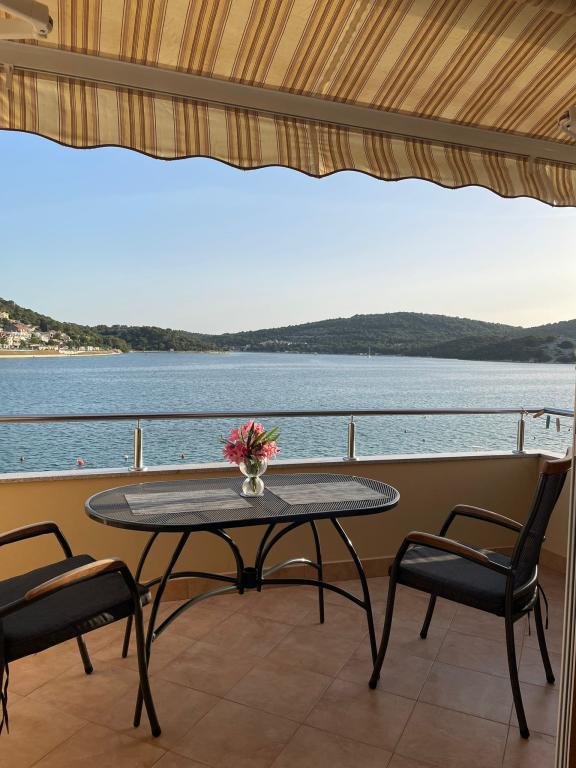 Huset er tæt på vandet, flot udsigt over landsbyen Tisno og øen Murter. Lejligheden er pæn og ren. Med 2x rummelig balkon, gode vindueskodder og aircondition. Fra balkon flot udsigt, især solnedgangen om aftenen. Vi havde en kaj til vores båd lige foran lejligheden, det var fantastisk! Jere er meget flot og hjælpsom, og bor også i bygningen. Imellem modtog vi ekstra rent sengetøj og håndklæder. Bageri, supermarked, restauranter osv. Alle inden for gåafstand. Der er masser at se og opleve i området. Vi elskede det her, vil være tilbage igen i år, og derefter længere!