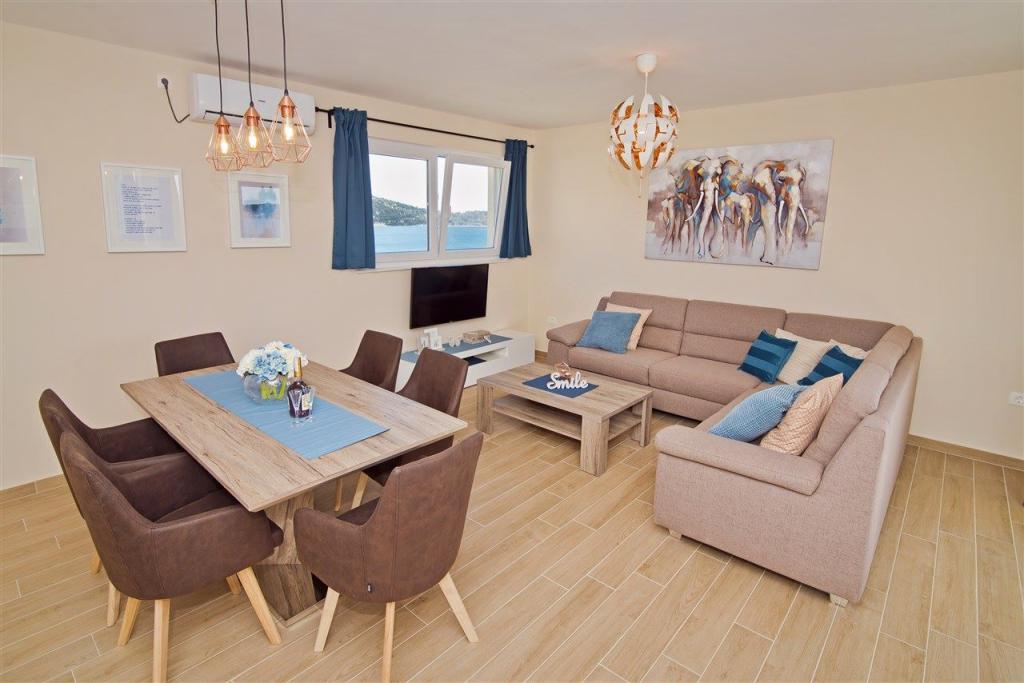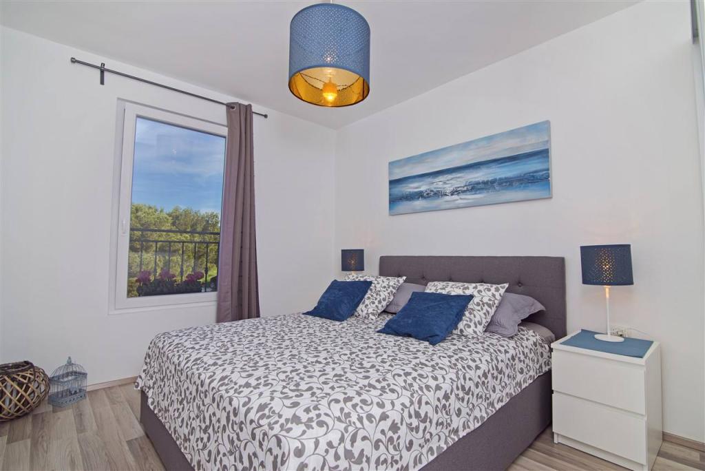 Vi er placeret på fastlandssiden af broen, lige ved siden af Jazine-stranden. Vores anlæg indeholder 2 lejligheder, hver med 3 soveværelser, fuldt udstyret med en vidunderlig udsigt over havet. De indeholder alt det nødvendige udstyr, samt sengelinned og håndklæder. Lejlighederne har aircondition, gratis parkering og trådløs internetadgang. Udover lejligheden er der mulighed for at sikre en fortøjning til en båd på en bøje, uden ekstra gebyr Foran lejligheden er der en lille havnefront til badning, velegnet til mindre børn, mens hovedstranden i Jazine er en 5 minutters gang væk. Lejlighederne er beliggende i et roligt kvarter, uden støj, og er velegnede til en familieferie.
