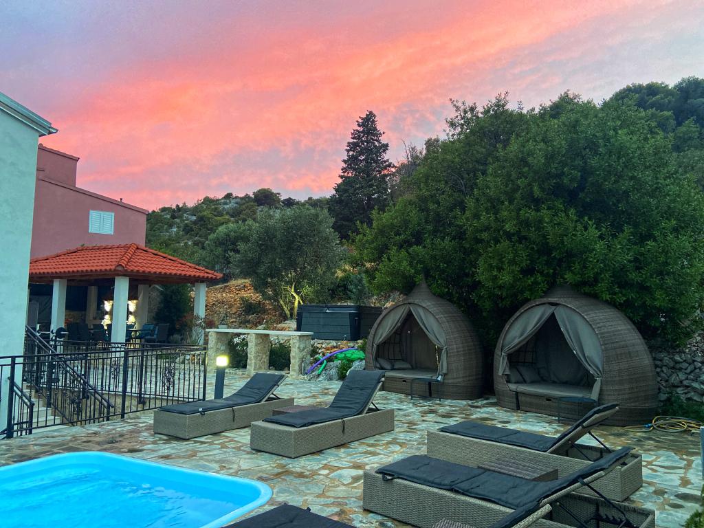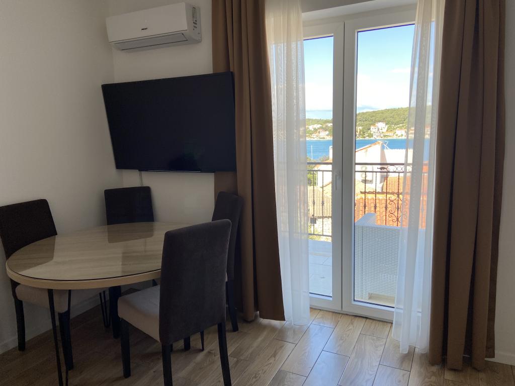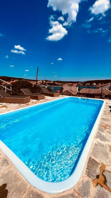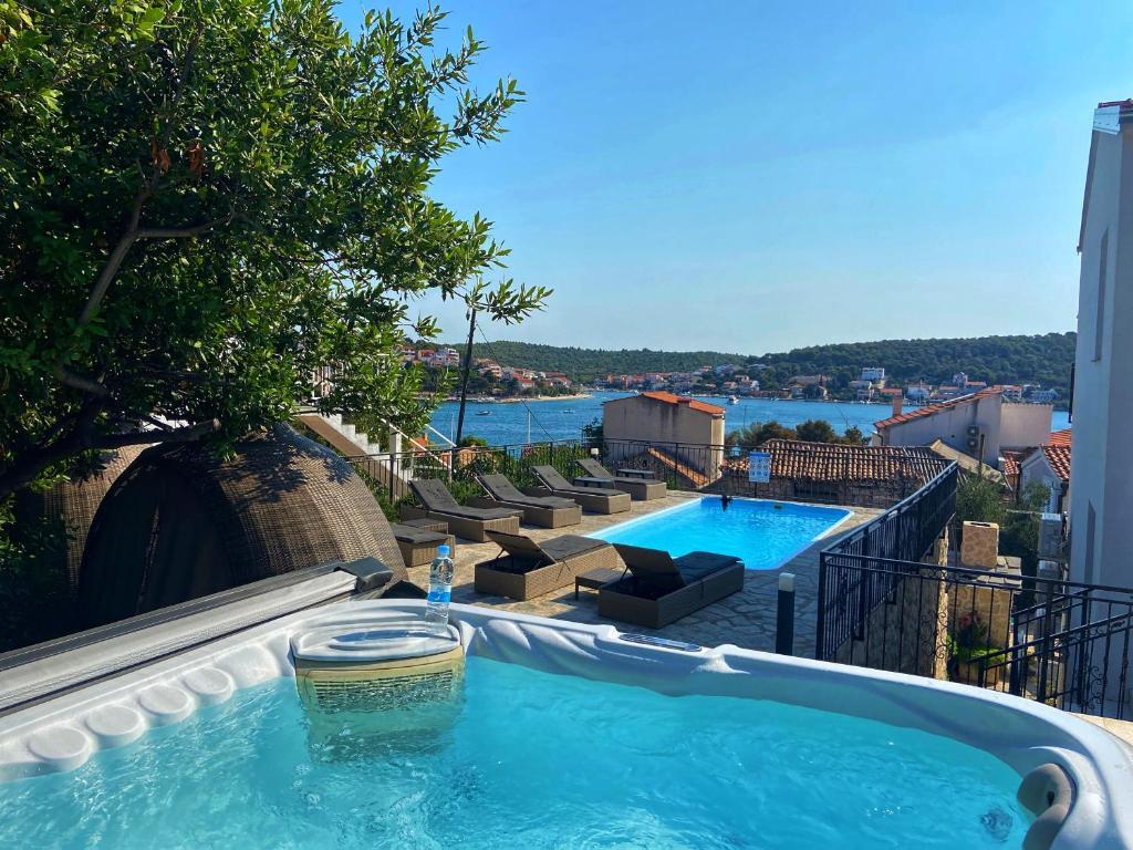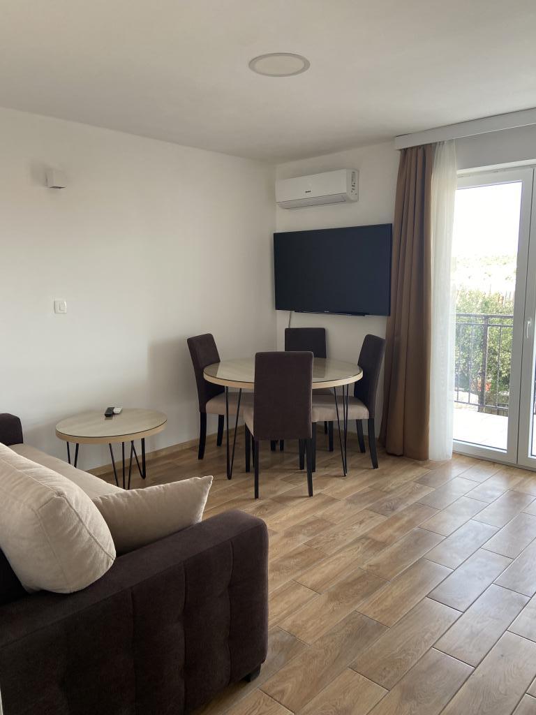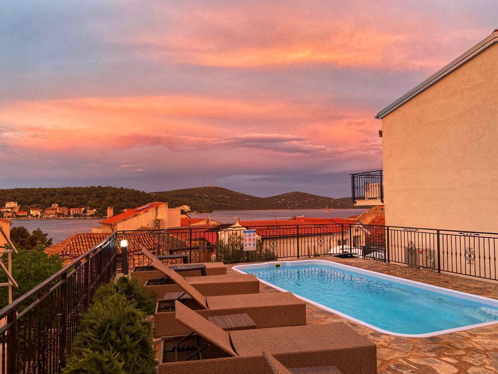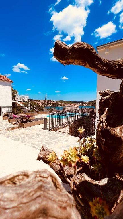 Tisno Resort ligger på ø-delen af byen, i umiddelbar nærhed af havet og strandene, samt skovveje og stier, der fører til de omkringliggende steder, hvorfra der er en enestående udsigt over Kornate National Park. Ved siden af feriestedet er der en stensti, der fører til den smukke gamle stenkirke Vor Frue af Karavaj. Resortet har fire stjerner, hvilket adskiller det fra de fleste andre overnatningssteder lige fra starten og sikrer dermed luksus og privatliv for sine gæster. Det tilbyder 6 separate lejligheder, 2 på hver etage. Hver lejlighed kan rumme 4 personer (et soveværelse med en dobbeltseng og to ekstra soveværelser med de mest moderne memory foam madrasser) og har et soveværelse, badeværelse, køkken og stue. Lejlighederne er udstyret med nyt og moderne lyd- og tv-udstyr, WiFi, møbler og aircondition. Hver af lejlighederne har udgang til altan og udgang til fælles terrasse i stueetagen. Resortets udendørsområde byder på en grill, et fælles udendørs køkken, en swimmingpool og brusere.