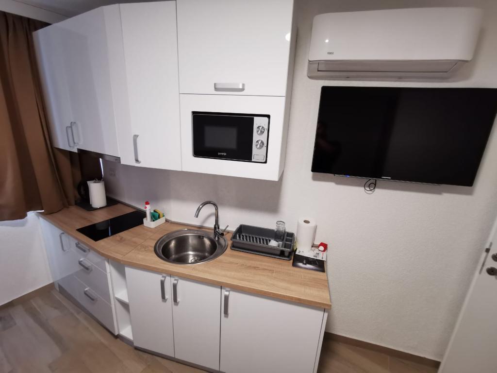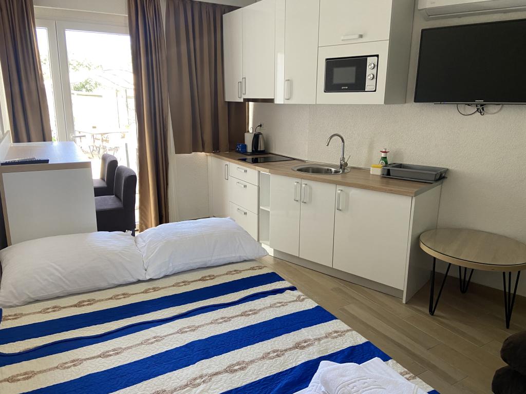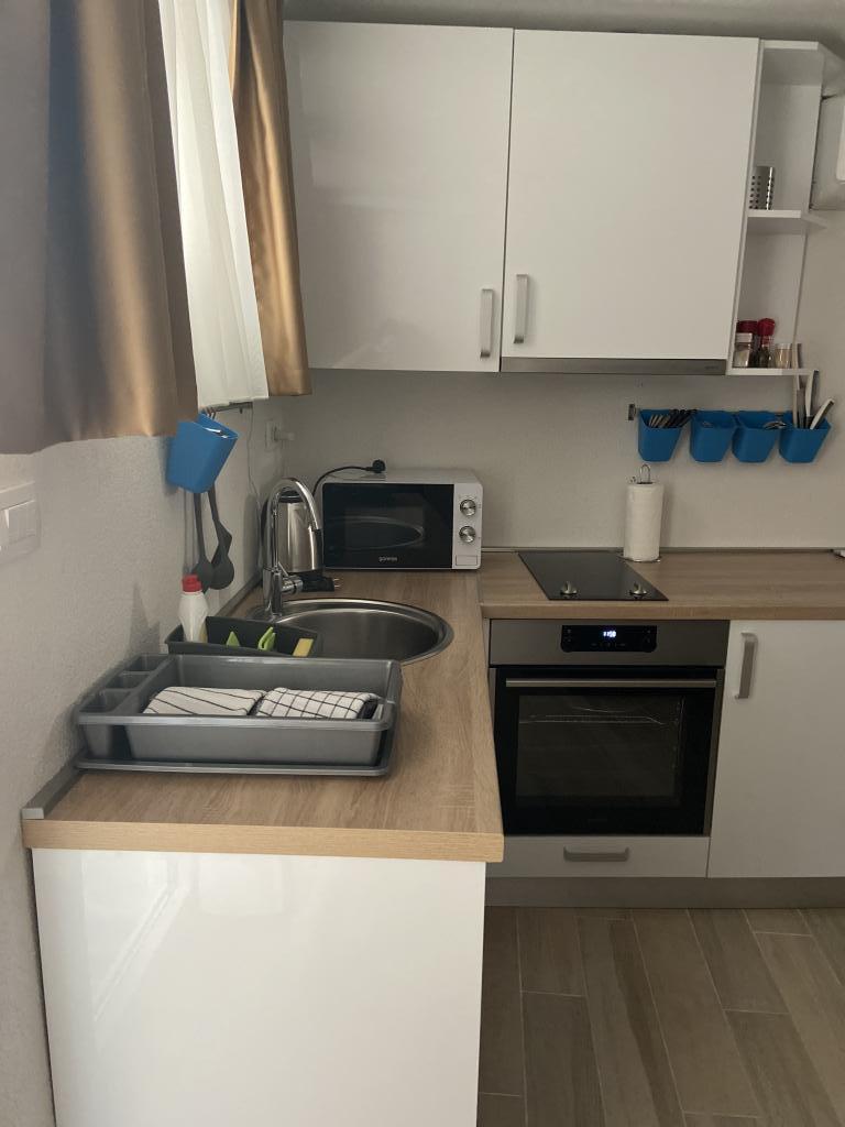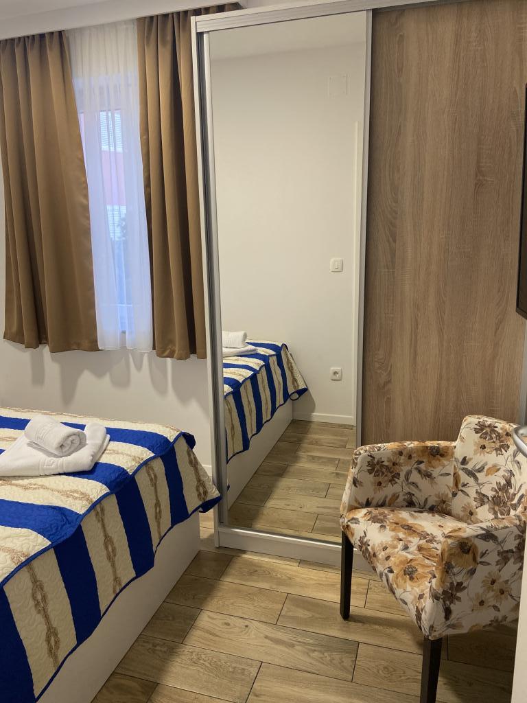 Læs mere IndkvarteringsenhederRengøringsgebyret er ikke inkluderet i overnatningsprisen og opkræves yderligere med 70 € pr. lejlighed. Forudbetaling er 10% af det samlede beløb for overnatning. Betaling er muligt ved bankoverførsel (betaling til kontoen) eller kontant betaling på ankomstdagen (på stedet). Minimumslængden for ophold er 5 nætter. Check ind 16:00-22:00 Check ud indtil 10:00 Gæster må ikke støje mellem 22:00 og 08:00. Der er ingen privat parkering. Offentlig parkering er tilgængelig på gaden. Værten giver gæsterne en gratis parkeringsbillet under deres ophold.