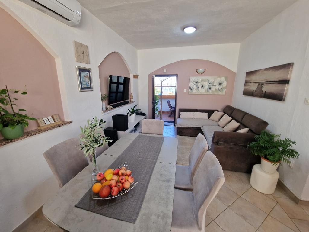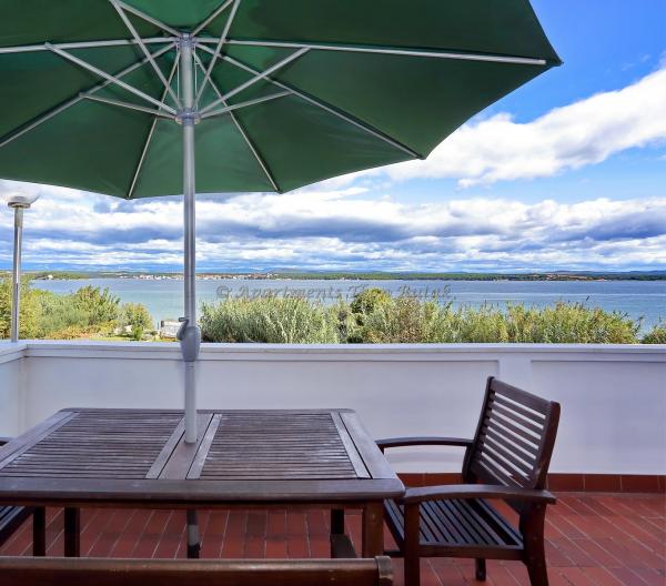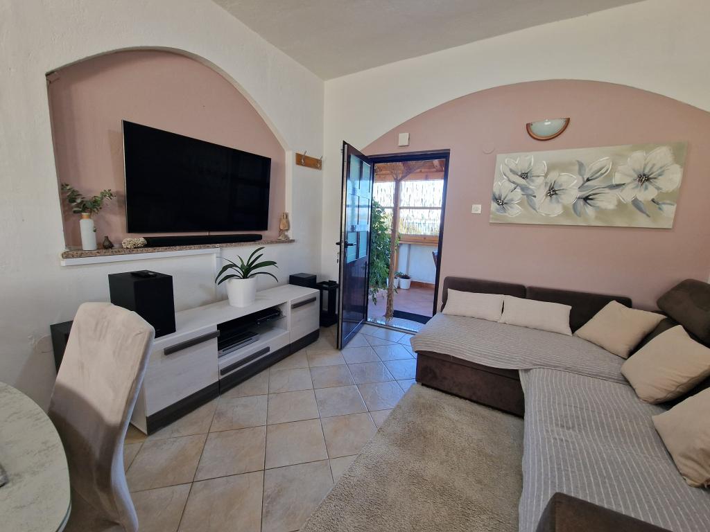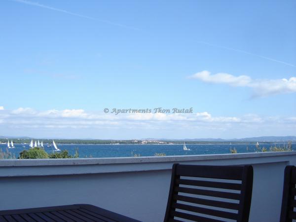 Moderne lejligheder på 20 meter fra sandstranden og havet på øen Pasman! Hyggelig, rummelige og ingen støj. Parkering i skyggen, trådløst internet og air inkluderet. Lejlighed Tkon Rutak I (A4) har evnen til at rumme 5. person tillæg.
