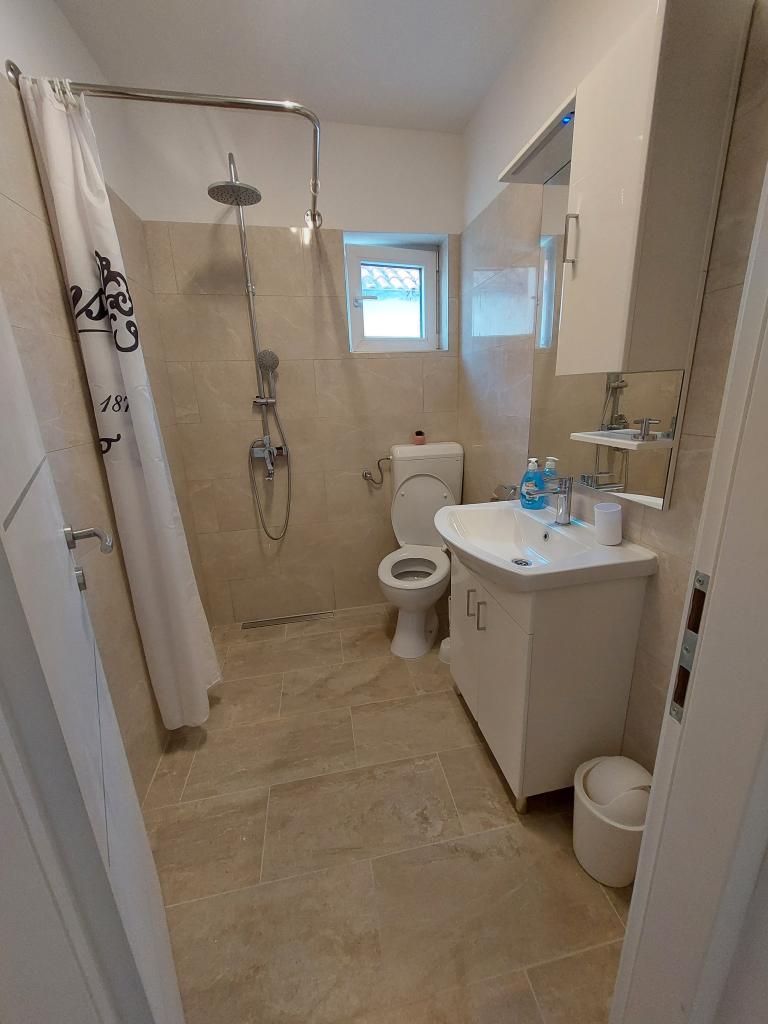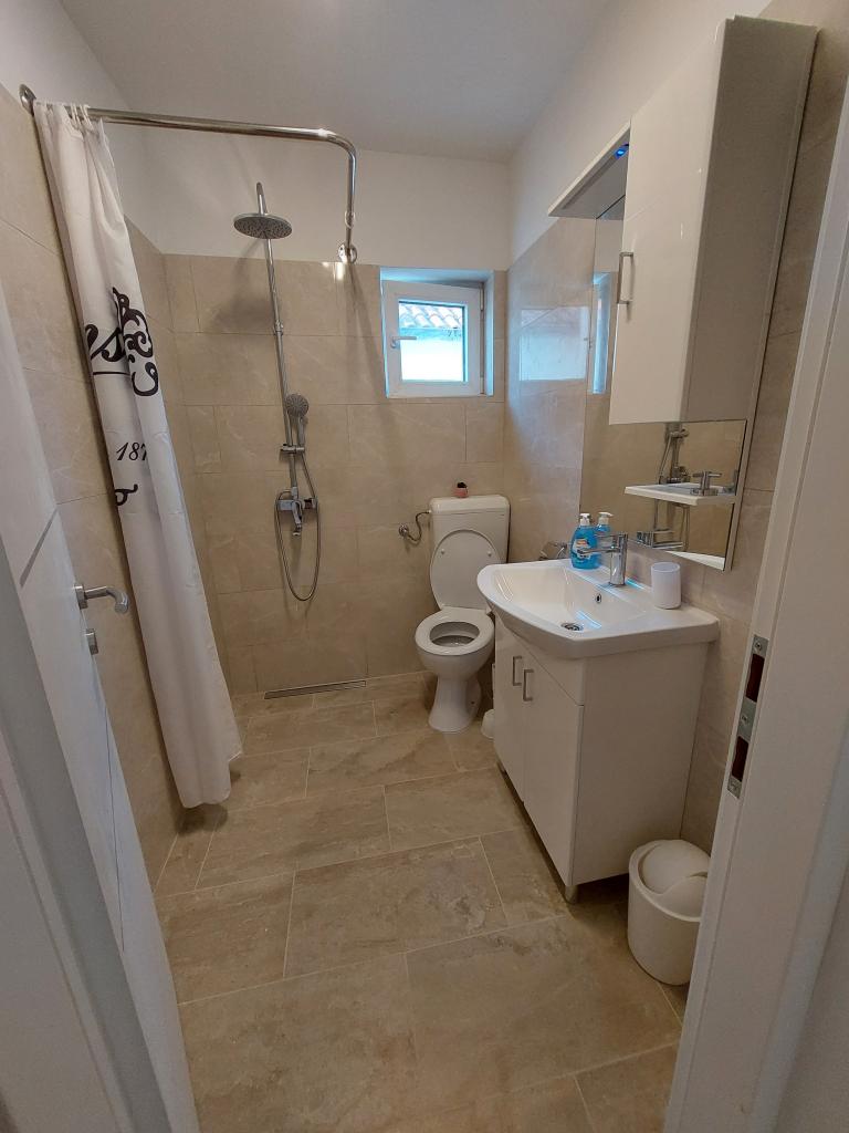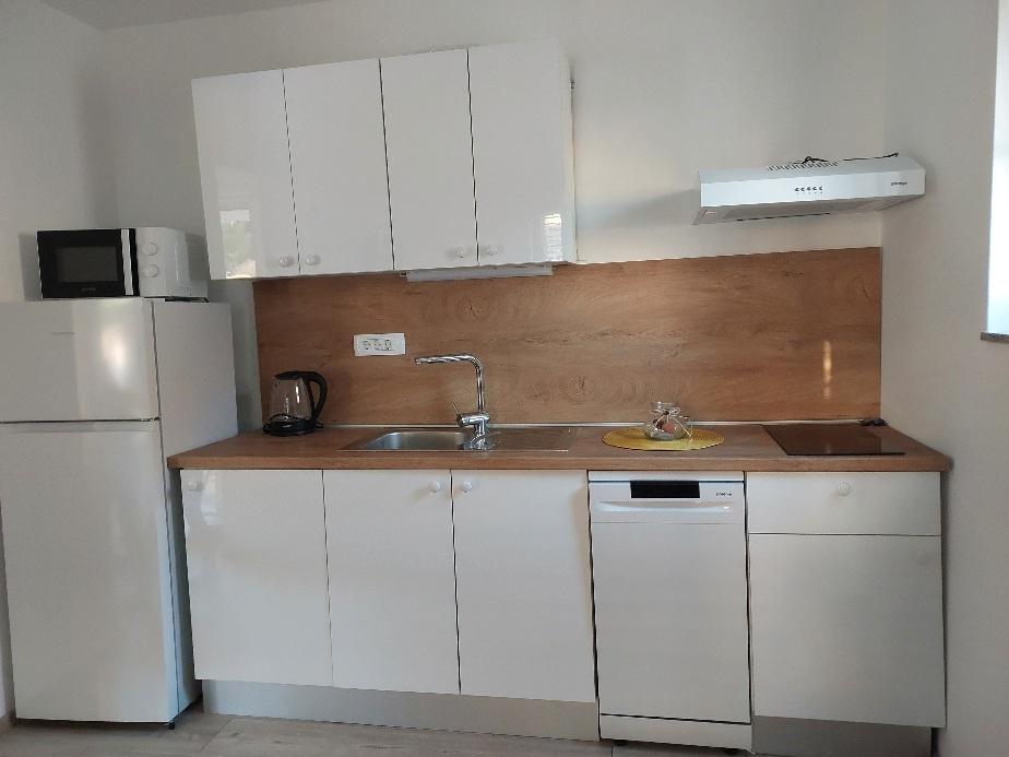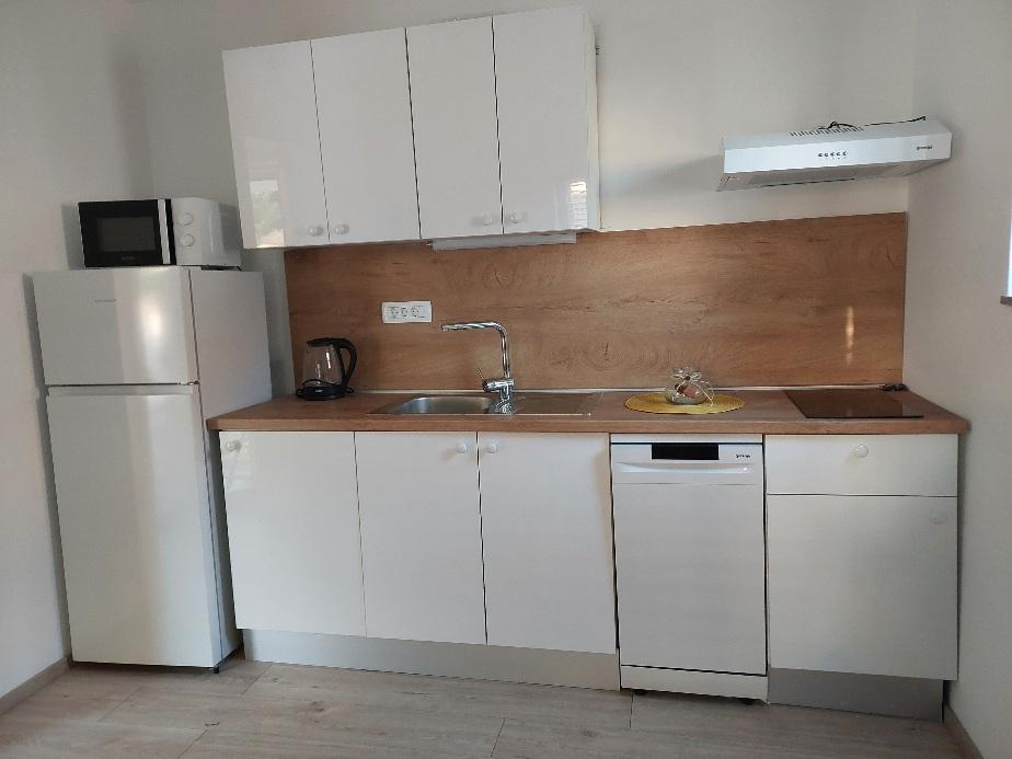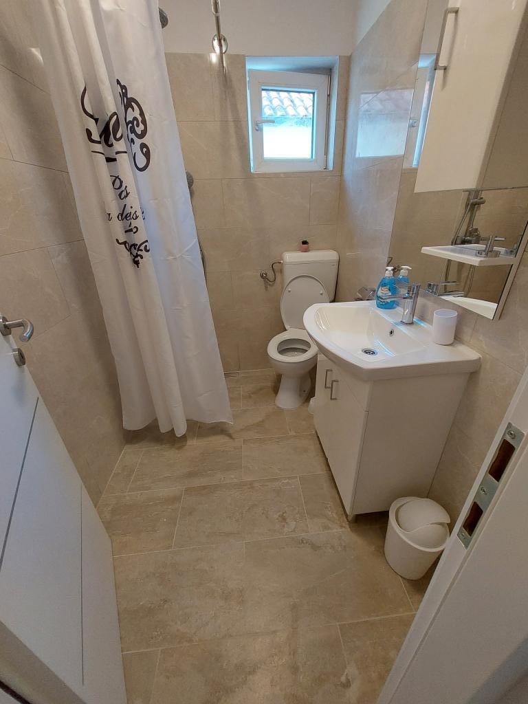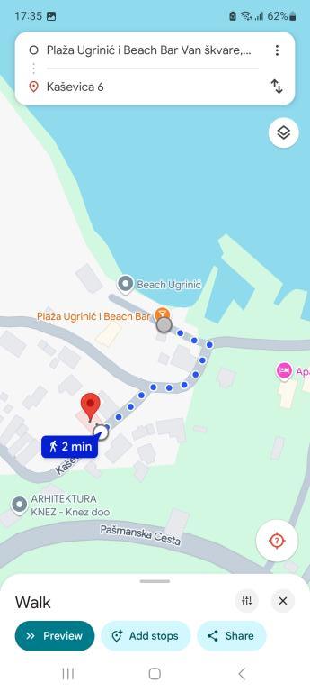 Fuldt udstyrede lejligheder i den rolige og maleriske by Ugrinići, kun 100 m fra stranden. Ideel til en ferie uden folkemængder og støj. Der er kun en café i landsbyen. Andre faciliteter ligger cirka 2 km fra Tkon færgehavn.