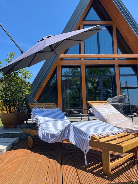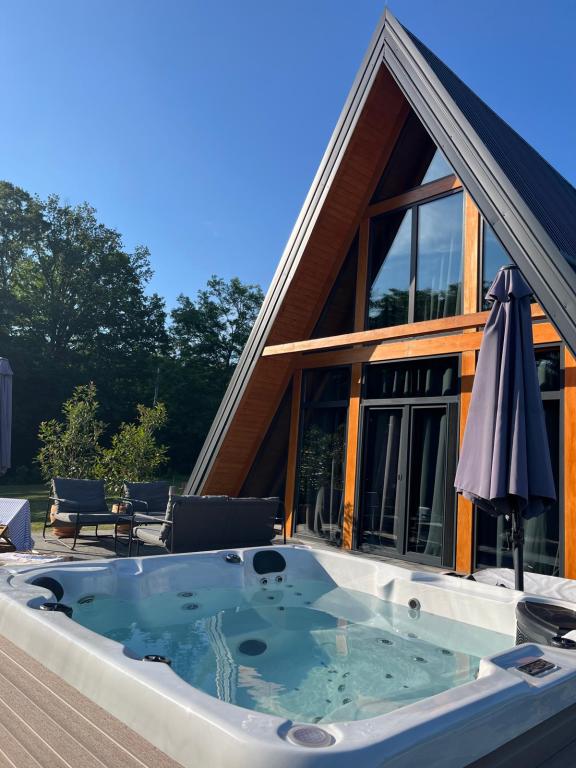 Turistskat er inkluderet i prisen.Huset består af 2 værelser med dobbeltsenge, køkken, stue og spisestue i ét, toilet, badeværelse en stor overdækket terrasse, hvor der er en hydromassage opvarmet pool med 40 dyser, der masserer dig. du kigger på stjernerne og nyder i din yndlingsdrink., kaffemaskine, brætspil og en udendørs grill hvor du kan grille eller bage (lokal slagter 4 km Huset er ikke beregnet til polterabend og polterabend og husdyr er ikke tilladt). .