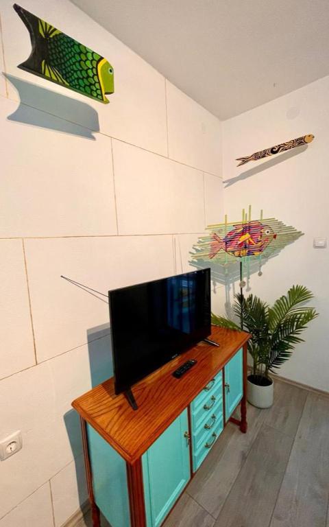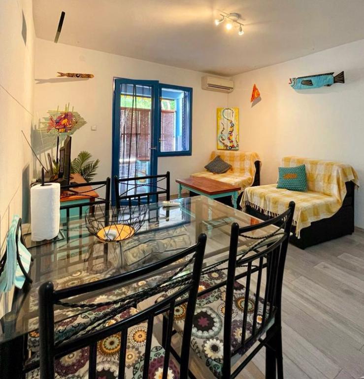 Udover at du befinder dig i et skjult og roligt hjørne af en smuk lille fiskerby, vil du, når du krydser tærsklen, blive mødt af en usædvanlig indretning og en følelse af legende, der vil gøre dit ophold virkelig uforglemmeligt. Sejl ind i ferien med farverige legesyge fisk, der sejler fra rum til rum, og hvert møbel har sin egen historie. Fra soveværelsesvinduet kan du se og dufte laurbærtræerne. Fra stuen, hvor der er komfortable ekstra senge, kan du gå ud til terrassen, hvor du vil have fuldstændig intimitet. Mens klimaanlægget køler dig ned, kan du begive dig ud på et kulinarisk eventyr i det fuldt udstyrede køkken. Du kan socialisere og spise på den udendørs terrasse i den tykke skygge. Dit blikkæledyr har selvfølgelig en garanteret plads lige ved siden af vores nyindrettede lejlighed.
