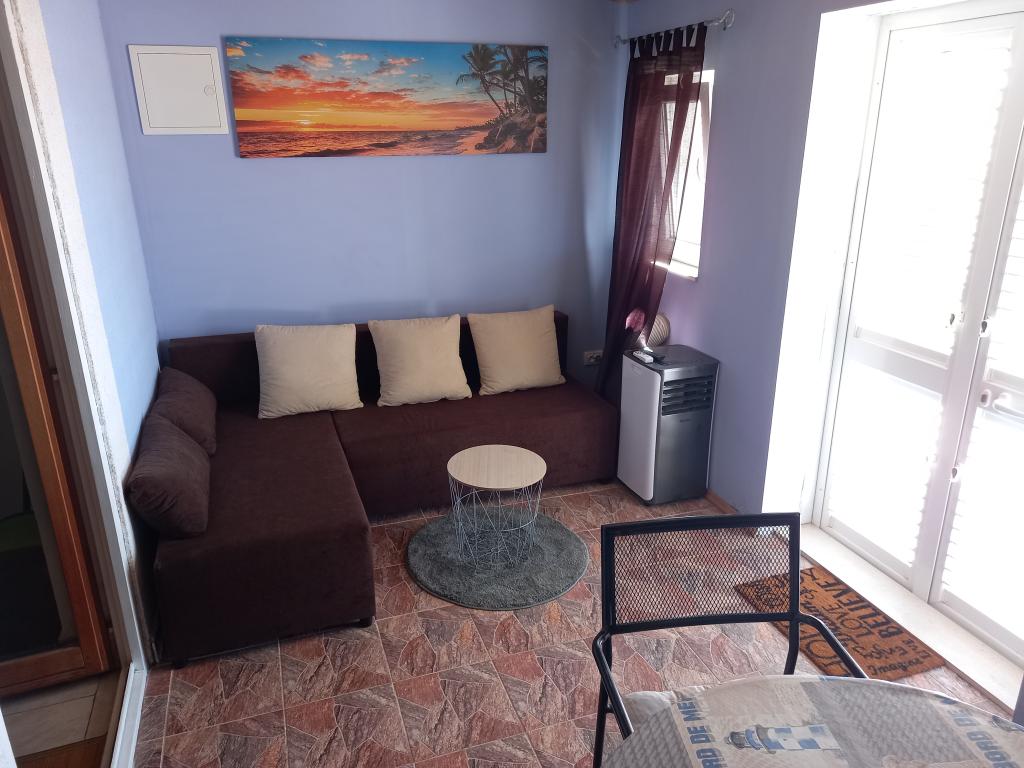 Jeg lejer en toværelses lejlighed på 40 m2 med aircondition, stue, køkken, badeværelse, stor altan, parkeringsplads, tv, internet, til tre personer. lejligheden er beliggende i centrum af byen, 100 meter fra havet og den smukke strand, og 50 meter fra nærmeste butik og marked.