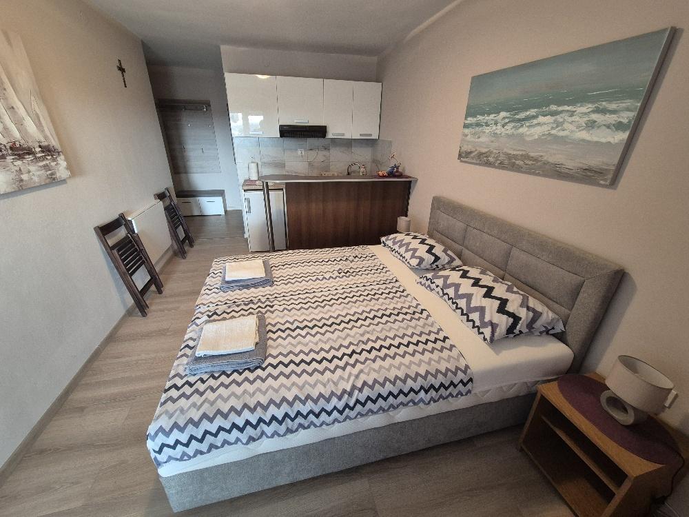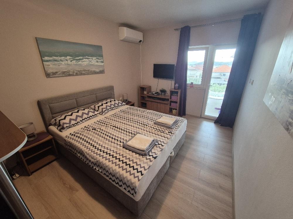 Vi lejer en charmerende to-sengs lejlighed beliggende i Tribunj, en malerisk fiskerby, der rejser sig langs kysten, ikke langt fra det maleriske Vodice og kendt for sit traditionelle fragtræs. Beliggende på anden sal i en mindre bygning byder denne lejlighed på en rummelig terrasse med en smuk udsigt over havet og det omkringliggende landskab, som rækker helt til Vodice, Šibenik, Prvić og en række andre øer, mens kirken i St. Nikole skinner om natten i det fjerne. Gæsterne har adgang til aircondition, parkering og et moderne LCD-tv/satellitantenne til hyggelige aftener med afslapning. Køkkenet er fuldt udstyret med gaskomfur, køleskab med fryser og alt nødvendigt tilbehør til tilberedning og servering af mad og drikke. Badeværelset er komfortabelt, udstyret med brusekabine og funktionelle sanitære faciliteter. Prisen inkluderer turistskat, brug af aircondition og parkering, og et forskud på 30% af prisen sikrer reservationen. Tribunj tilbyder smukke strande og alle nødvendige faciliteter for et behageligt ophold - butikker, pengeautomater, klinik, apotek,