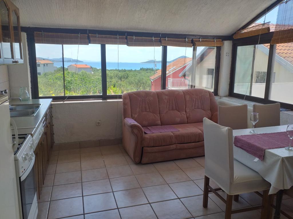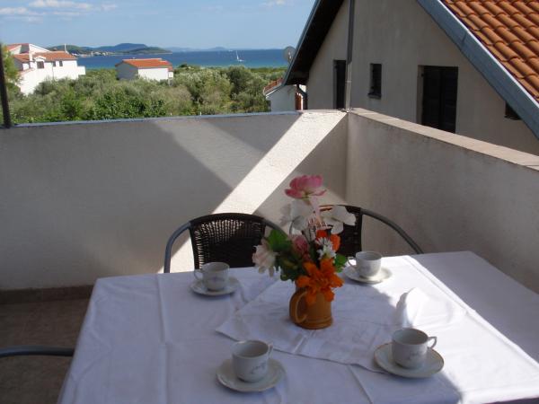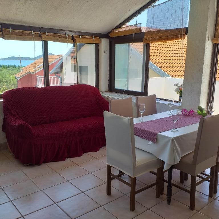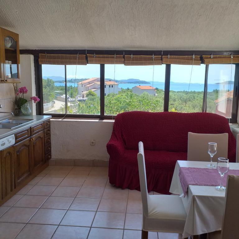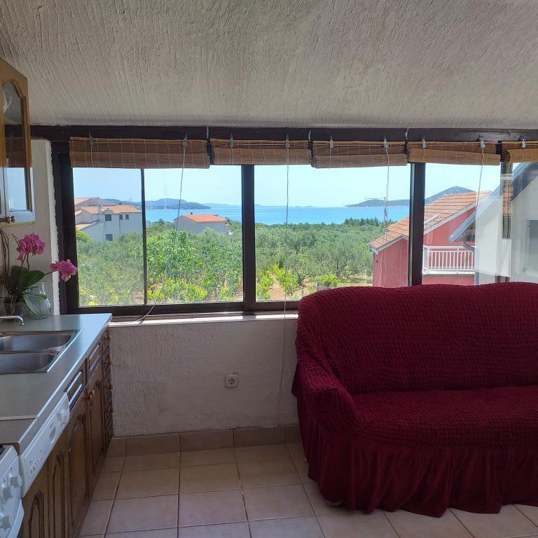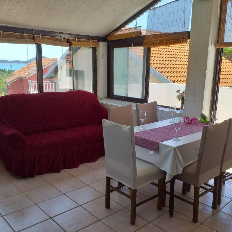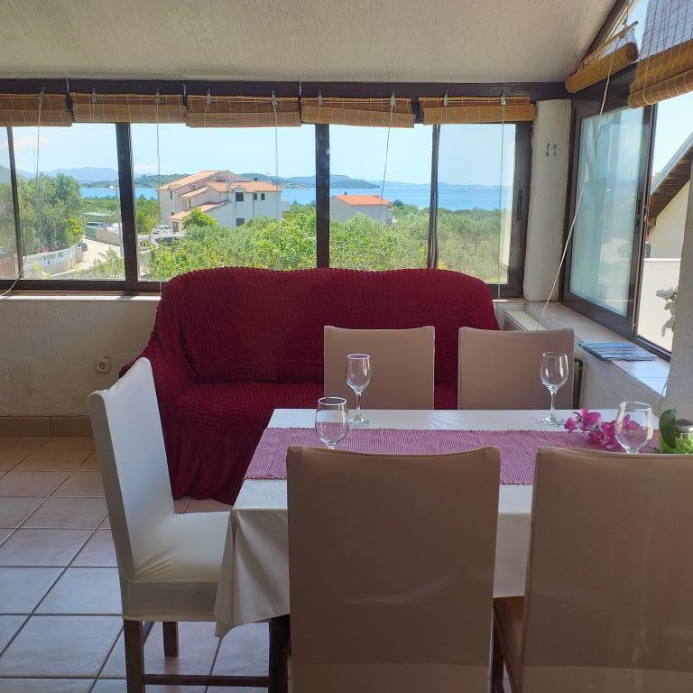 Villa Antonela ligger i en rolig og meget smuk del af Tribunj, på en privat grund på 2500 m2. Lejlighederne med to soveværelser har en usædvanlig smuk udsigt over vores vingård, olivenlund, hav og øgruppe. Den er omgivet af naturens skønhed: vinstokke og oliventræer... Den har 3 lejligheder med to soveværelser, 3×A4, som har en terrasse med havudsigt, og to A2-lejligheder med et soveværelse. Alle lejligheder har en terrasse eller balkon. Til større grupper er der borde i skyggen foran huset, og haven er indhegnet, så børnene kan lege i fred og ro. Lejlighederne er fuldt udstyrede: LCD-satellit-tv, aircondition, internet (W-bane), centralvarme, parkering. Der er en stor privat parkeringsplads, grill, indhegnet have i skyggen med bord og stole, der er egnede til gæster, hvor de kan hygge sig, og hvor børnene kan lege. Vi sælger lokale produkter såsom olivenolie... Velkommen!