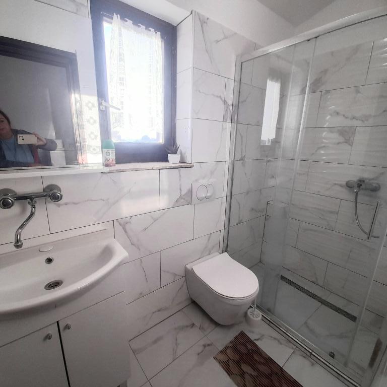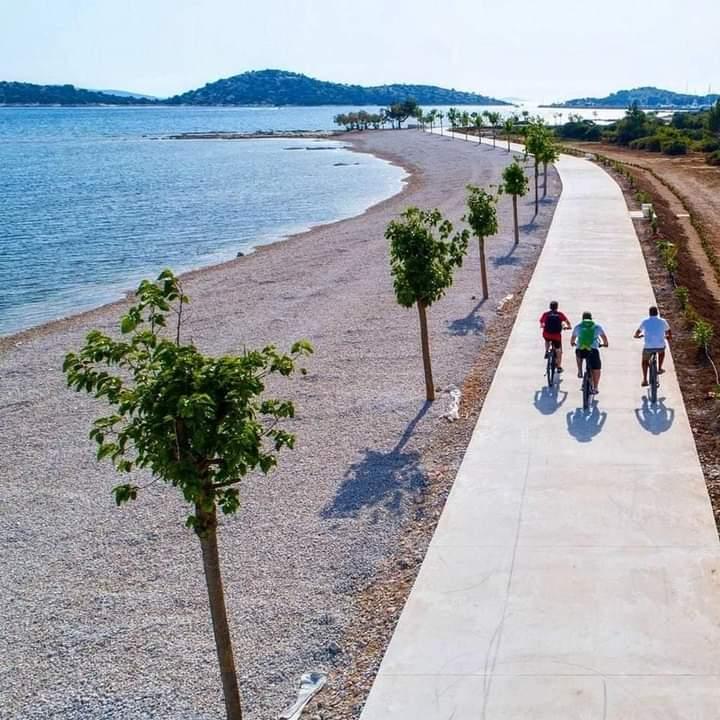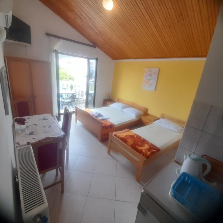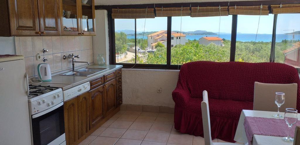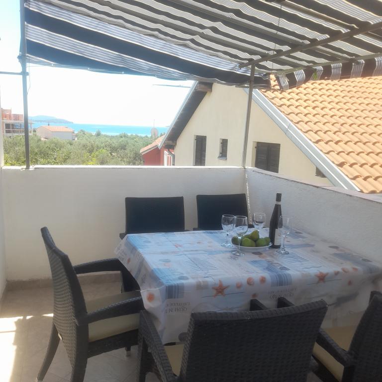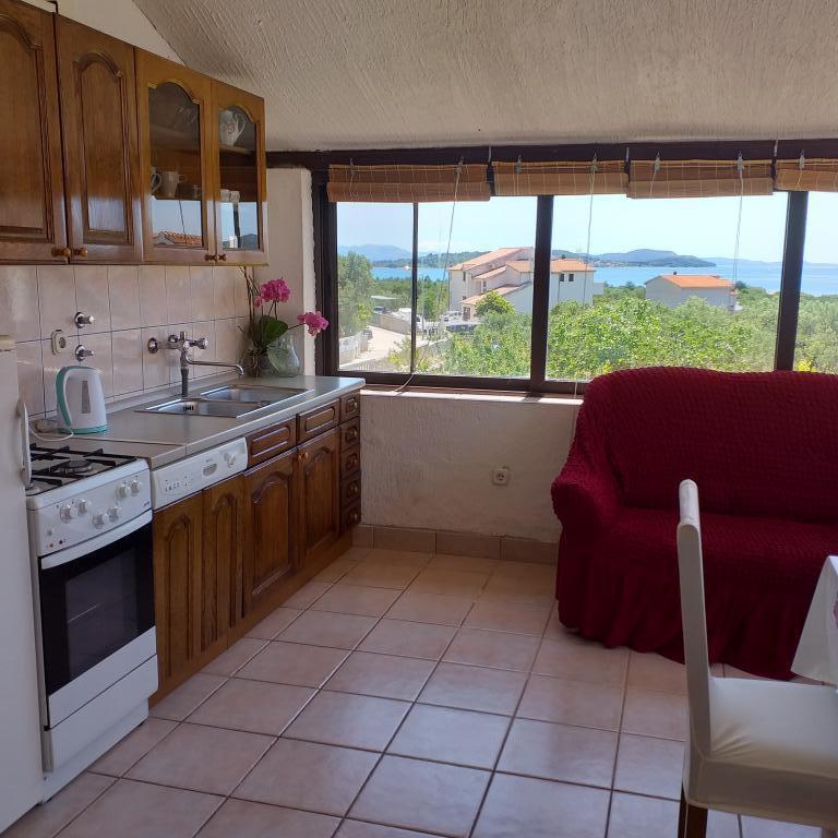 Villa Antonela ligger i en rolig og meget smuk del af Tribunj, på en privat grund på 2500 m2. Lejlighederne med to soveværelser har en usædvanlig smuk udsigt over vores vingård, olivenlund, hav og øgruppe. Den er omgivet af naturens skønhed: vinstokke og oliventræer... Den har 3 lejligheder med to soveværelser, 3×A4, som har en terrasse med havudsigt, og to A2-lejligheder med et soveværelse. Alle lejligheder har en terrasse eller balkon. Til større grupper er der borde i skyggen foran huset, og haven er indhegnet, så børnene kan lege i fred og ro. Lejlighederne er fuldt udstyrede: LCD-satellit-tv, aircondition, internet (W-bane), centralvarme, parkering. Der er en stor privat parkeringsplads, grill, indhegnet have i skyggen med bord og stole, der er egnede til gæster, hvor de kan hygge sig, og hvor børnene kan lege. Vi sælger lokale produkter såsom olivenolie... Velkommen!