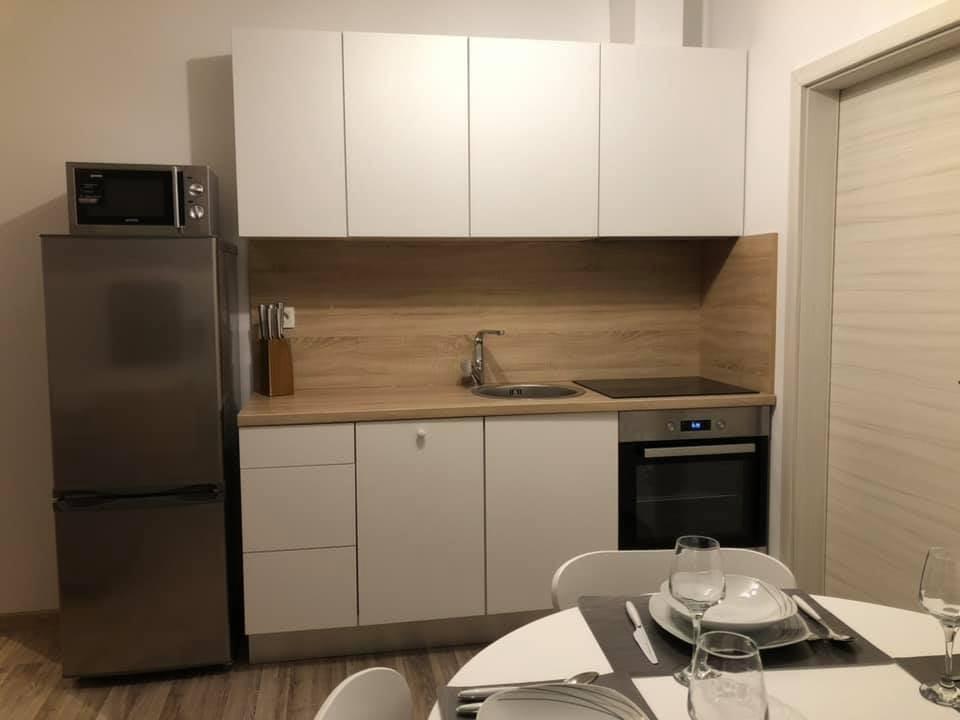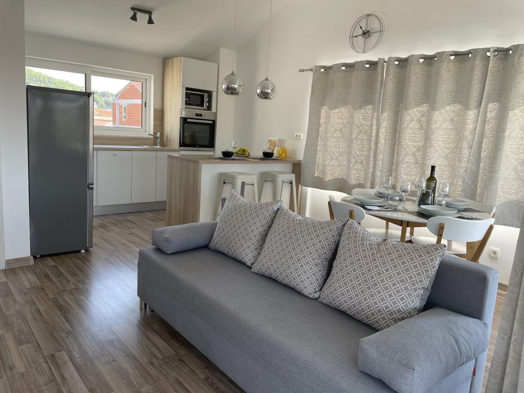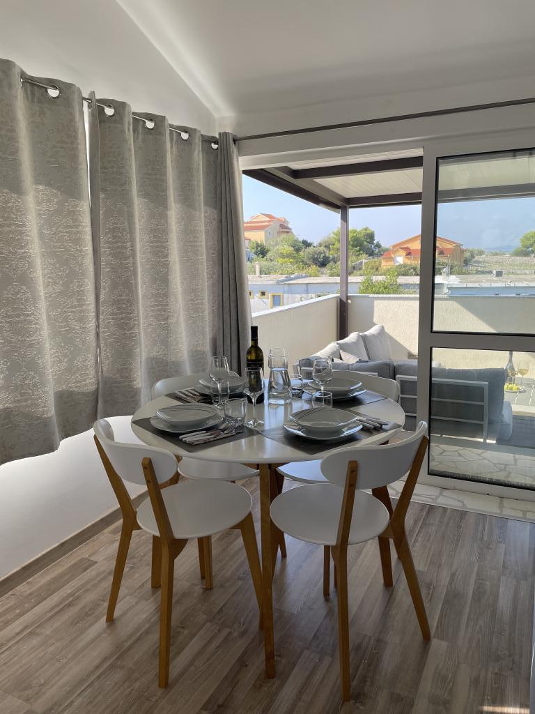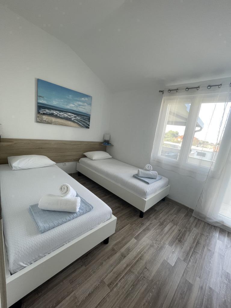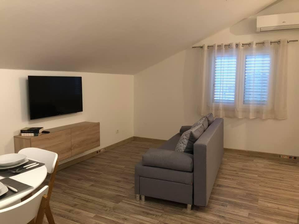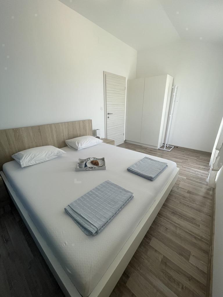 Fuldt og moderne udstyrede lejligheder i et roligt område, kun 300 m fra stranden med mange faciliteter. Lejlighederne ligger på anden sal i et familiehus, i den indhegnede have kan du nyde et overdækket område til socialt samvær med et sommerkøkken og grill. Privat parkering er placeret foran gården. 50 m fra huset er der et busstoppested, og 200 m fra huset ligger den første butik. Bymidten ligger 800 m væk, du kan nå den via vejen eller via promenaden, der strækker sig langs havet. Vi elsker dyr, men vi er ikke kæledyrsvenlige.