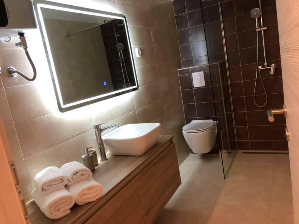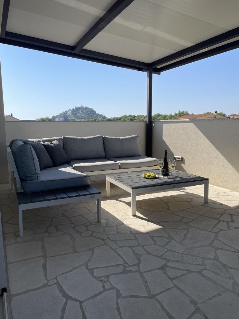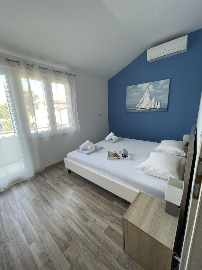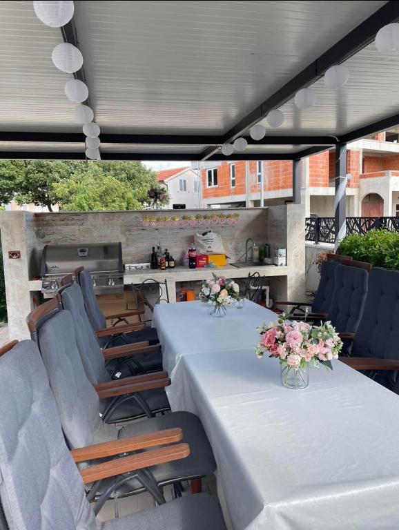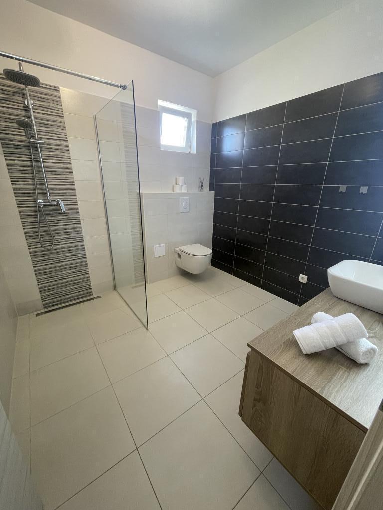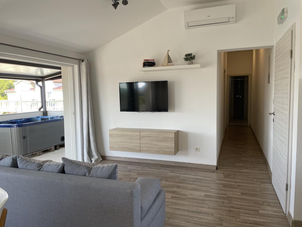 Fuldt og moderne udstyrede lejligheder i et roligt område, kun 300 m fra stranden med mange faciliteter. Lejlighederne ligger på anden sal i et familiehus, i den indhegnede have kan du nyde et overdækket område til socialt samvær med et sommerkøkken og grill. Privat parkering er placeret foran gården. 50 m fra huset er der et busstoppested, og 200 m fra huset ligger den første butik. Bymidten ligger 800 m væk, du kan nå den via vejen eller via promenaden, der strækker sig langs havet. Vi elsker dyr, men vi er ikke kæledyrsvenlige.