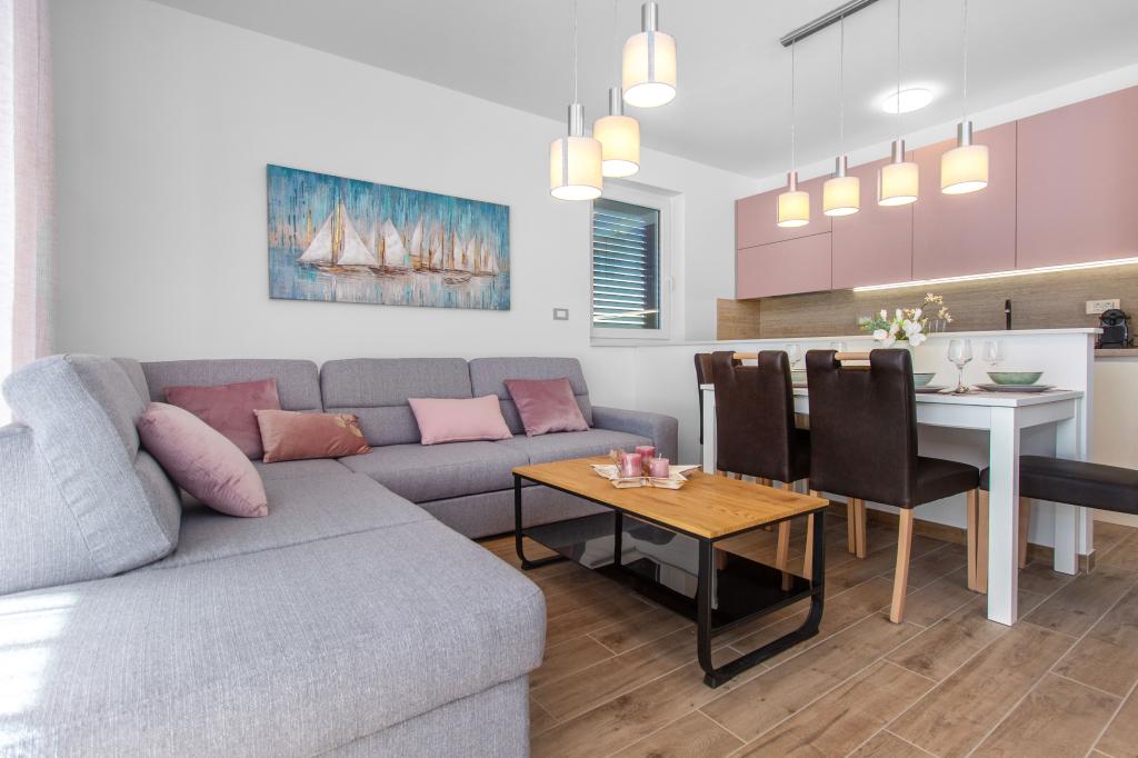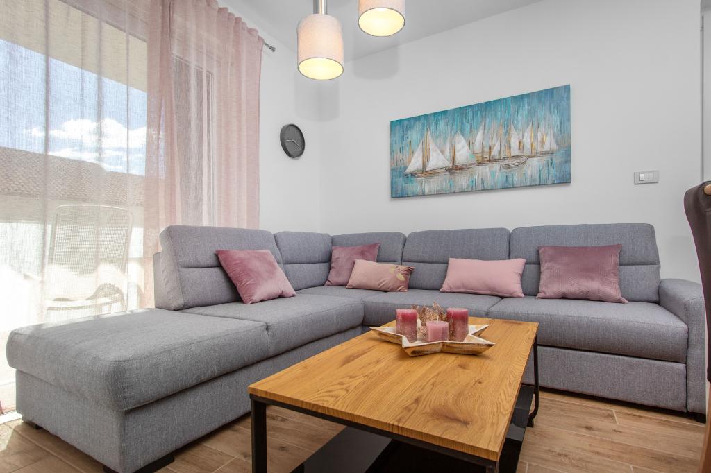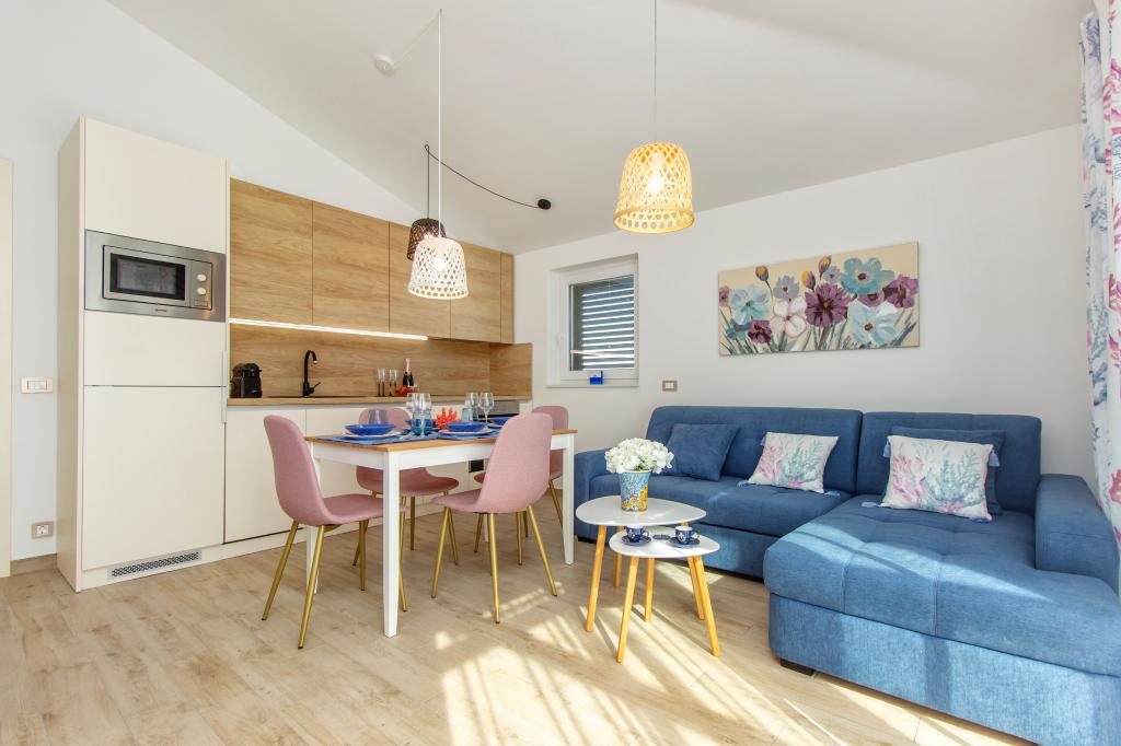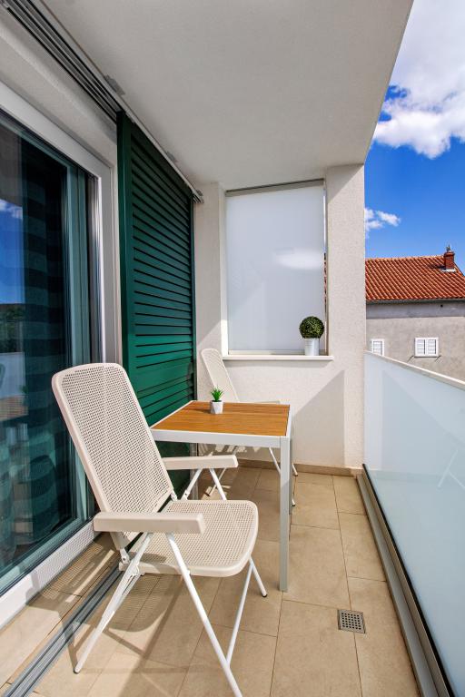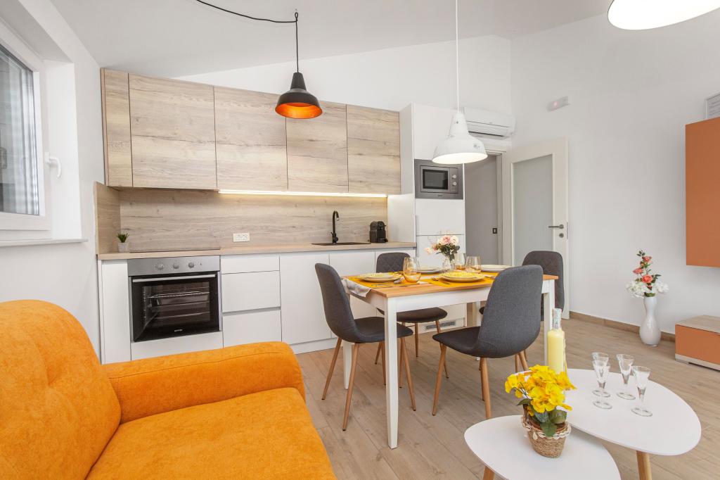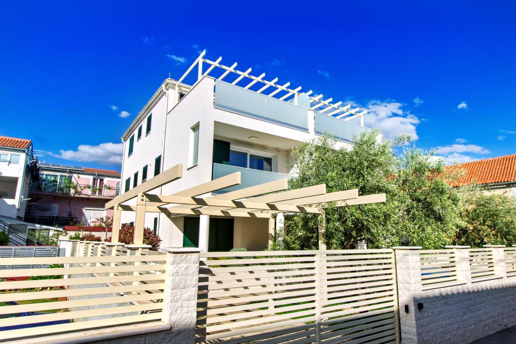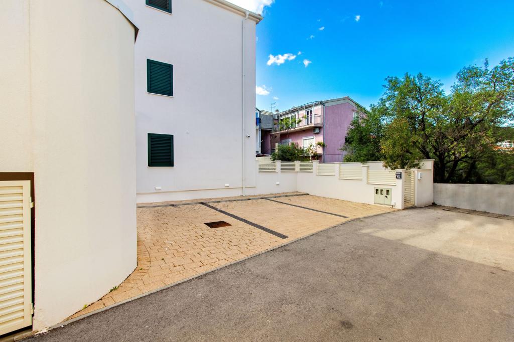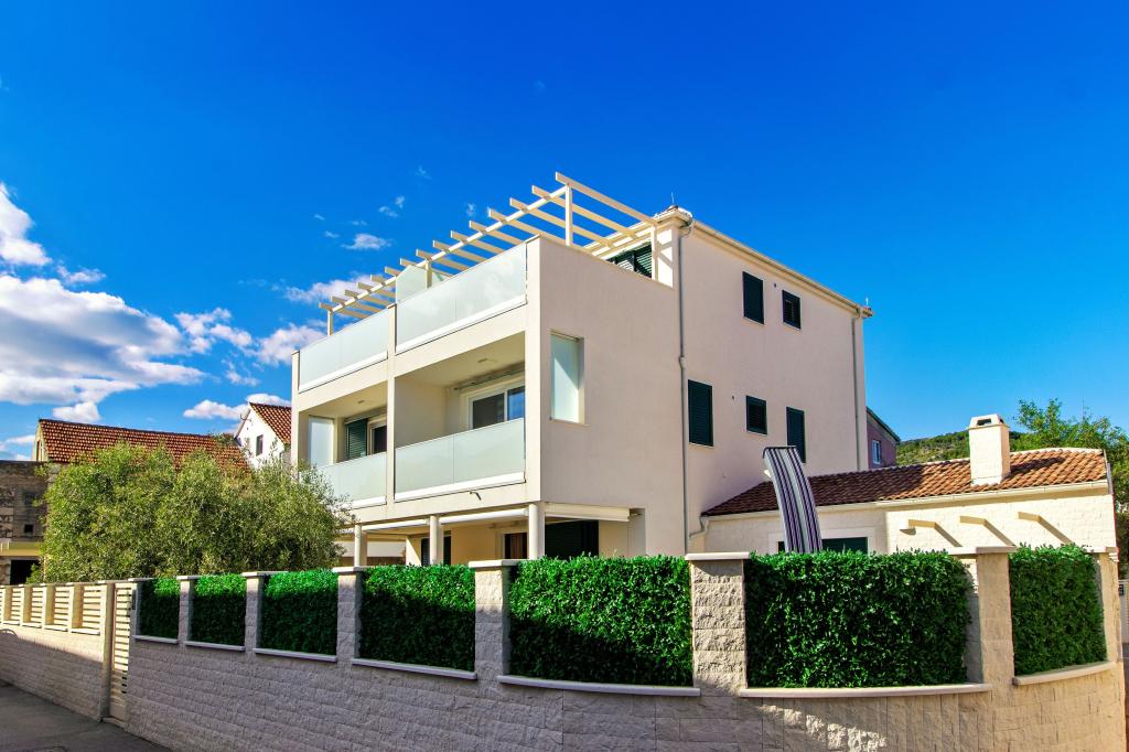 Three Olives-anlægget er en ny bygning og åbner dørene for gæster for første gang fra sommeren 2024. I gården af bygningen er der tre gamle oliventræer, træ så typisk for den kroatiske kyst og øer, fra hvis frugter den bedste kvalitet olie er opnået, ofte kaldet "flydende guld". Navnet Three Olives antyder et miljø med fred, ro og overflod. Lejlighederne i anlægget er unikke, moderne og fuldt funktionelt udstyret til at få dig til at føle dig godt tilpas, ligesom i dit eget hjem! Anlægget er fremragende placeret; det ligger 150 m fra havet og 200 m fra byens centrum. Der er ingen større veje eller forretningsfaciliteter i umiddelbar nærhed, så gæsterne er sikret fred i løbet af dagen og natten. Kort sagt, alt er klar til din komplette ferie.