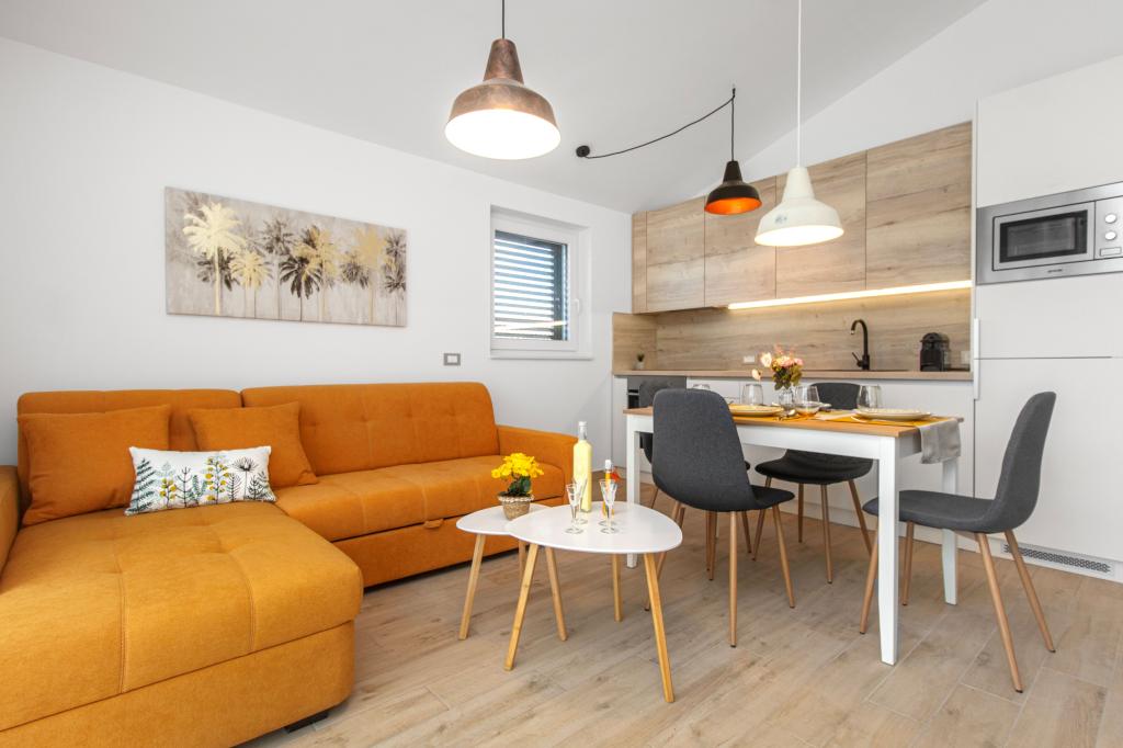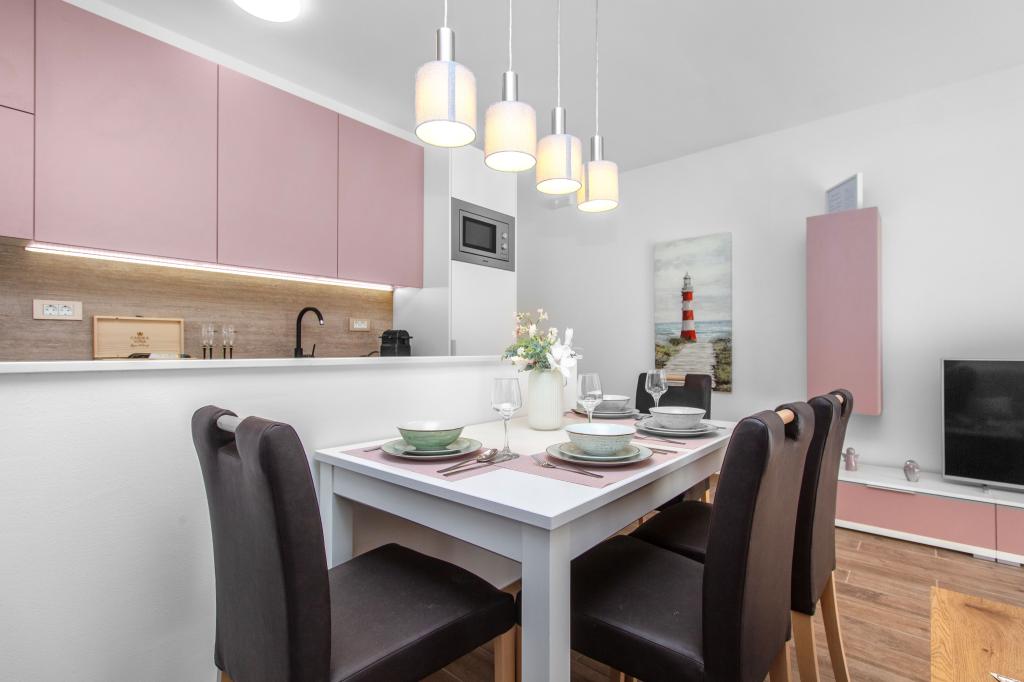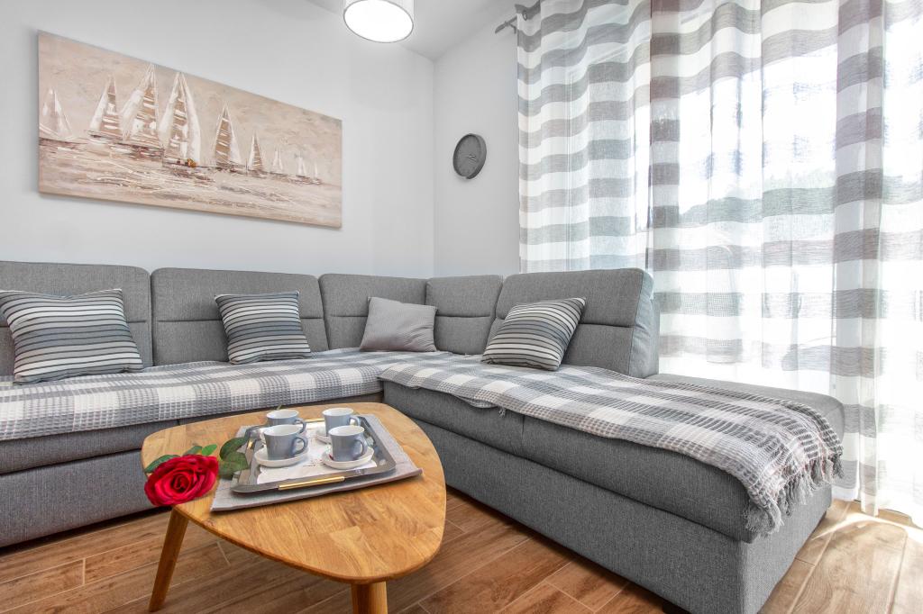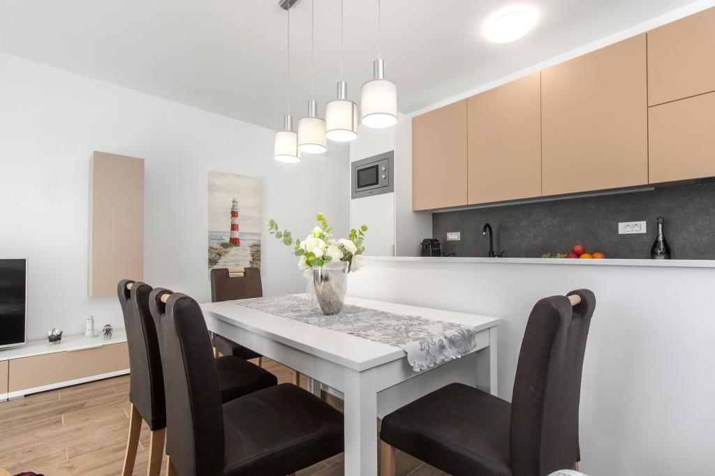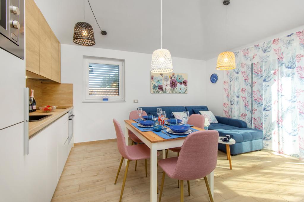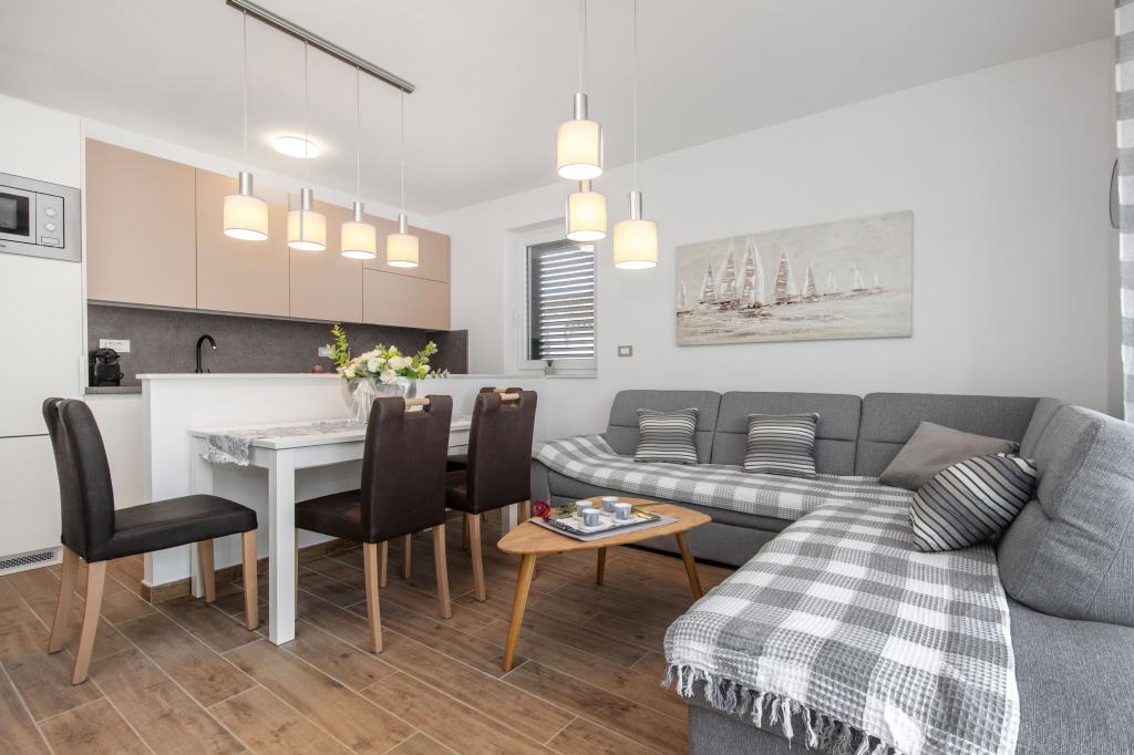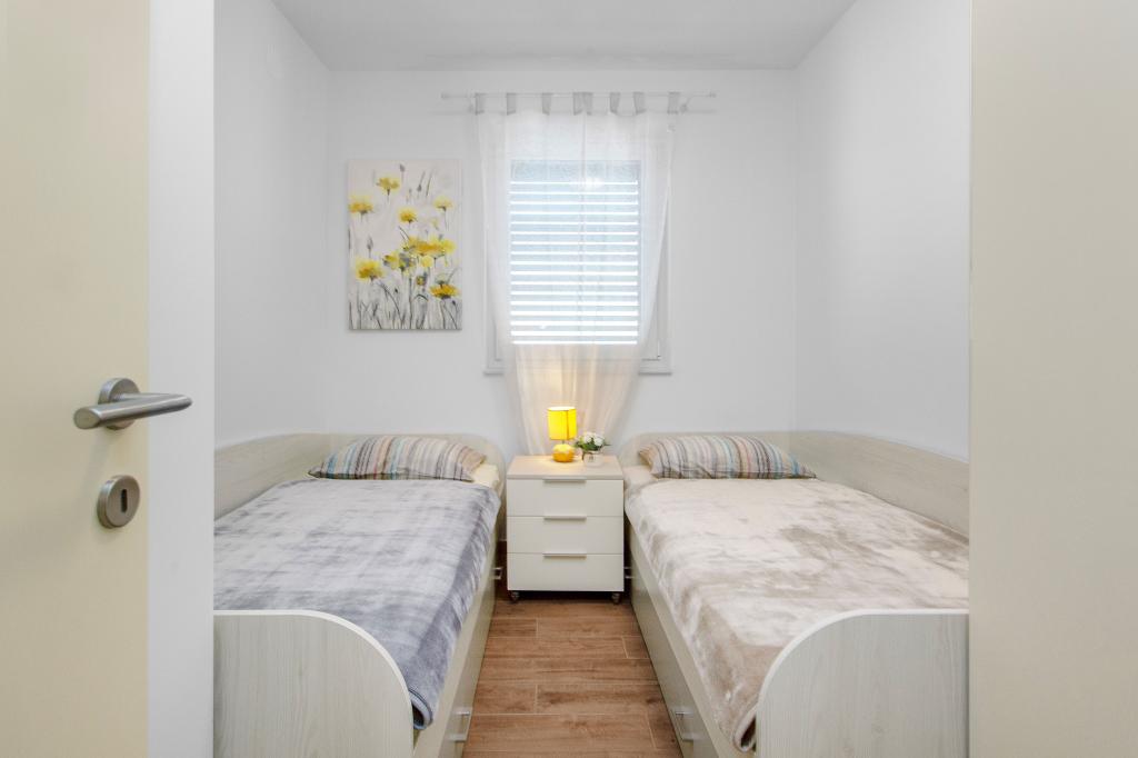 Three Olives-anlægget er en ny bygning og åbner dørene for gæster for første gang fra sommeren 2024. I gården af bygningen er der tre gamle oliventræer, træ så typisk for den kroatiske kyst og øer, fra hvis frugter den bedste kvalitet olie er opnået, ofte kaldet "flydende guld". Navnet Three Olives antyder et miljø med fred, ro og overflod. Lejlighederne i anlægget er unikke, moderne og fuldt funktionelt udstyret til at få dig til at føle dig godt tilpas, ligesom i dit eget hjem! Anlægget er fremragende placeret; det ligger 150 m fra havet og 200 m fra byens centrum. Der er ingen større veje eller forretningsfaciliteter i umiddelbar nærhed, så gæsterne er sikret fred i løbet af dagen og natten. Kort sagt, alt er klar til din komplette ferie.