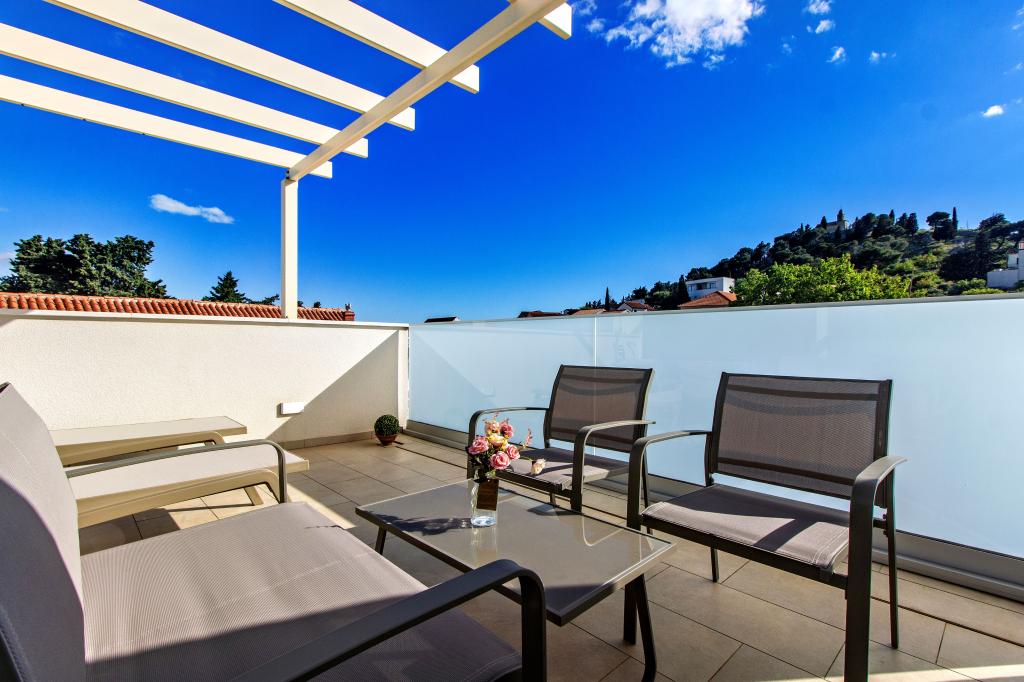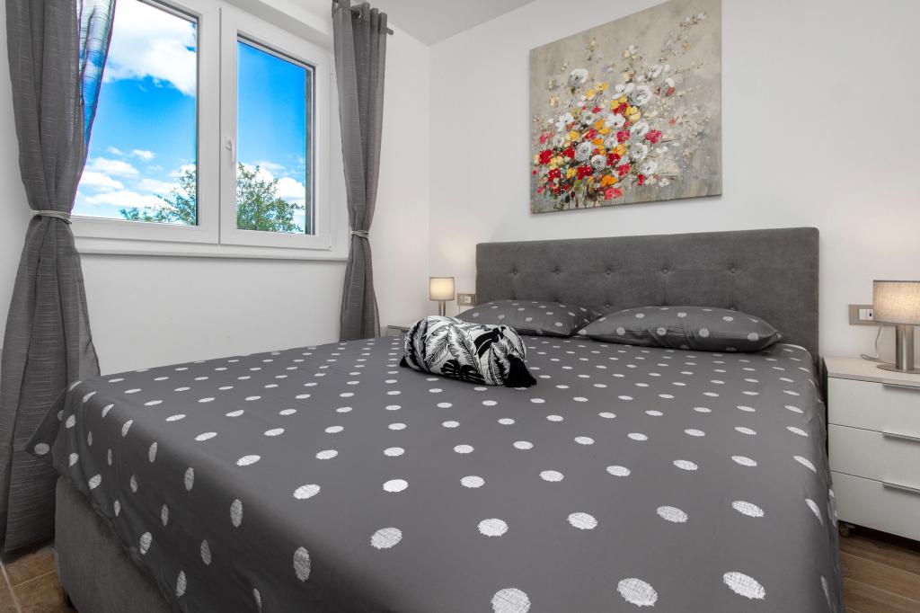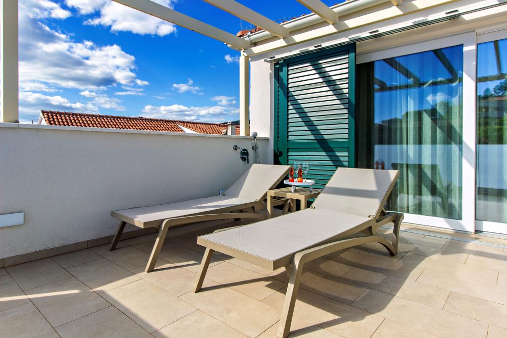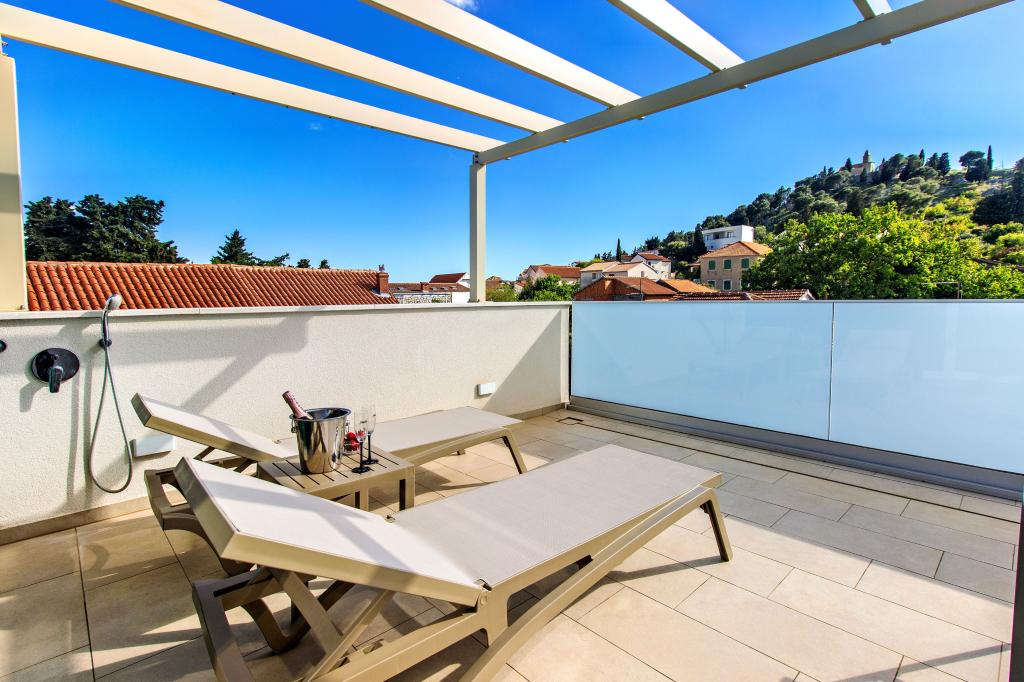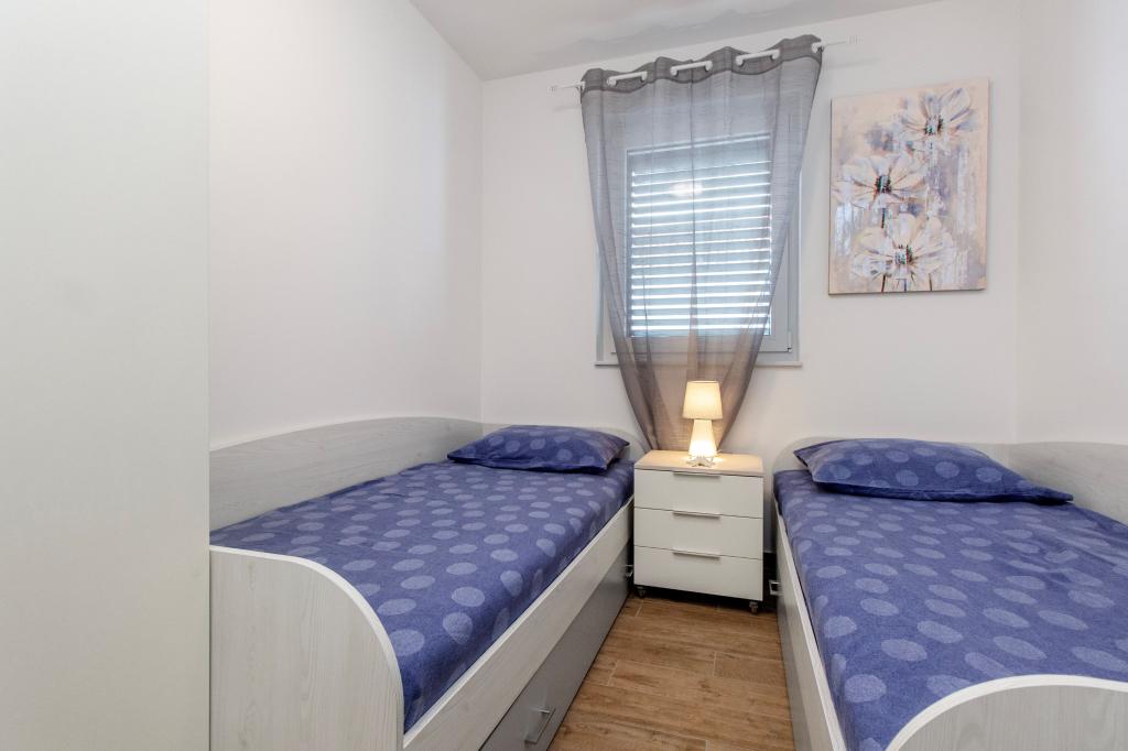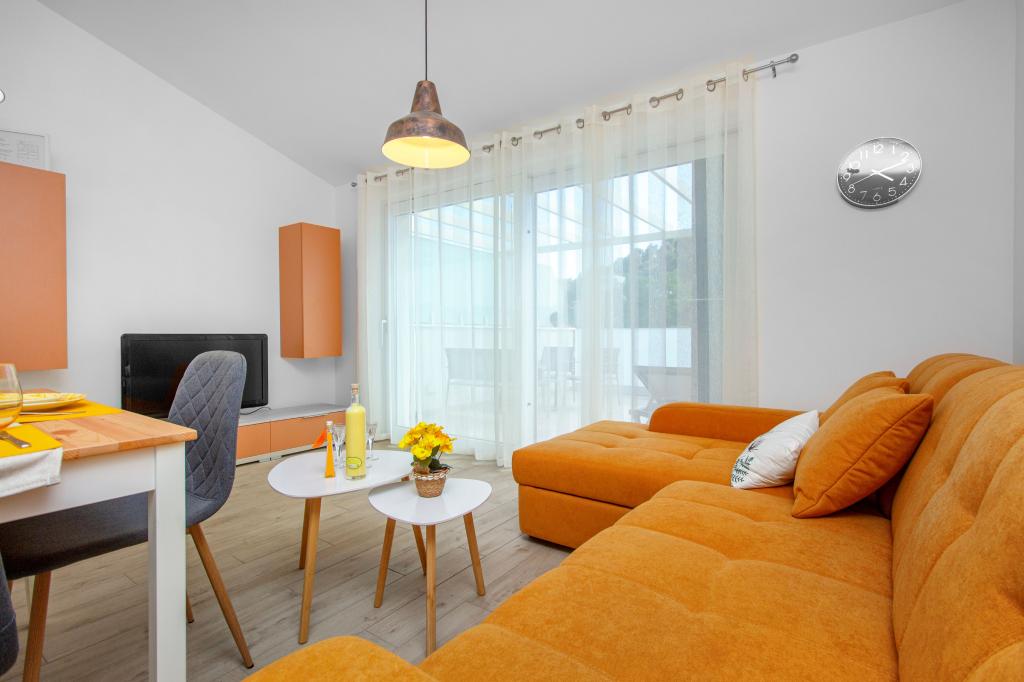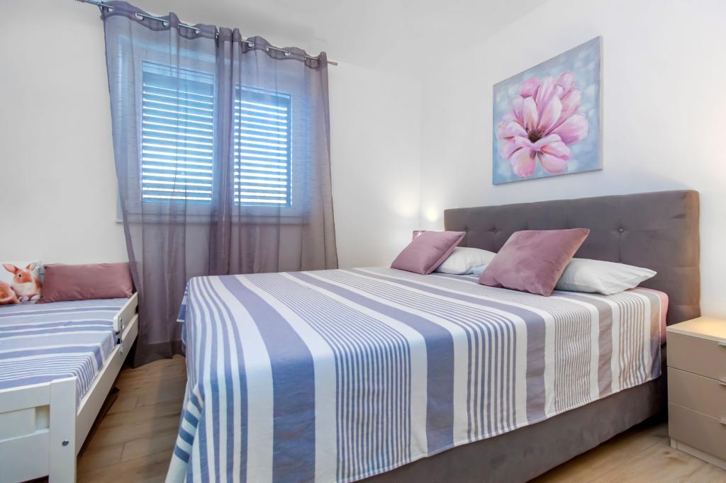 Three Olives-anlægget er en ny bygning og åbner dørene for gæster for første gang fra sommeren 2024. I gården af bygningen er der tre gamle oliventræer, træ så typisk for den kroatiske kyst og øer, fra hvis frugter den bedste kvalitet olie er opnået, ofte kaldet "flydende guld". Navnet Three Olives antyder et miljø med fred, ro og overflod. Lejlighederne i anlægget er unikke, moderne og fuldt funktionelt udstyret til at få dig til at føle dig godt tilpas, ligesom i dit eget hjem! Anlægget er fremragende placeret; det ligger 150 m fra havet og 200 m fra byens centrum. Der er ingen større veje eller forretningsfaciliteter i umiddelbar nærhed, så gæsterne er sikret fred i løbet af dagen og natten. Kort sagt, alt er klar til din komplette ferie.