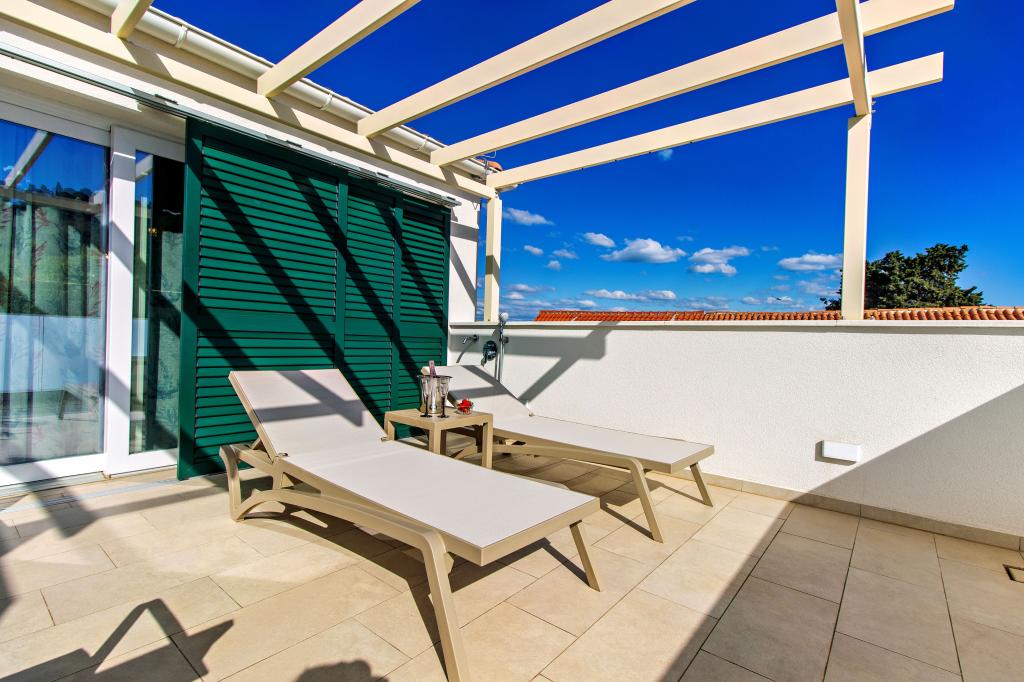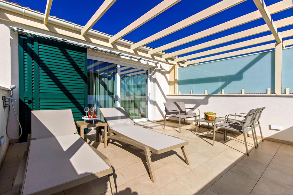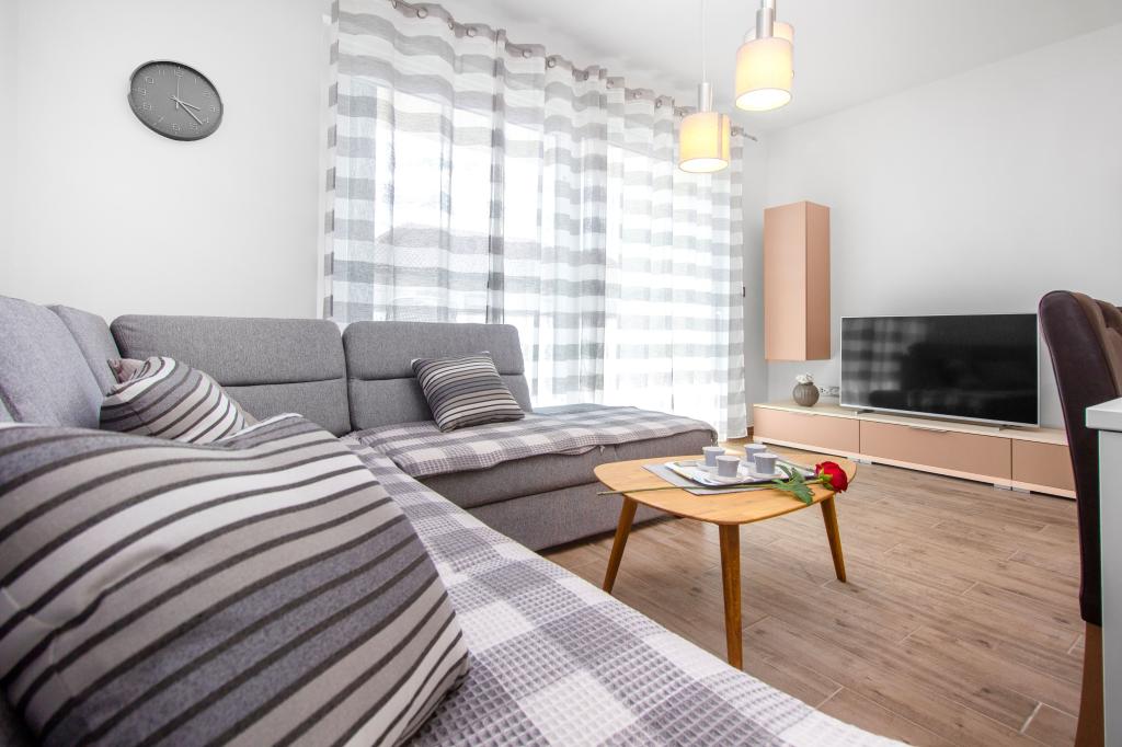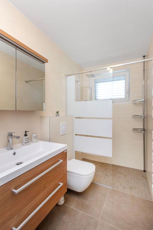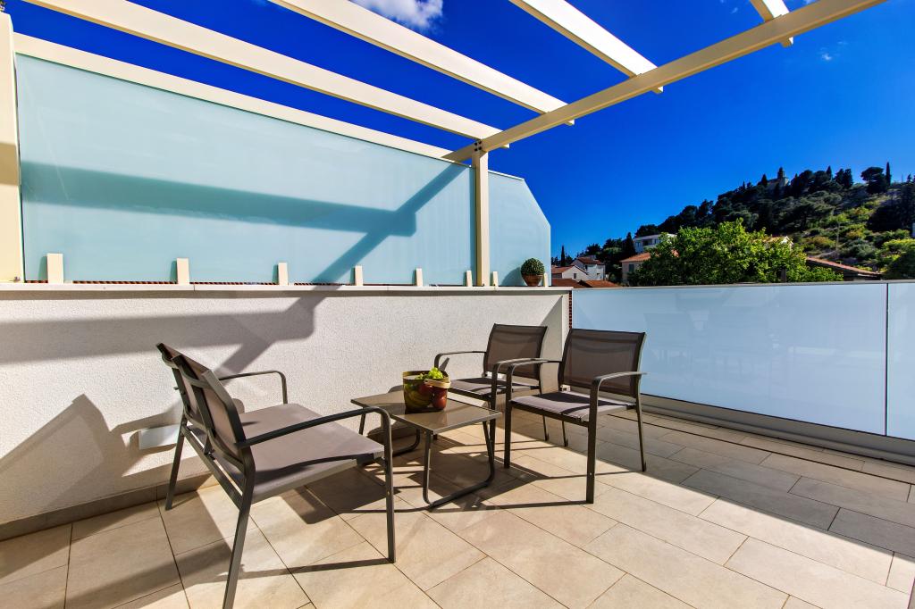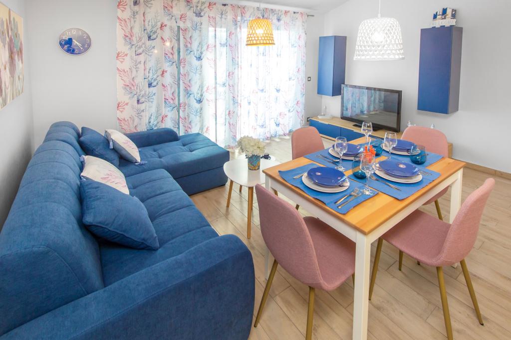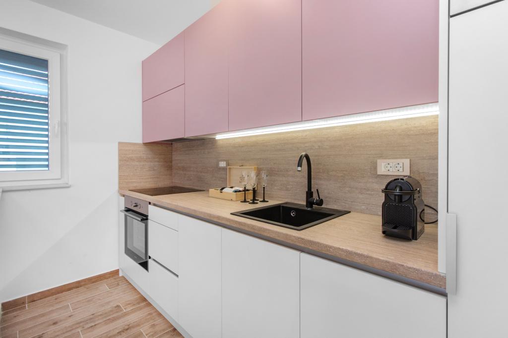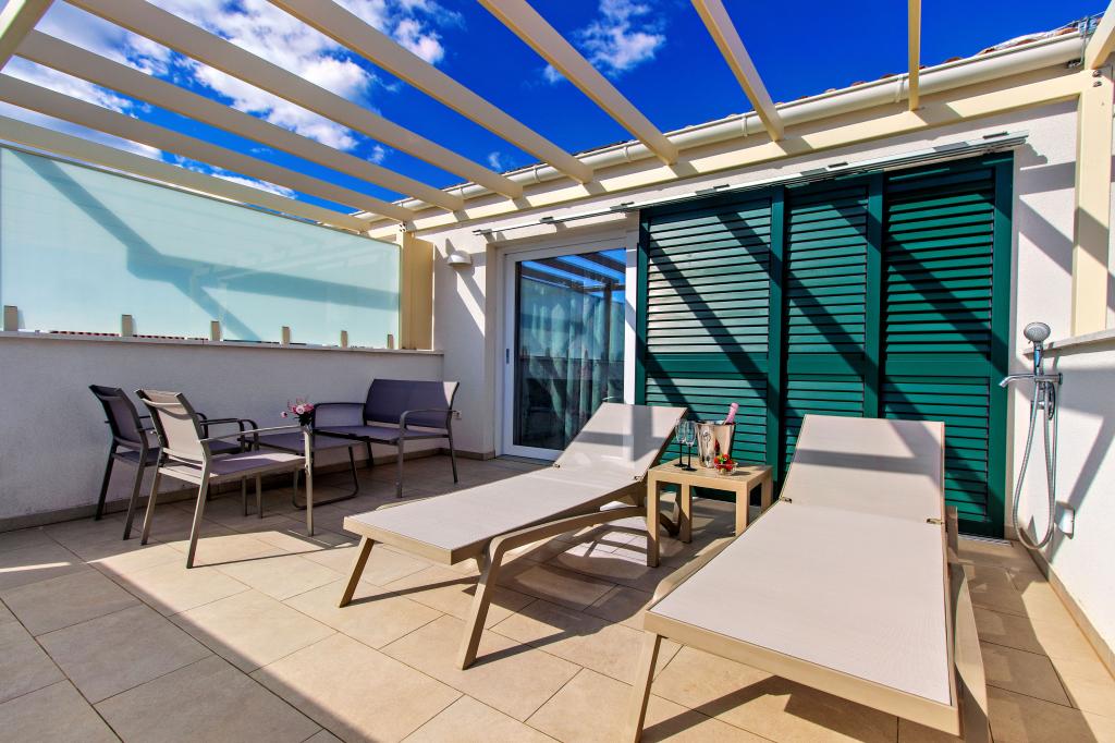 Three Olives-anlægget er en ny bygning og åbner dørene for gæster for første gang fra sommeren 2024. I gården af bygningen er der tre gamle oliventræer, træ så typisk for den kroatiske kyst og øer, fra hvis frugter den bedste kvalitet olie er opnået, ofte kaldet "flydende guld". Navnet Three Olives antyder et miljø med fred, ro og overflod. Lejlighederne i anlægget er unikke, moderne og fuldt funktionelt udstyret til at få dig til at føle dig godt tilpas, ligesom i dit eget hjem! Anlægget er fremragende placeret; det ligger 150 m fra havet og 200 m fra byens centrum. Der er ingen større veje eller forretningsfaciliteter i umiddelbar nærhed, så gæsterne er sikret fred i løbet af dagen og natten. Kort sagt, alt er klar til din komplette ferie.