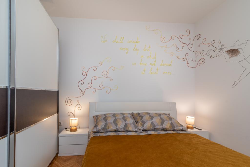 Den nyrenoverede lejlighed Anđela til 5 personer ligger i Saldun-bugten på øen Čiovo, forbundet med to broer. Lejligheden består af 2 soveværelser, to badeværelser, et køkken, en stue og en balkon med en smuk udsigt over havet. Det ligger 900 m eller 10 minutters gang fra centrum af Trogirs gamle bydel, som er beskyttet af UNESCO, 7 km fra Split Lufthavn og 1,5 km fra Trogirs busstation.