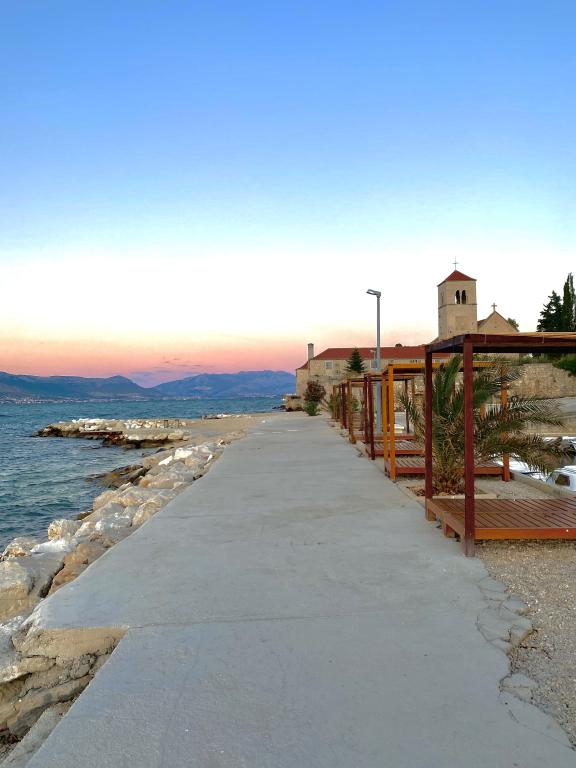 Apartment Bubble er beliggende i Mastrinca - Trogir (øen Čiovo) i en lille bygning, kun 5 minutters gang fra havet (op ad bakke på 250 m) og stranden, hvor du kan finde masser af skygge. Stranden har også en masse faciliteter (caféer, gummibåde i havet osv.). Lejligheden består af soveværelse, badeværelse, stue og køkken samt en privat, lille indhegnet have (30 kvadratmeter), som du vil nyde dagen igennem og på hyggelige sommernætter. Lejligheden har aircondition og fuldt udstyret med alle de nødvendige enheder (kaffemaskine, kedel, brødrister...), inklusive et indbygget vandfilter. Gæsten har en sikret parkeringsplads lige foran indgangen til bygningen. Ubegrænset internet, smart-tv. Transportabel barneseng efter anmodning. Husdyr tilladt (ekstra gebyr)