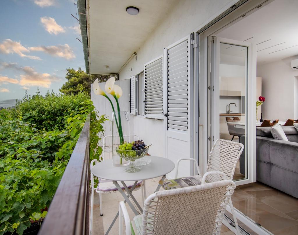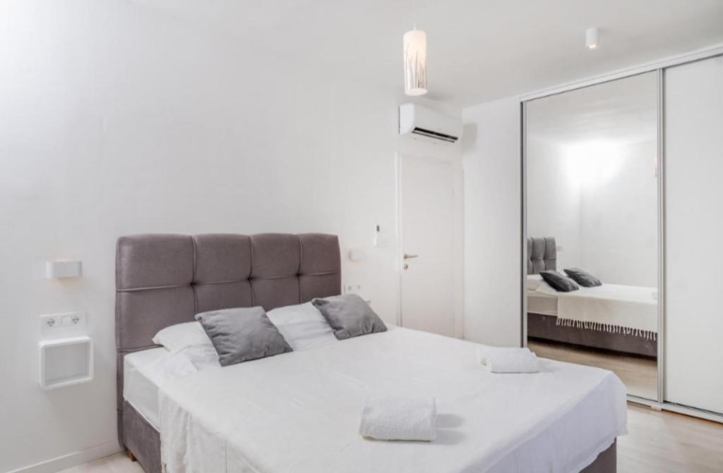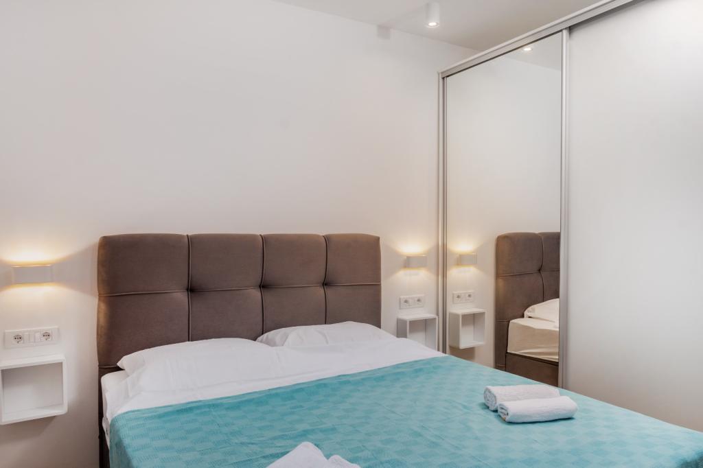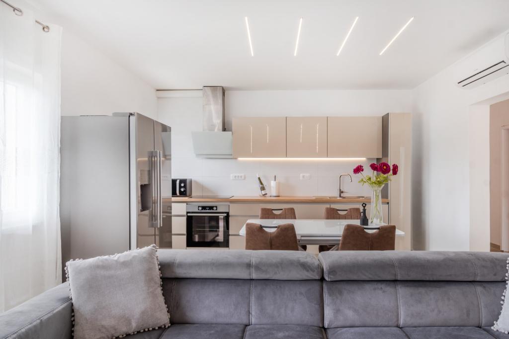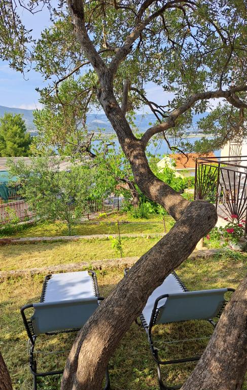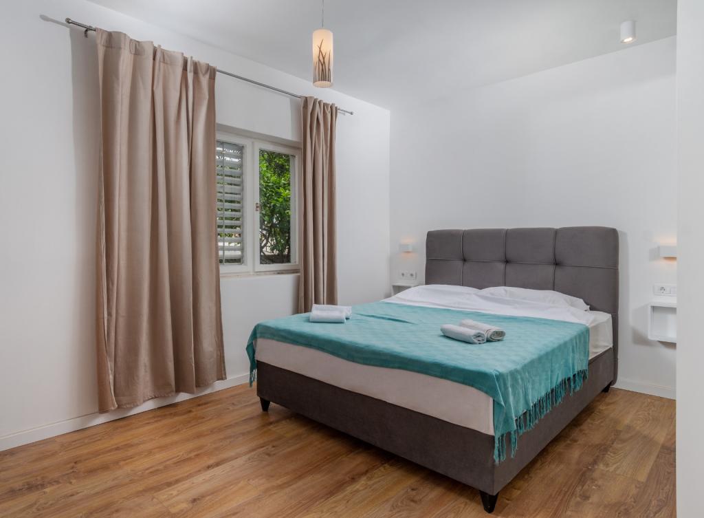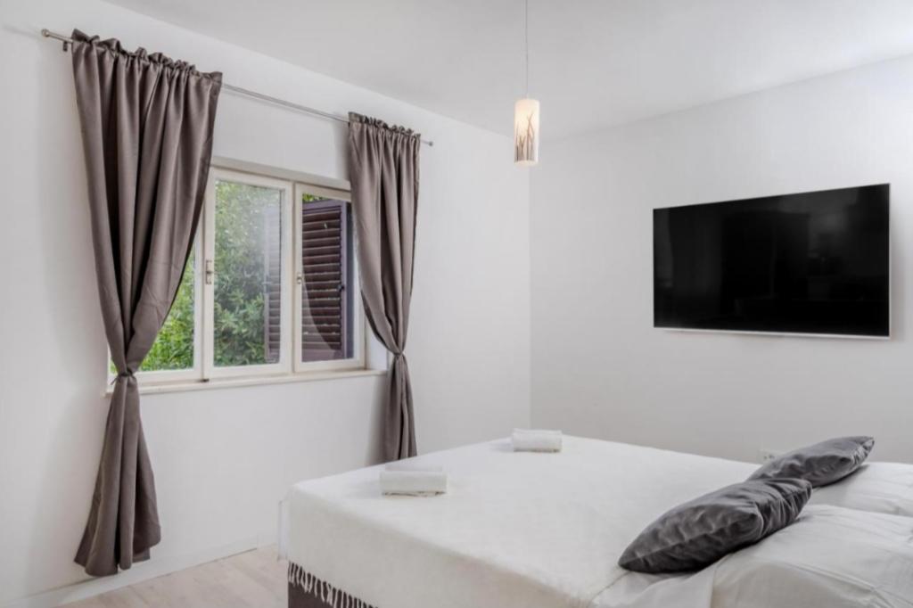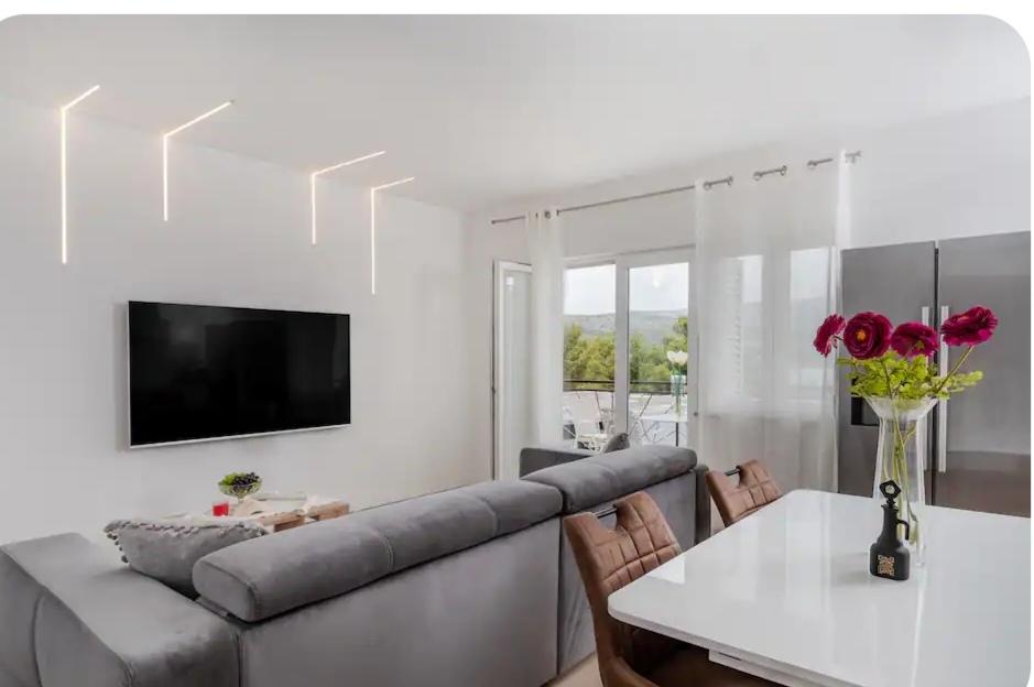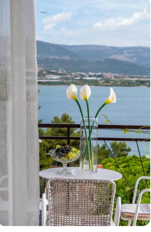 Meget luksuriøs lejlighed 1 minut fra havet. Hele lejligheden er udstyret med den nyeste højsansteknologi, hvor hvert værelse har sit eget klimaanlæg, stort videovæg-tv, og hvert værelse har et separat en-suite toilet, så hver gæst har sit eget privatliv. Køkkenet er udstyret med nye højsans hvidevarer med opvaskemaskine, mikroovn, kaffemaskine, køleskab med ismaskine. Lejligheden har en smuk have og en terrasse med udsigt over havet og ligger 5 minutters kørsel fra Split lufthavn. Der er en skøn sandstrand 10 m fra lejligheden. Det har en fremragende beliggenhed, kun 2 minutter fra centrum af Trogir og 20 minutters kørsel fra centrum af Split. Ikke langt fra lejligheden ligger en taxabåd, der tager gæsterne til centrum af Split og til søs.