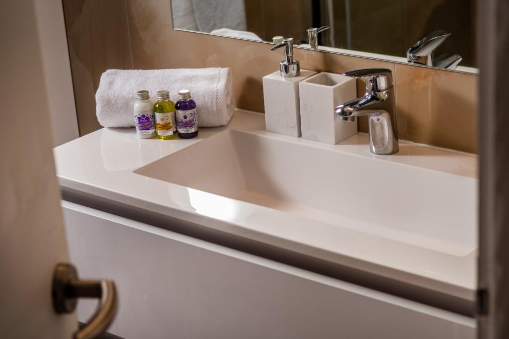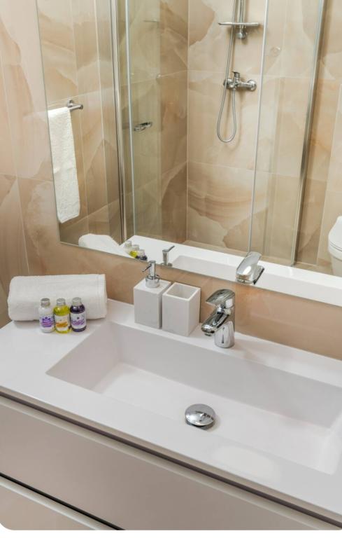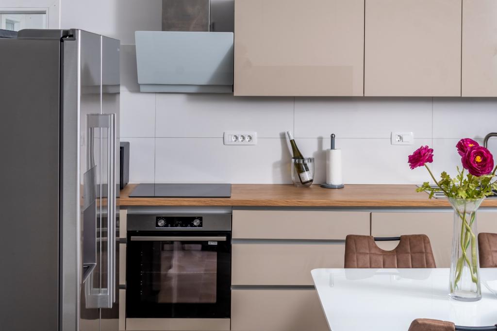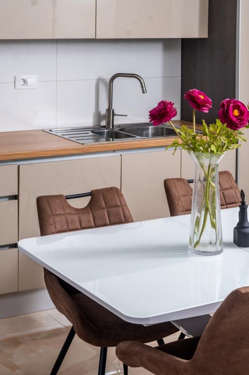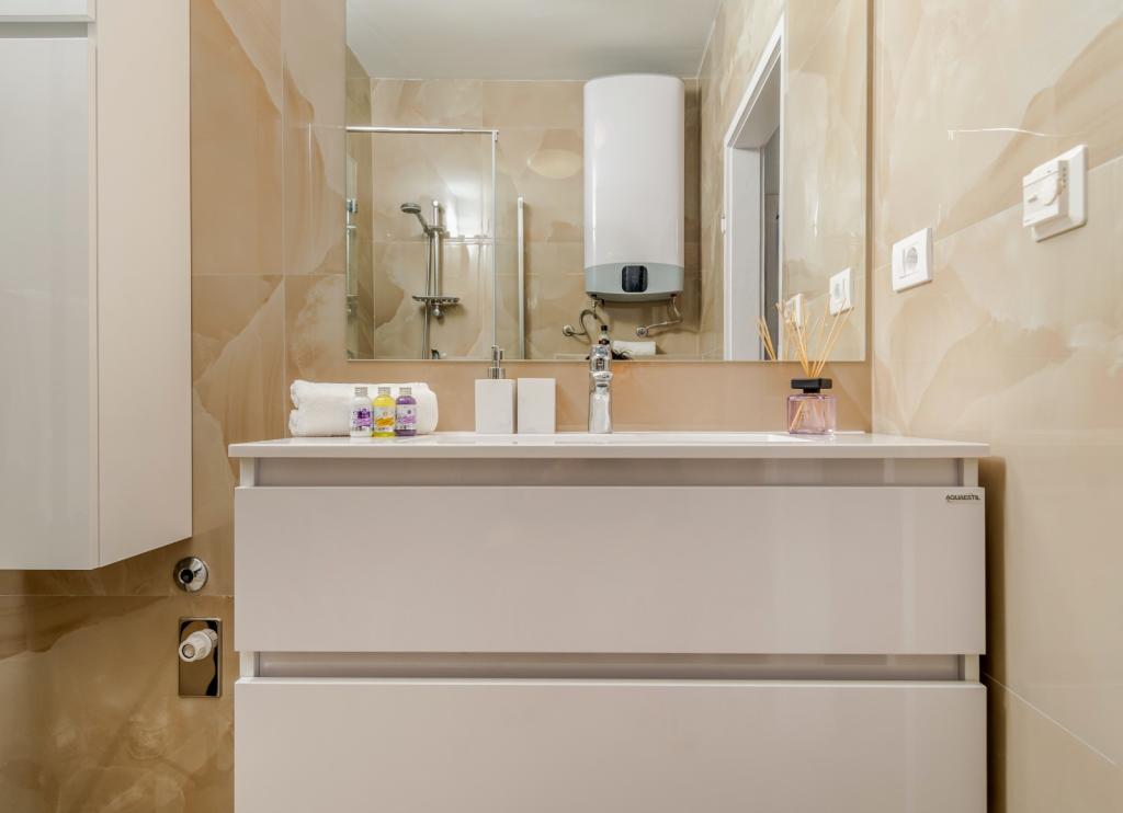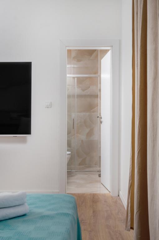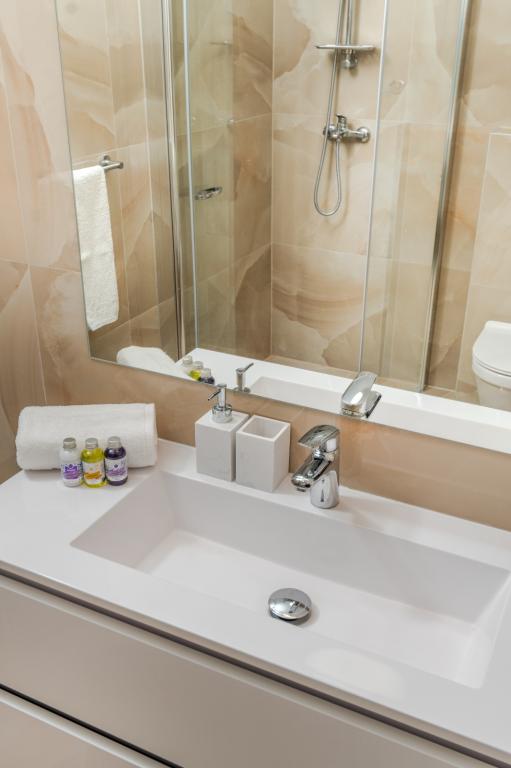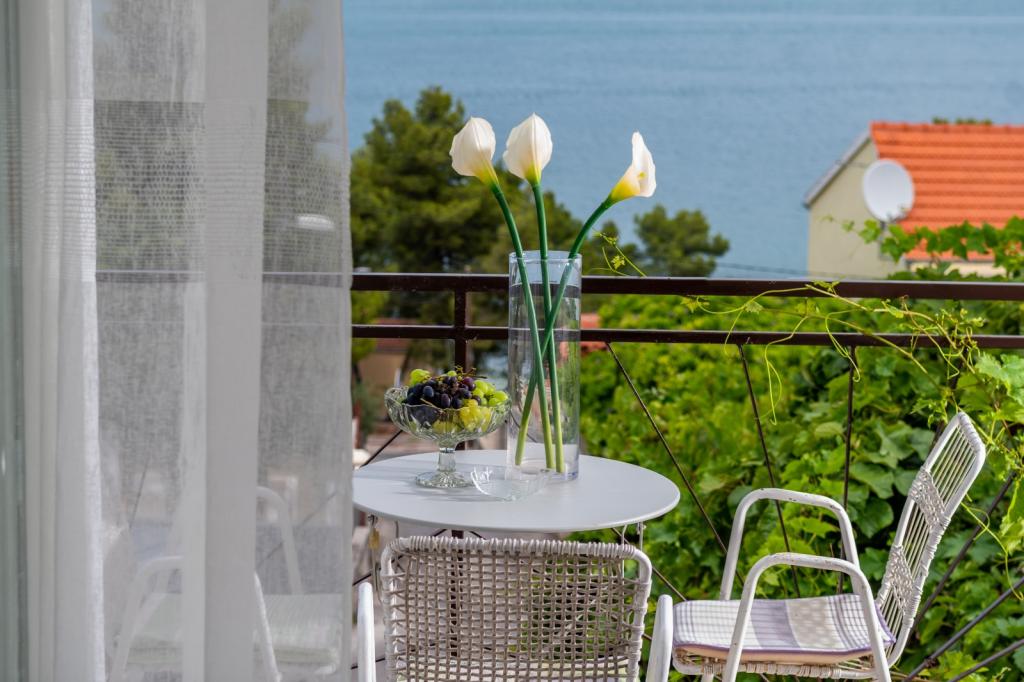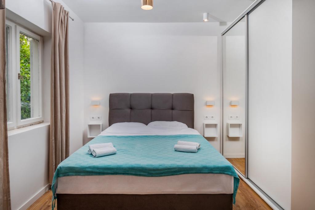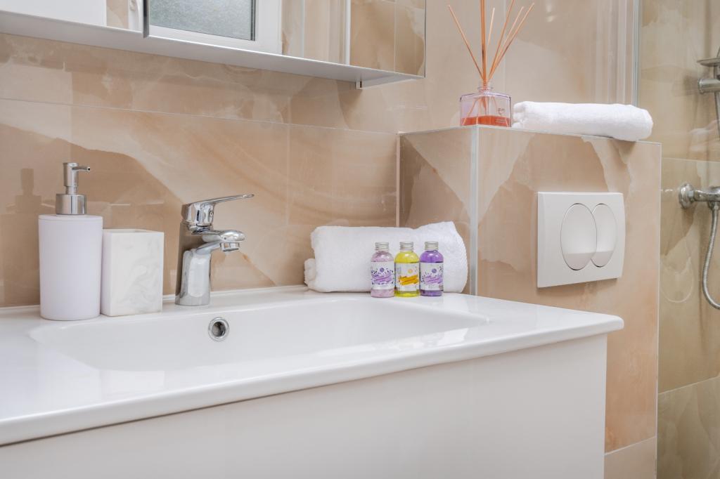 Meget luksuriøs lejlighed 1 minut fra havet. Hele lejligheden er udstyret med den nyeste højsansteknologi, hvor hvert værelse har sit eget klimaanlæg, stort videovæg-tv, og hvert værelse har et separat en-suite toilet, så hver gæst har sit eget privatliv. Køkkenet er udstyret med nye højsans hvidevarer med opvaskemaskine, mikroovn, kaffemaskine, køleskab med ismaskine. Lejligheden har en smuk have og en terrasse med udsigt over havet og ligger 5 minutters kørsel fra Split lufthavn. Der er en skøn sandstrand 10 m fra lejligheden. Det har en fremragende beliggenhed, kun 2 minutter fra centrum af Trogir og 20 minutters kørsel fra centrum af Split. Ikke langt fra lejligheden ligger en taxabåd, der tager gæsterne til centrum af Split og til søs.