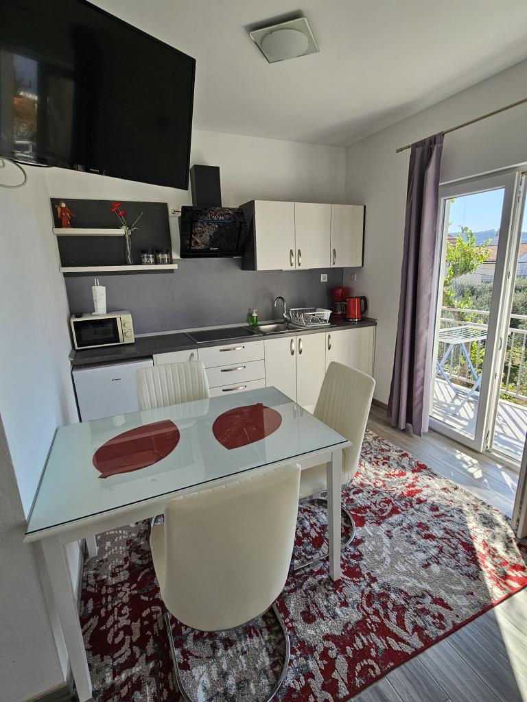 Apartments Grgić er beliggende i en rolig beliggenhed omgivet af grønne områder og familiehuse, 400 m fra centrum af Trogir, en by under beskyttelse af UNESCO. En have med grill, gratis trådløs internetadgang og en parkeringsplads er til gæsternes rådighed på anlægget. Lejlighederne har aircondition, opholdsområde og fuldt udstyret køkken med spisestue. Det private badeværelse har bruser, og nogle lejligheder har også balkon. Pebble Beach ligger 700 m fra ejendommen. En restaurant, der serverer traditionelle retter, ligger 400 m derfra, og den nærmeste købmand ligger 200 m derfra. Hovedbusstationen ligger 250 m fra lejligheden, og færgehavnen ligger 350 m væk. Togstationen ligger 5 km væk, mens lufthavnen kun ligger 2 km fra bygningen.