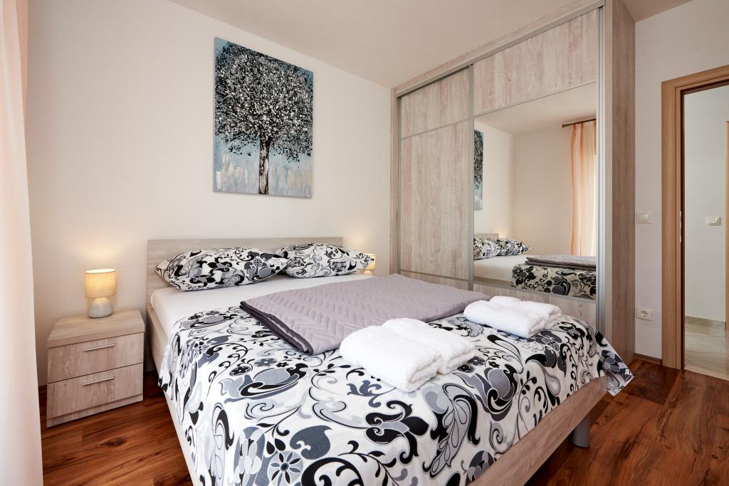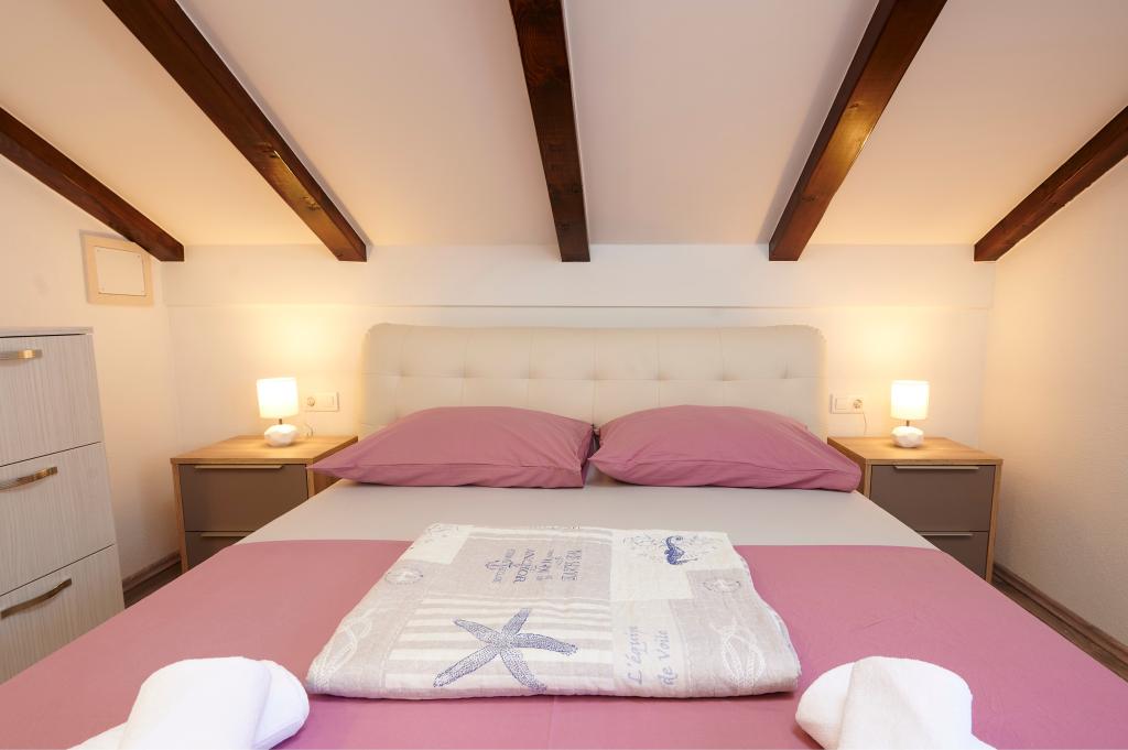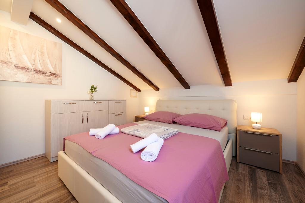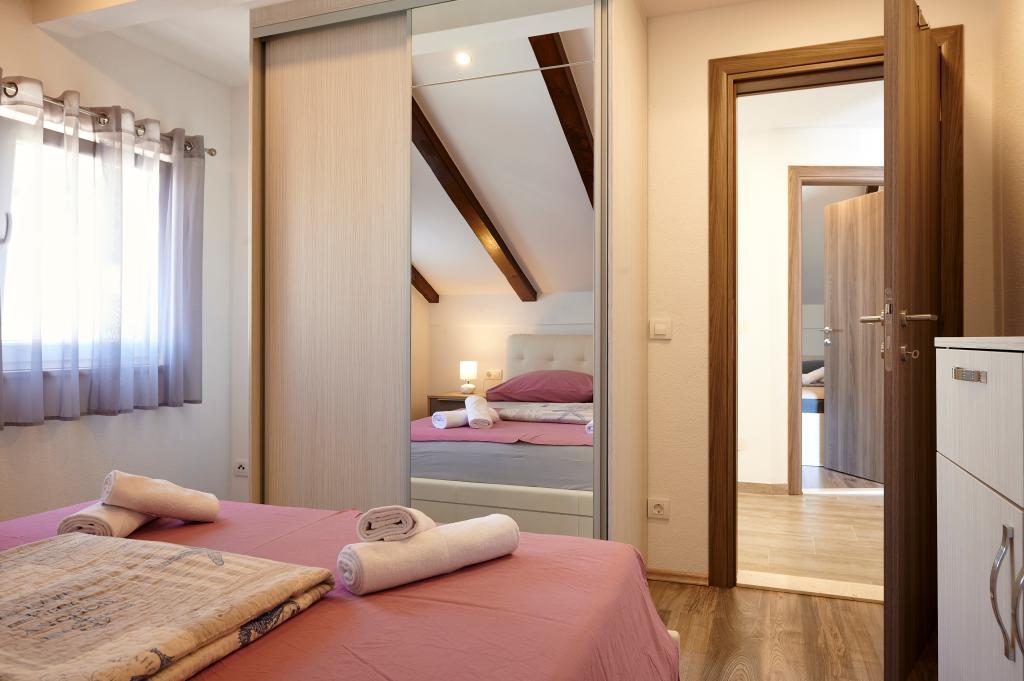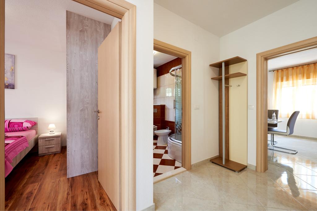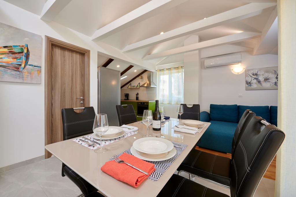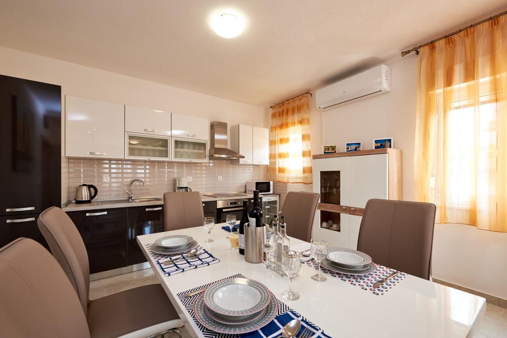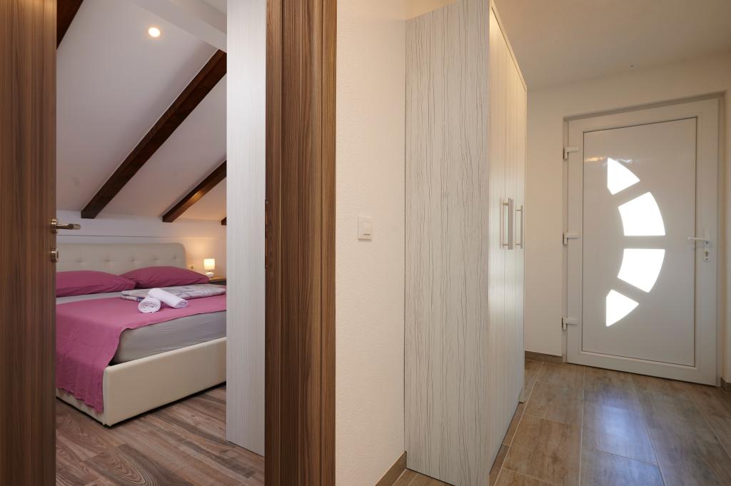 Lejlighederne Magdalena er komfortable og veludstyrede. De ligger på øen Čiovo, kun 1,3 km fra centrum af Trogirs gamle bydel. De har en smuk udsigt over havet og det omkringliggende område. Lejlighederne ligger i et roligt kvarter, kun 250 m fra den nærmeste strand. Restauranter, et supermarked, en hæveautomat, en busstation og en bådrute til centrum ligger inden for 400 m fra lejligheden. Lejligheden nås via en vej, der fører op ad en bakke. Udstyret inkluderer aircondition, gratis parkering, WiFi, et fuldt udstyret køkken, kabel-tv, en vaskemaskine, en opvaskemaskine... Lejlighederne er på 75 og 85 kvadratmeter plus udendørs terrasser med komfortable lænestole og ægformede hængegynger. Lejlighed 1 ligger på første sal og har tre soveværelser, mens lejlighed 2 ligger på anden sal og har to soveværelser og to toiletter. Alt er pænt indrettet, rent og pænt. Lejlighederne ligger 5 minutters gang fra stranden og 15 minutters gang fra Trogirs centrum. Den nærliggende strand er afgangsstedet for bådlinjen, der sejler til byens centrum, turen tager 10 minutter.