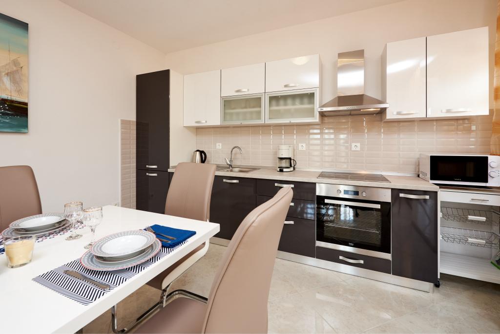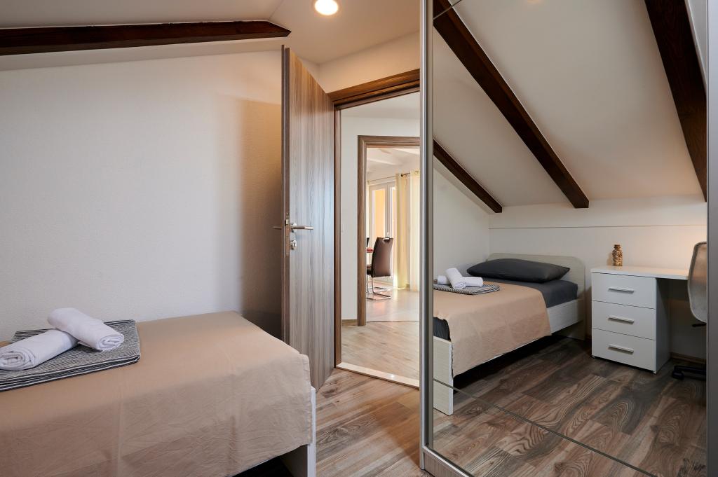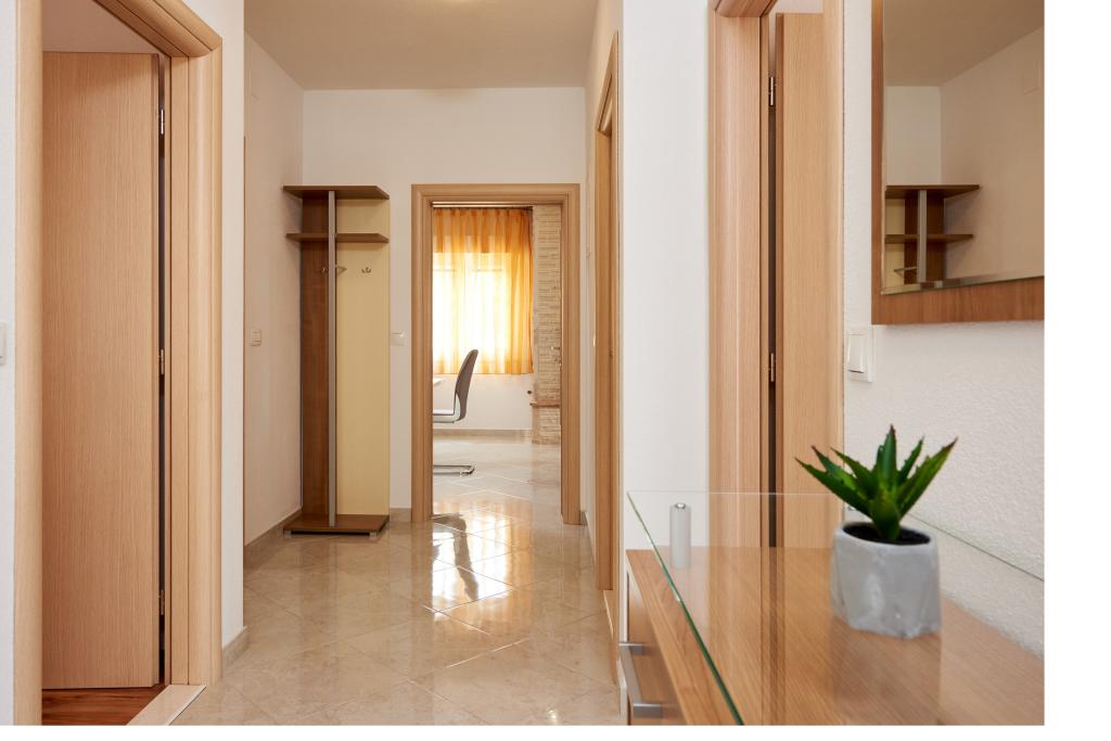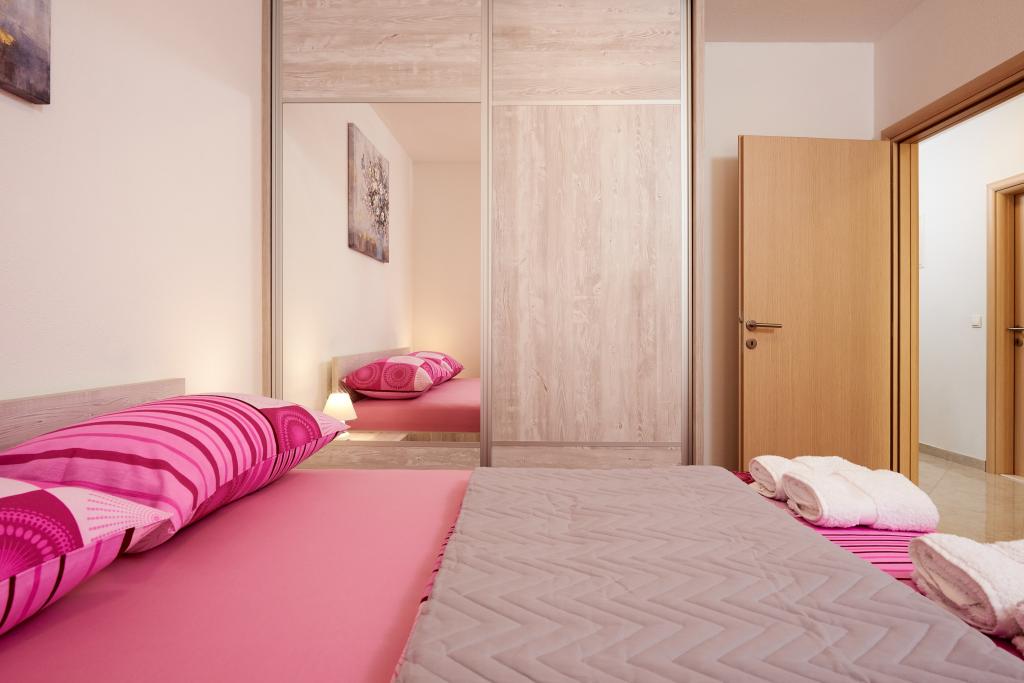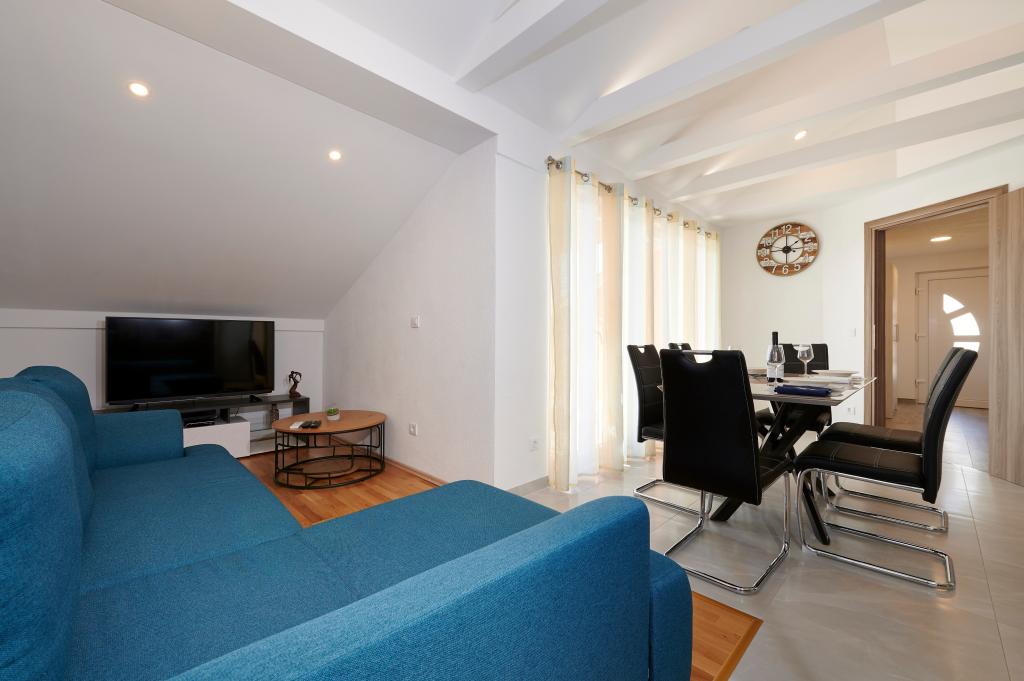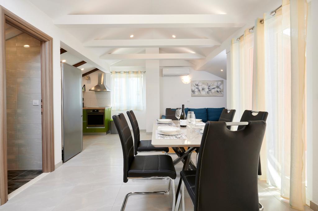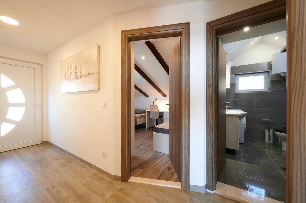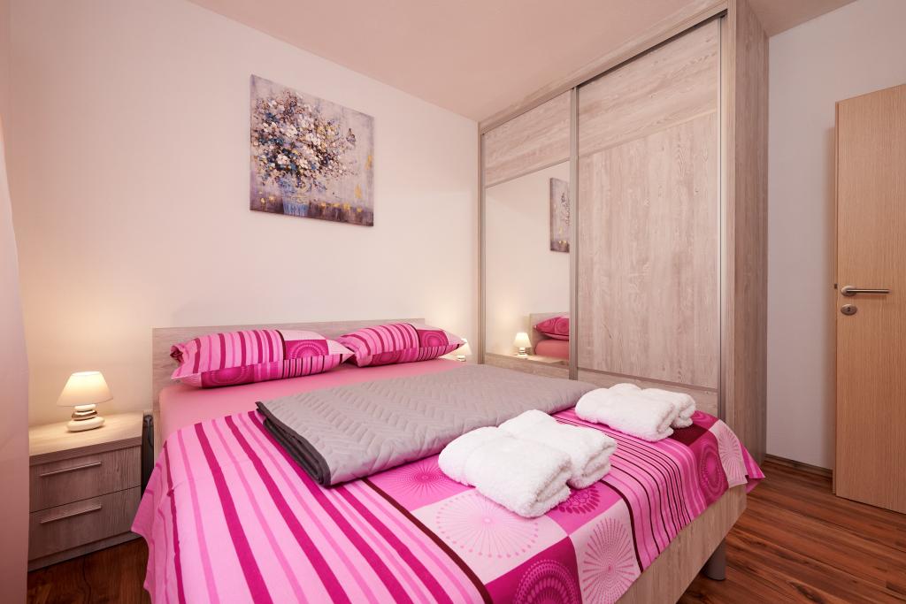 Lejlighederne Magdalena er komfortable og veludstyrede. De ligger på øen Čiovo, kun 1,3 km fra centrum af Trogirs gamle bydel. De har en smuk udsigt over havet og det omkringliggende område. Lejlighederne ligger i et roligt kvarter, kun 250 m fra den nærmeste strand. Restauranter, et supermarked, en hæveautomat, en busstation og en bådrute til centrum ligger inden for 400 m fra lejligheden. Lejligheden nås via en vej, der fører op ad en bakke. Udstyret inkluderer aircondition, gratis parkering, WiFi, et fuldt udstyret køkken, kabel-tv, en vaskemaskine, en opvaskemaskine... Lejlighederne er på 75 og 85 kvadratmeter plus udendørs terrasser med komfortable lænestole og ægformede hængegynger. Lejlighed 1 ligger på første sal og har tre soveværelser, mens lejlighed 2 ligger på anden sal og har to soveværelser og to toiletter. Alt er pænt indrettet, rent og pænt. Lejlighederne ligger 5 minutters gang fra stranden og 15 minutters gang fra Trogirs centrum. Den nærliggende strand er afgangsstedet for bådlinjen, der sejler til byens centrum, turen tager 10 minutter.