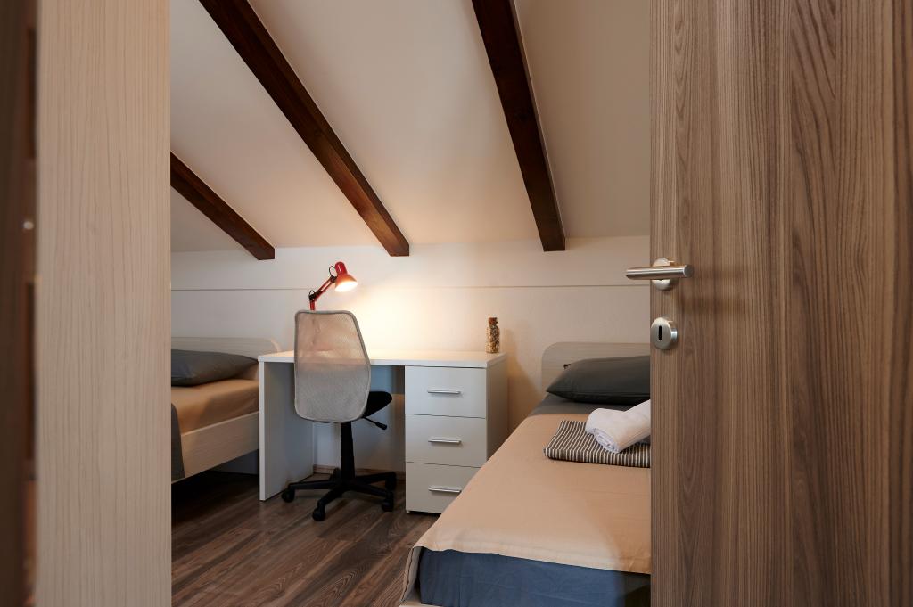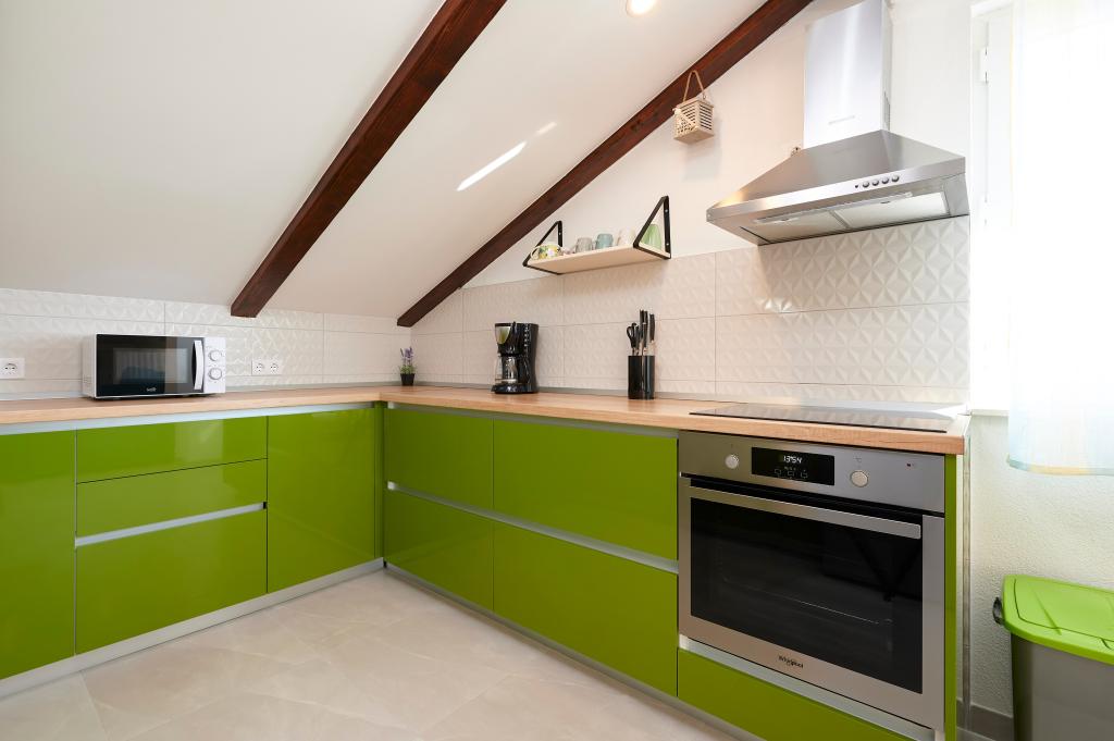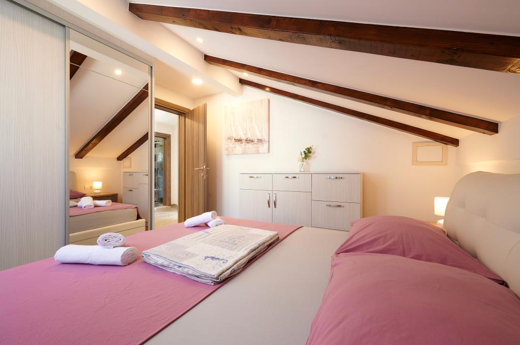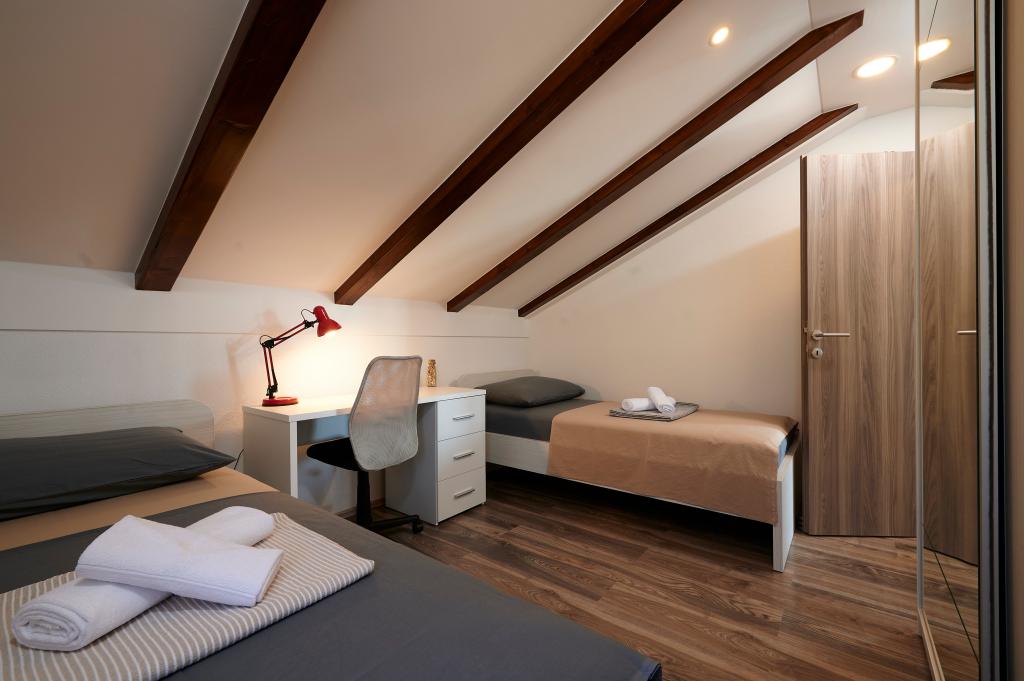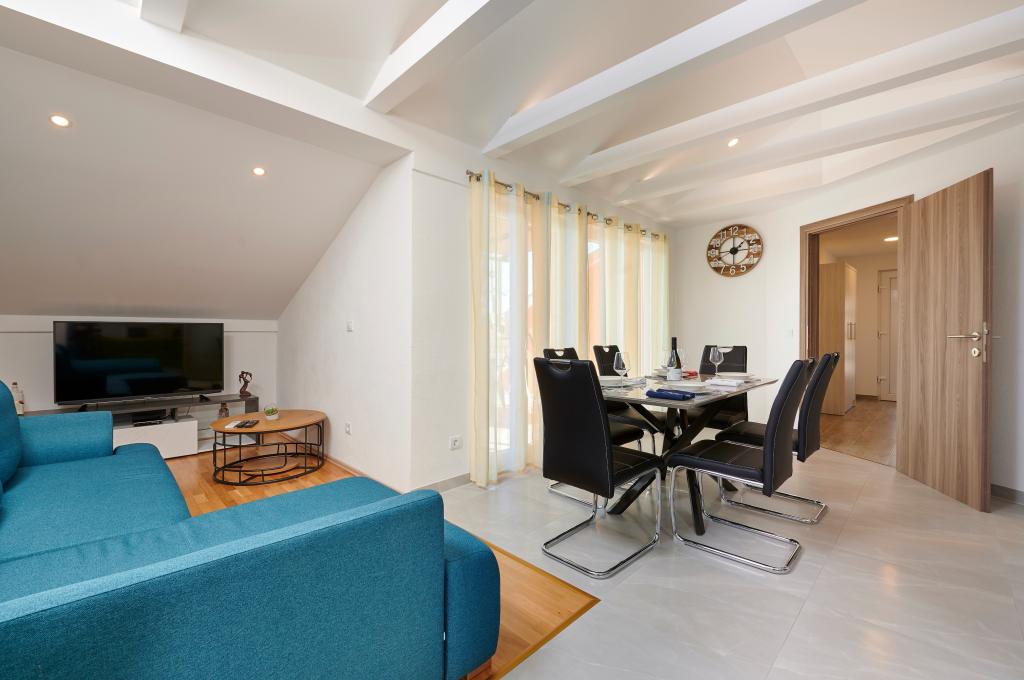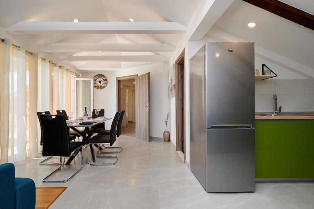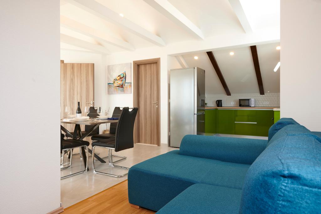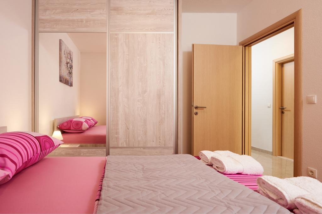 Lejlighederne Magdalena er komfortable og veludstyrede. De ligger på øen Čiovo, kun 1,3 km fra centrum af Trogirs gamle bydel. De har en smuk udsigt over havet og det omkringliggende område. Lejlighederne ligger i et roligt kvarter, kun 250 m fra den nærmeste strand. Restauranter, et supermarked, en hæveautomat, en busstation og en bådrute til centrum ligger inden for 400 m fra lejligheden. Lejligheden nås via en vej, der fører op ad en bakke. Udstyret inkluderer aircondition, gratis parkering, WiFi, et fuldt udstyret køkken, kabel-tv, en vaskemaskine, en opvaskemaskine... Lejlighederne er på 75 og 85 kvadratmeter plus udendørs terrasser med komfortable lænestole og ægformede hængegynger. Lejlighed 1 ligger på første sal og har tre soveværelser, mens lejlighed 2 ligger på anden sal og har to soveværelser og to toiletter. Alt er pænt indrettet, rent og pænt. Lejlighederne ligger 5 minutters gang fra stranden og 15 minutters gang fra Trogirs centrum. Den nærliggende strand er afgangsstedet for bådlinjen, der sejler til byens centrum, turen tager 10 minutter.