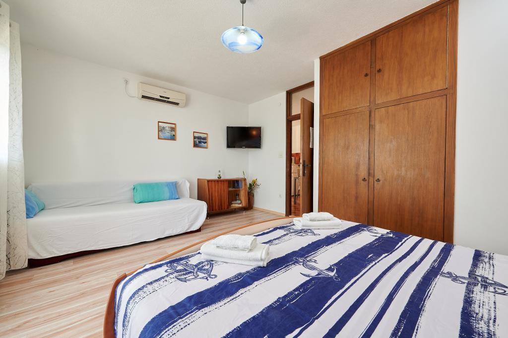A2 + 1, A4 Lejlighederne er godt udstyret og alt i dem. Terrassen har en vidunderlig udsigt. Det har sin egen parkeringsplads. Du kan også grille i gården. Området er roligt og fredeligt. Stranden er meget tæt og ikke overfyldt. Da øen har altid stikket er ikke værdig til at sidde i bilen. Den gamle bydel ligger kun 5 minutters gang derfra. Ejeren er meget rart og hjælpsomme.