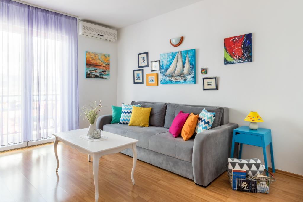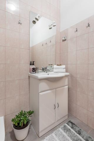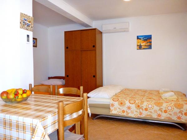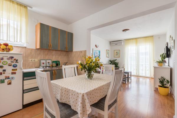 Studielejligheden er pænt møbleret, vi blev mødt af pæn og ren. Ulempen er, hvem der kommer med et lille barn, så snart du forlader lejligheden, er vejen, og terrassen er ovenpå. Vi brugte ikke engang terrassen, fordi du ikke har dit privatliv. Stedet er meget rart, centrum af Trogir er tæt, du kan gå (ca. 2 km væk fra lejligheden). De første par dage blev vi generet af støj fra flyet, indtil vi blev vant til det, fordi Split lufthavnen er i nærheden. Stranden er virkelig tæt, du kan vælge mellem beton til sten. Med hensyn til indkvartering viste værterne sig ikke godt, de opkrævede os for indkvartering af et to år gammelt barn. Vær forsigtig, når du forhandler, og med hvem du forhandler prisen.