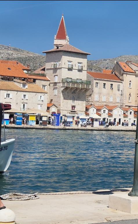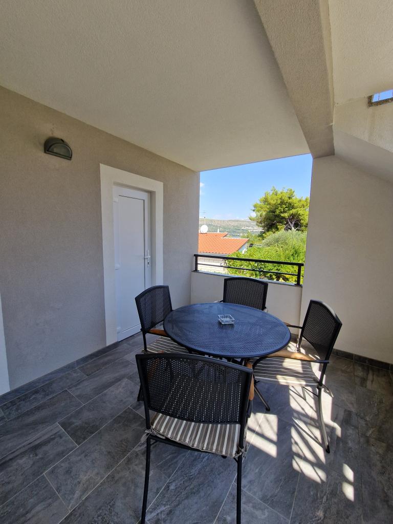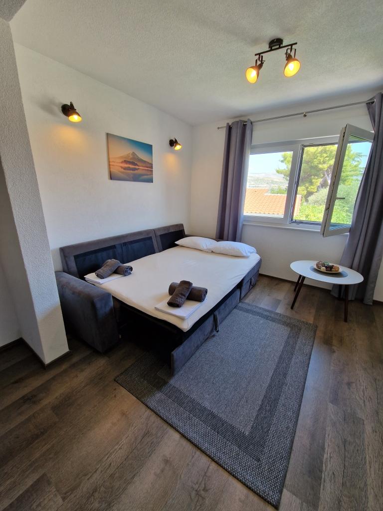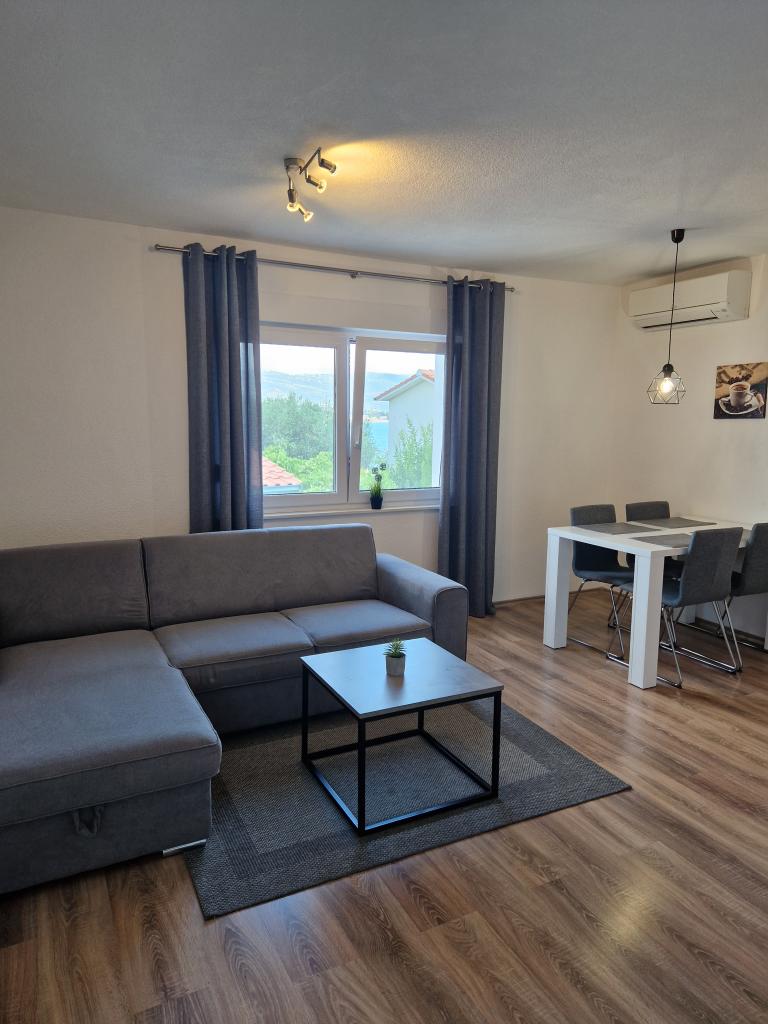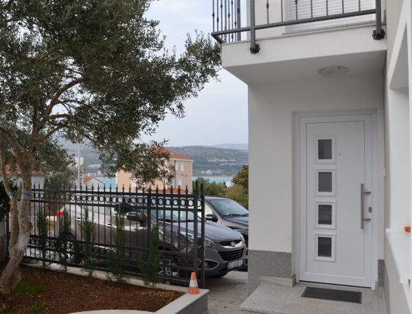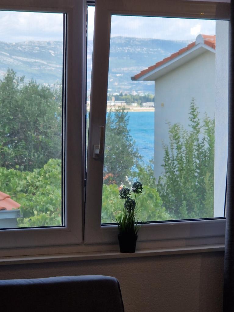 Stærkt anbefalet. Lejlighederne er nye, meget smagfuldt møblerede, aircondition, skodder, myggenet, parkering ... Stranden ligger 5 minutter til fods. Til Trogir 15-20 minutter til fods. Hun tager også en lille båd til centrum af Trogir. Handle 2 min. Alt er smukt og meget rent. Værterne er meget venlige og hjælpsomme. Det ligger i et dejligt roligt sted med udsigt over havet. Stærkt anbefalet. Tak.