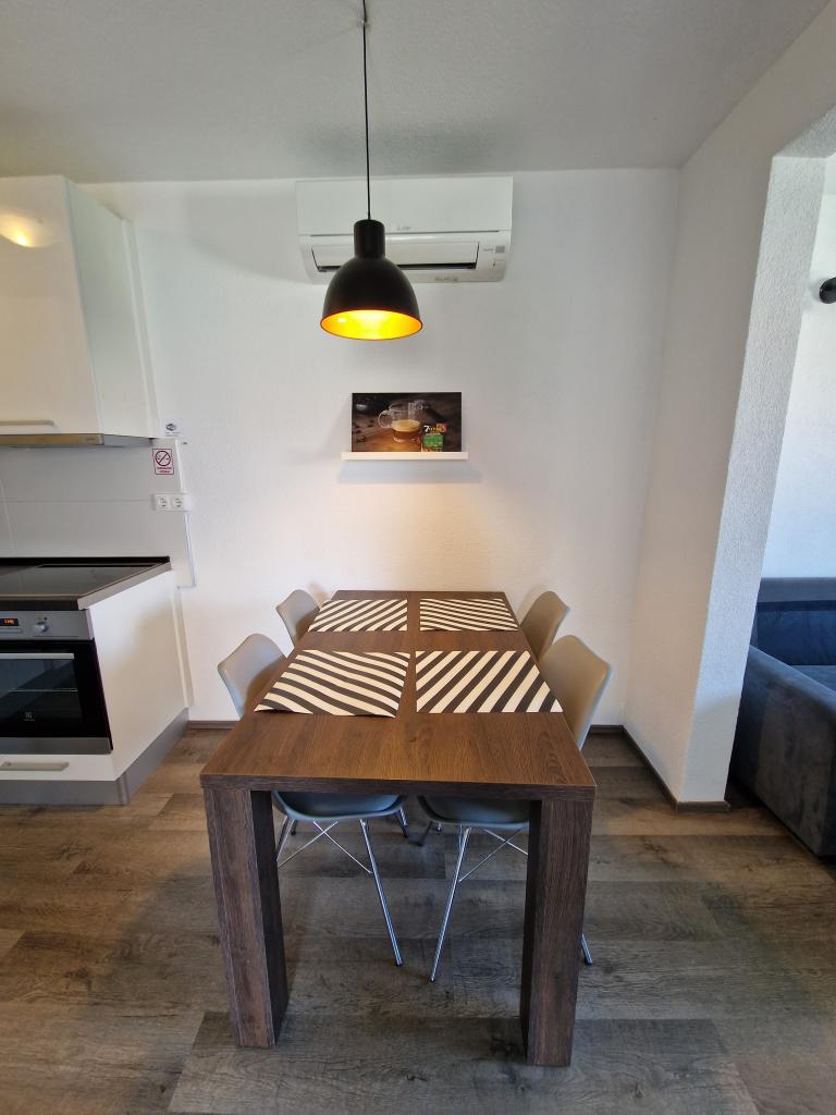 Lejligheden er ny og moderne udstyret, ren, har en opvaskemaskine og vaskemaskine. Vores lejlighed havde en meget flot terrasse. De er beliggende i en rolig beliggenhed nær sandstranden. Værterne er meget venlige og hjælpsomme. Vi anbefaler stærkt. Det var første, men ikke sidste ophold i denne lejlighed.
