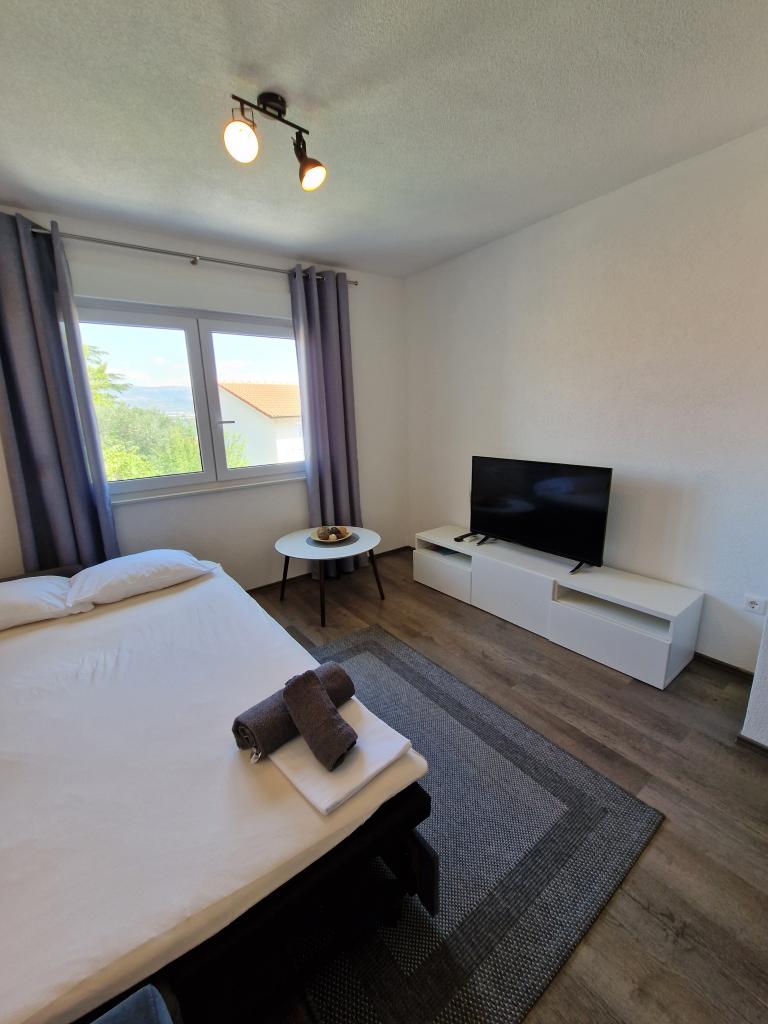 De nybyggede lejligheder Tony ligger på øen Ciovo i Mastrinka, kun 2 km fra Trogir, som er under UNESCO-beskyttelse. Den imponerende St. Lovre med den berømte Radovan-portal, bymuseet, Kamerlengo-tårnet og mange andre seværdigheder ligger i den gamle del af Trogir. Split lufthavn ligger 6 km væk, og byen Split ligger ca. 20 km væk. Den nærmeste strand til denne indkvartering er rullesten og ligger i en afstand af 100 m. Supermarked og Bistro ligger i umiddelbar nærhed af 30 m. Lejlighederne indeholder et soveværelse, badeværelse, stue med ekstra seng og fuldt udstyret køkken (køkkenredskaber, opvaskemaskine, mikroovn, køleskab med fryser, ovn, kedel, kaffemaskine), pengeskab. Aircondition, satellit-tv, Wi-Fi, parkering og turistafgift er inkluderet i prisen. Ankomst fra 15.00, afgang indtil 10.00.