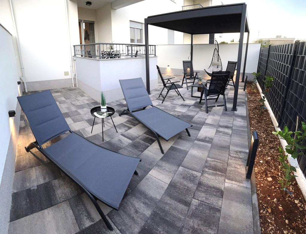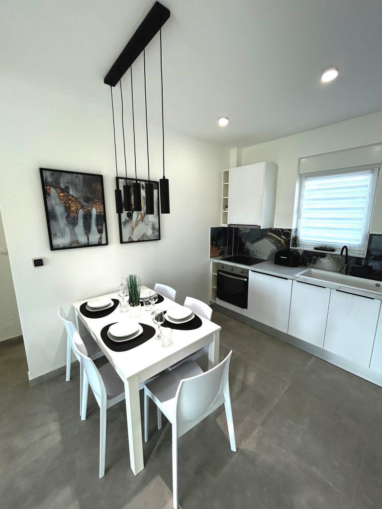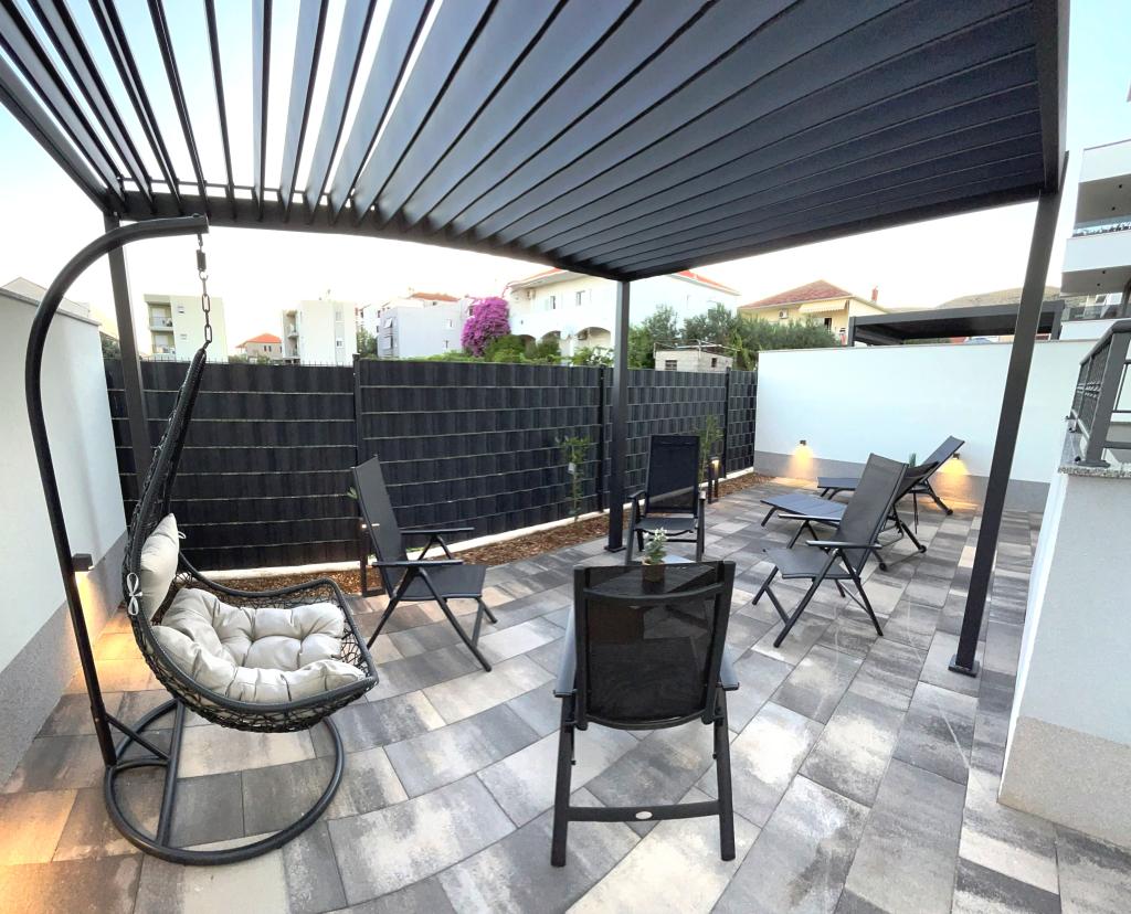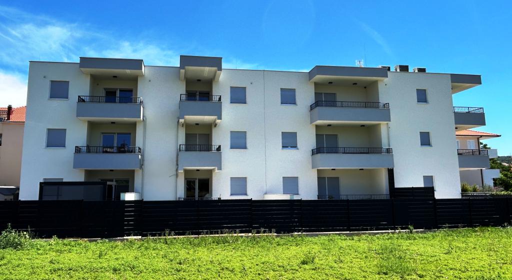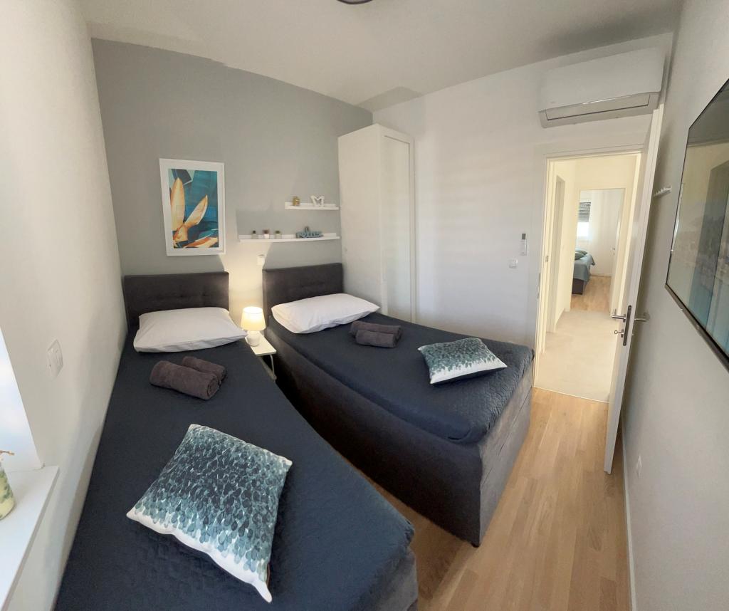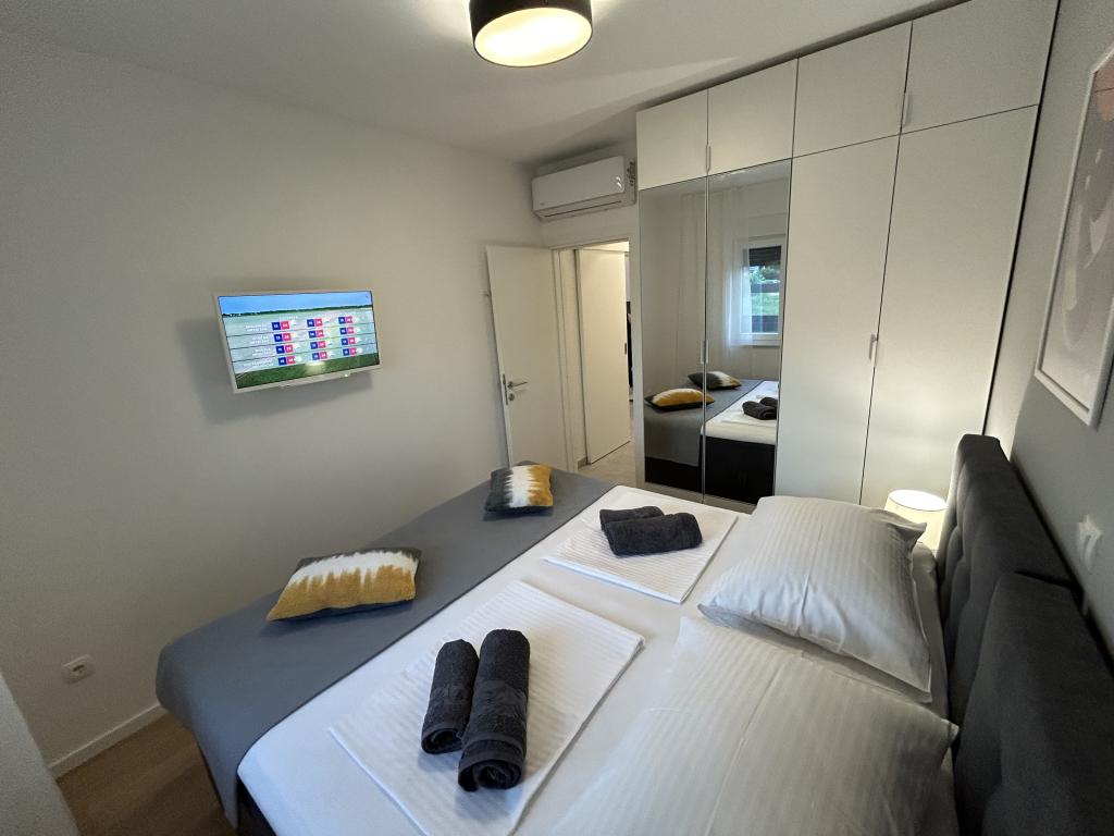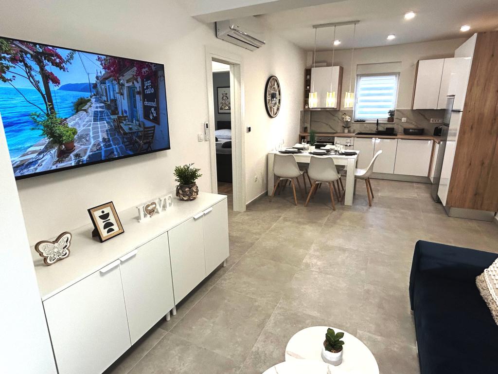 Town Trogir Apartments ligger på fastlandet i Trogir med en førsteklasses beliggenhed, kun 400 m fra den gamle bymidte og 1000 m fra den nye bystrand. Stranden kan nås via en promenade langs havet. Alle de vigtigste faciliteter er inden for gåafstand, 5 til 10 minutters gang. Town Trogir Apartments er nye og ligger i en lille boligbygning med 6 lejligheder. Lejlighederne har et areal på cirka 60 m2. Lejlighederne er placeret i stueetagen, 1. sal og 2. sal. Lejlighederne er moderne indrettede og fuldt udstyrede. Lejlighederne har 2 soveværelser, en stue med spisestue, et fuldt udstyret køkken, et badeværelse og store terrasser med havemøbler i stueetagen. Stuen og soveværelserne har separate køleenheder. Der er gratis parkering foran bygningen. Sengelinned og håndklæder er inkluderet. WiFi er gratis. Turistskat er inkluderet i prisen.