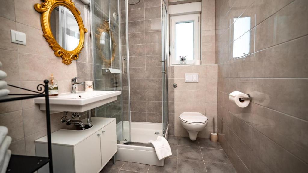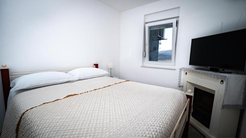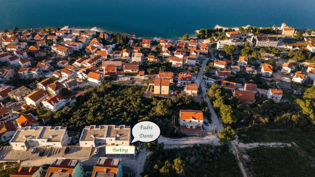 Objektet PADRE DANTE er nyindrettet med én lejlighed og værelser med badeværelse, alt nyt med inkluderet parkeringsplads under videoovervågning. Objektet ligger 150 m fra stranden, butik, restaurant (restauranten på Hotel Sv.križ åben fra 6-10 måneder), tandlæge, apotek, og Trogirs centrum ligger kun ca. 4 km fra objektet og ca. 6 km fra lufthavnen.