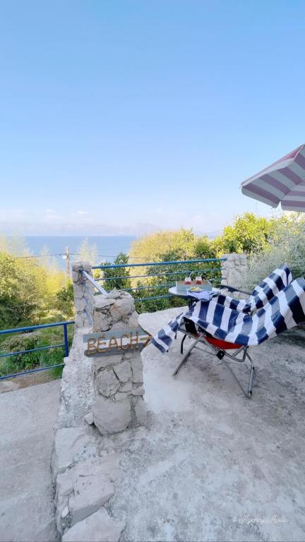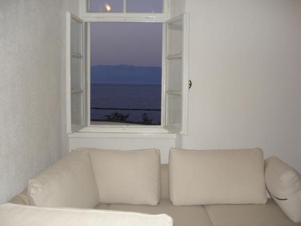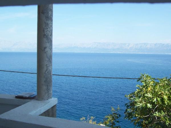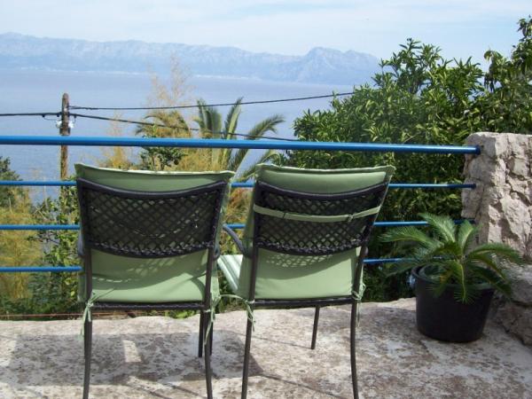 Nylig totalrenoveret lejlighed udstyret med aircondition, TV, udstyret køkken med ovn, køleskab, fryser, emhætte og alt andet nødvendigt for at tilberede måltider. Der er parkeringsplads under huset, og stranden ligger lige under den smalle vej. Byens stenstrand ligger 100 meter derfra. Lejligheden fører ud til en terrasse, der er forsænket, hvilket sikrer privatlivets fred for gæsterne og kun er beregnet til lejlighedens gæster. Terrassen byder på en smuk udsigt over havet. Prisen inkluderer turistskat, wi-fi, aircondition og parkering. .