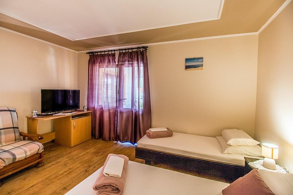 Jeg anbefaler helhjertet at bo her. Dette var vores tredje besøg i Kroatien, hvert år et nyt sted, men først i år følte jeg, at det var et sted, jeg ville vende tilbage til. Dette skyldes i høj grad værterne, som bød os så varmt velkommen, gav os nyttige råd og et smil hver dag. Vi blev gentagne gange overraskede over deres gæstfrihed og muligheden for at prøve deres produkter. rene værelser, komfortable senge. Købmand, bageri få skridt fra huset I starten, før vi fandt dette sted, insisterede mine venner på at have en pool i deres hus, hvilket jeg var skeptisk over for og undrede mig: "Hvorfor har jeg brug for en pool ved Adriaterhavet?" Men nu indser jeg, at det er en stor bekvemmelighed at køle af, svømme og ligge på en liggestol. Stranden er tæt på, hvor alle kan finde noget, de kan lide, hvor man kan sole sig eller gemme sig i skyggen. Selve byen er intim, uden folkemængder eller støj. Der er masser af steder at slentre og spise.