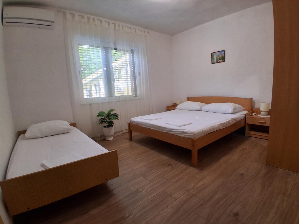 Lejlighed A1. - Beliggende i stueetagen. Den består af 3 soveværelser med private badeværelser, kapacitet på 6 plus 2 senge. Fuldt udstyret køkken. Terrasse med TV, grill. Lejligheden kan lejes som værelser med køkken brug. Lejlighed A2. - Beliggende på første sal. Den består af et soveværelse med tre senge, badeværelse, stue, køkken, TV. sofa med en seng 140x200cm. , Balkon, terrasse. Aircondition er ekstra opladet 5 € per dag. Grill er fælles på jorden. Lejlighed A3. - Beliggende på første sal. Den består af et soveværelse med tre senge, badeværelse, køkken, stue med TV og sovesofa med seng 140x200cm, balkon, terrasse. Aircondition er ekstra opladet 5 € per dag. Grill er fælles på jorden. Lejlighed A4. - Beliggende på anden sal. Det består af tre soveværelser, kapacitet 6 plus andet to badeværelser beliggende på gangen, køkken, tv, balkon, terrasse. Parkering. Beliggende 50 meter fra huset