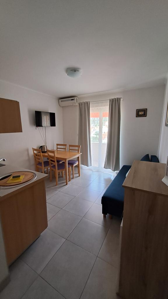 Helt ny og moderne indrettet lejlighed i Trpanj, beliggende første række til havet, på anden sal af huset. Anlægget er beliggende få skridt fra stranden og minutter fra centrum. Lejligheden består af et soveværelse, fuldt udstyret køkken i spisestuen og stuen, badeværelse og stor terrasse. Værelset indeholder en dobbeltseng og en ekstra seng, mens i stuen en sovesofa til op til to personer.