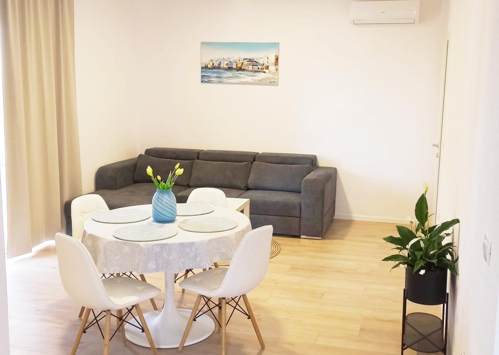 Fuldt og moderne udstyret lejlighed i et roligt område, beliggende 100 m fra havet; Ejendommen ligger 2 minutters gang fra stranden og 10 minutters gang fra centrum.