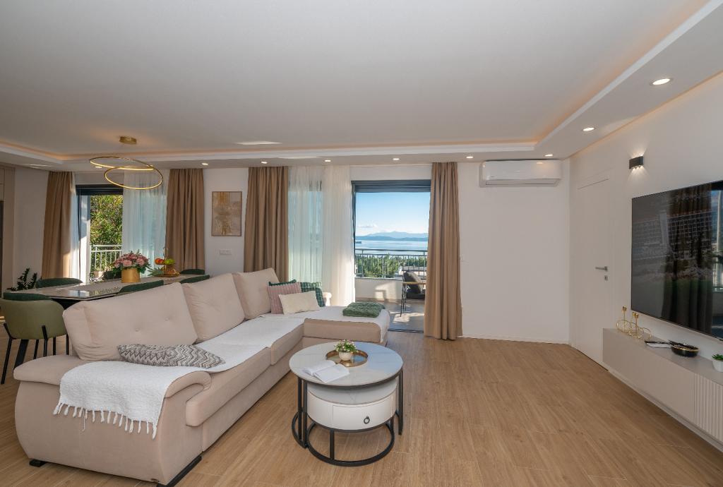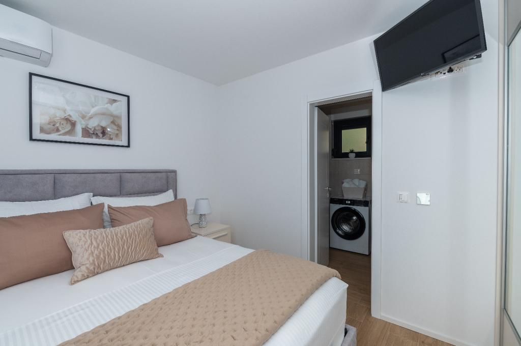 Til leje er en moderne indrettet og fuldt udstyret lejlighed på 100 m², beliggende i Tučepi, ideel til en familieferie. Lejligheden består af to soveværelser, to badeværelser, en rummelig stue med køkken og spiseplads samt en stor terrasse med panoramaudsigt over havet og øerne. Lejligheden har aircondition, gratis Wi-Fi, tv, vaskemaskine og opvaskemaskine. Der er parkeringsplads foran ejendommen. Afstanden til stranden er kun 5 minutters gang. Hvis du leder efter komfortabel indkvartering med krystalklart hav og en smuk promenade, vil vores lejlighed give dig den perfekte ferie.