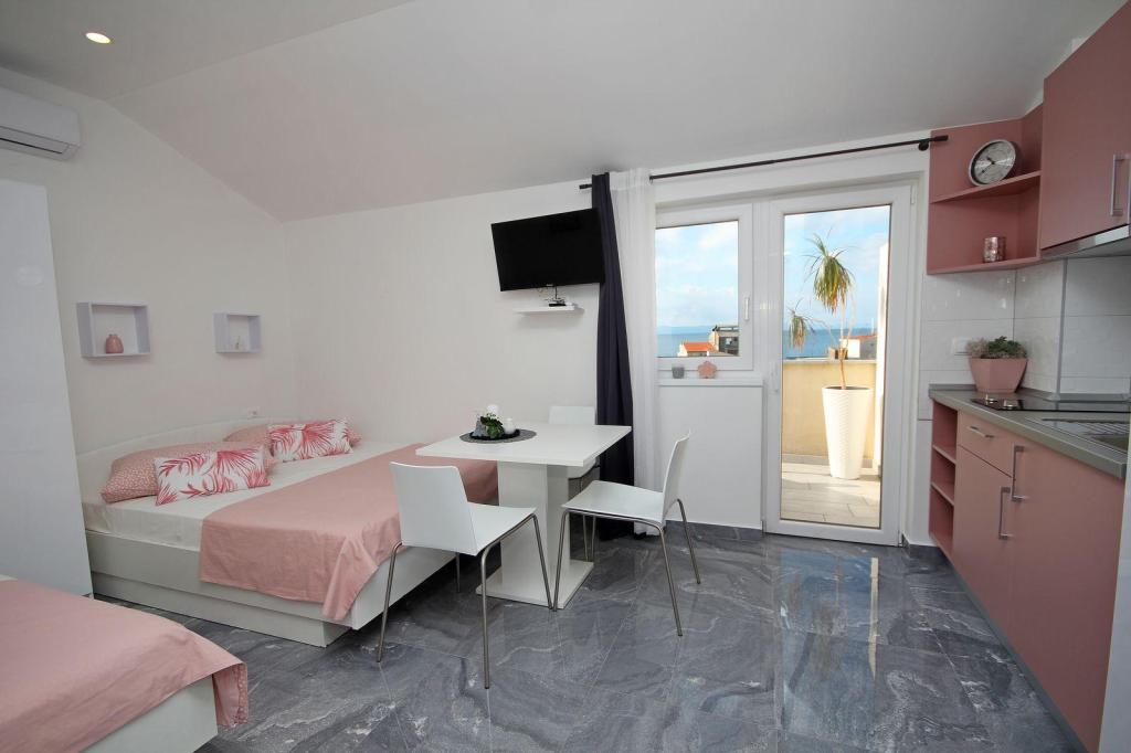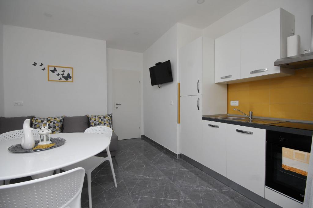 Vores lejligheder kan rumme 2 2, 3 2 (b), er placeret på 1. og 2. sal i centrum af Tucepi, velegnet til familier med børn, 2 par, sport grupper, ældre og andre Lejlighederne er nyligt udstyret med:. Separate soveværelser, stue, air condition, kan sofa omdannes til en seng 200/140, køkken, badeværelse, balkon med udsigt over hav og land, satellit-LCD-tv, W-LAN internet og lukket parkering til hver lejlighed i bil. Alt hvad du behøver er inden for 150m.