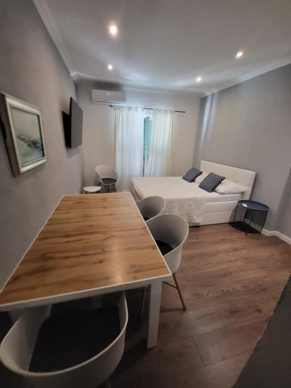 Fuldt udstyrede (renoverede) lejligheder 30 meter fra havet, sandstrand, objektet er beliggende i en rolig del af byen under motorvejen, en restaurant og en kaffebar er 20 meter fra huset, og vi sørger også for transport fra og til lufthavnen hvis du kommer med fly, 300 meter fra lejligheden er der en smuk bugt Dračevac hvor du har naturlig skygge fra fyrretræer, en del af stranden er beregnet til nudister, stranden for hunde er 150 meter fra huset, i cirka 20 minutters kørsel kan du nyde den smukke udsigt fra den nye skywalk-attraktion