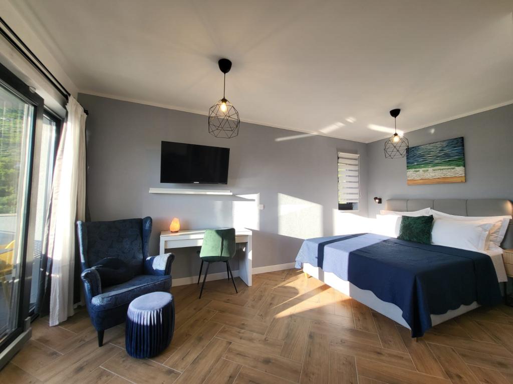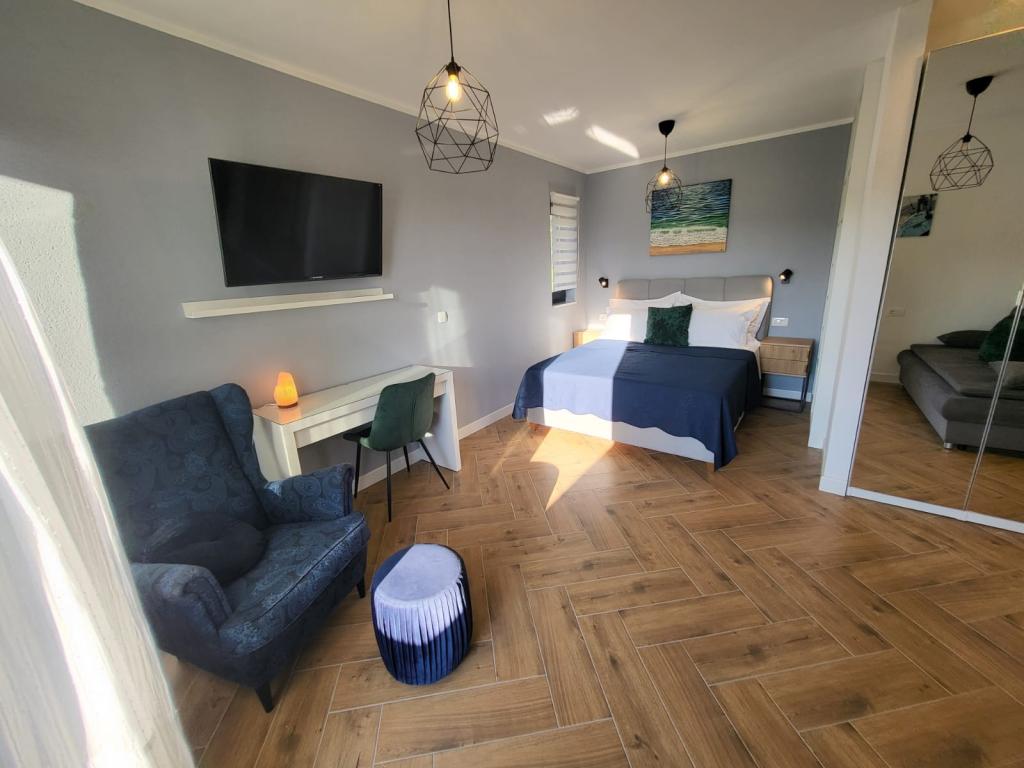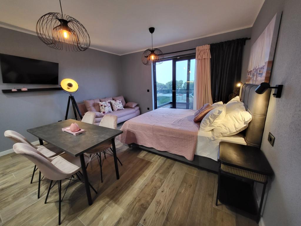 Moderne lejligheder beliggende på første række til havet. Anlægget ligger få minutters gang fra stranden. Der er i øjeblikket ingen andre huse omkring objektet på det sted. Parkering er gratis, og garagen er afhængig af tilgængelighed mod et tillægsgebyr. En varm velkomst og et behageligt ophold til alle gæster.